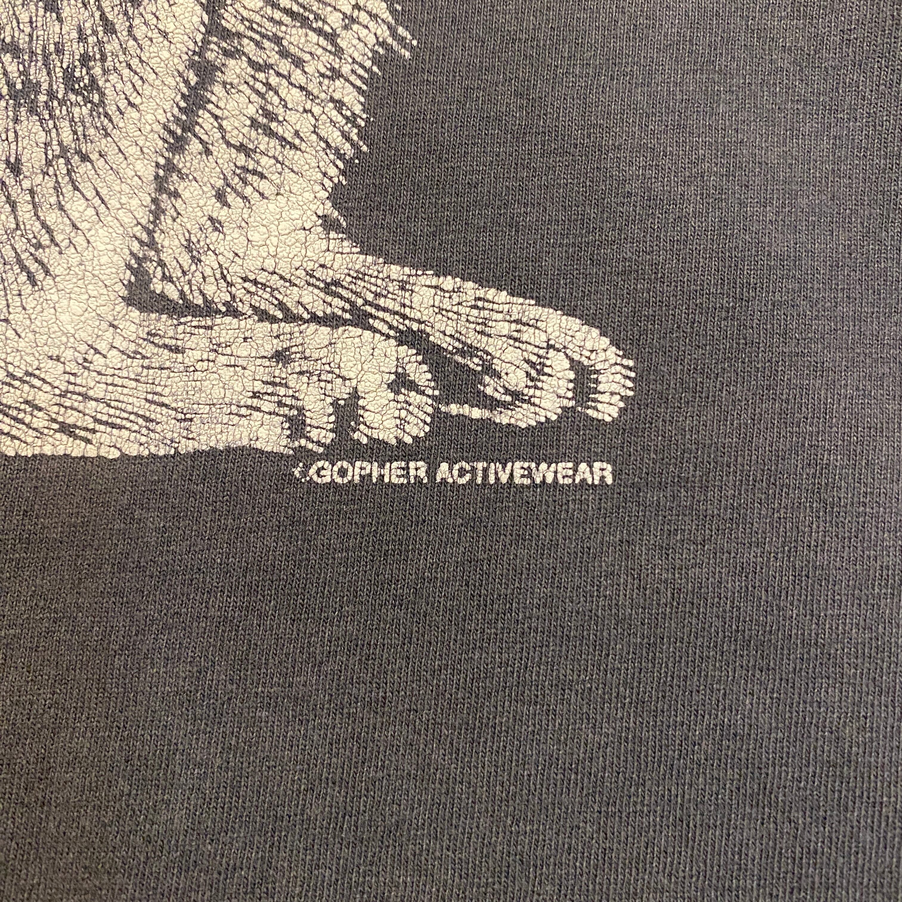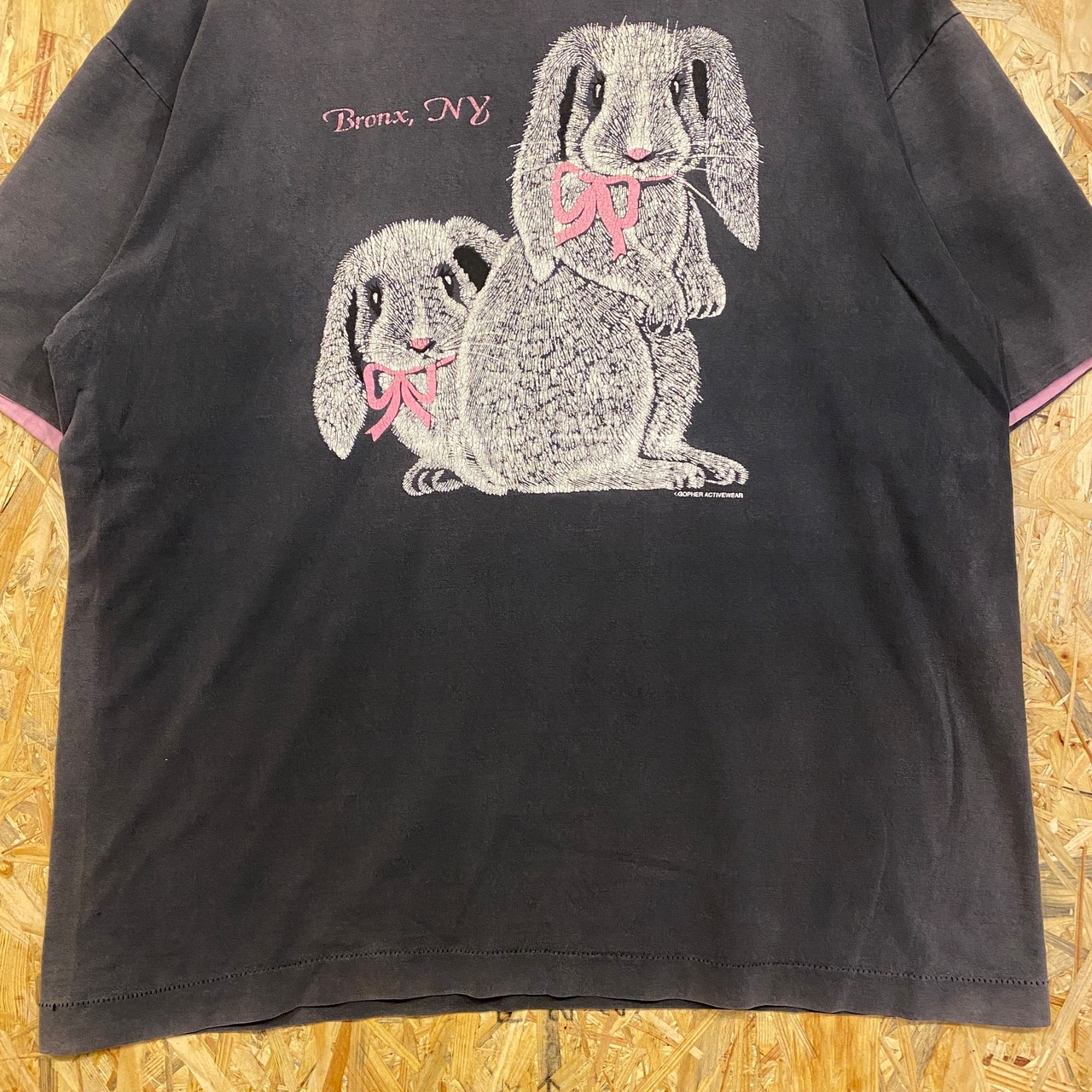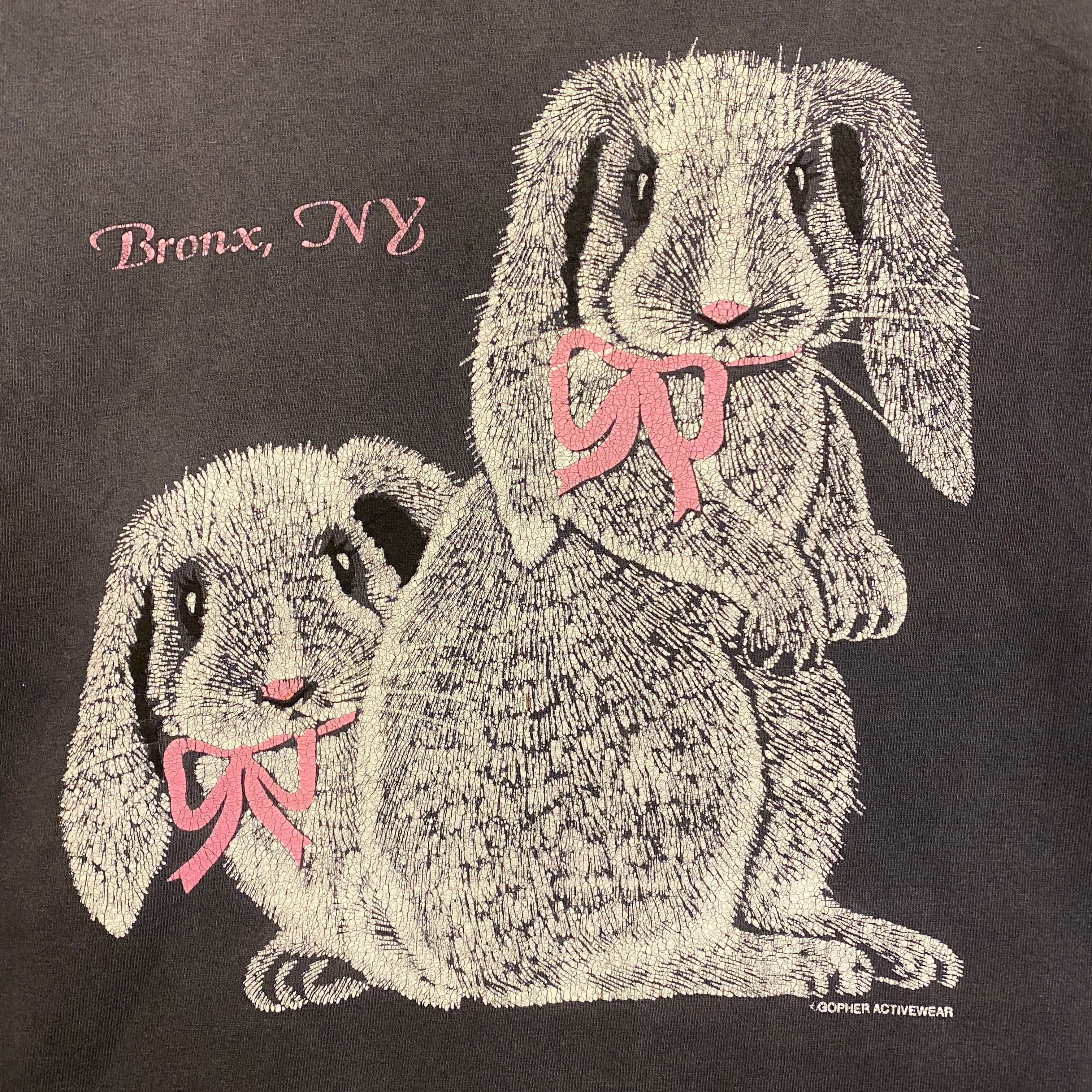 1845 GOPHER ACTIVEWEAR ニューヨーク ウサギ プリント Tシャツ グレー灰色 ピンク シングルステッチ 古着 メンズ vintage L