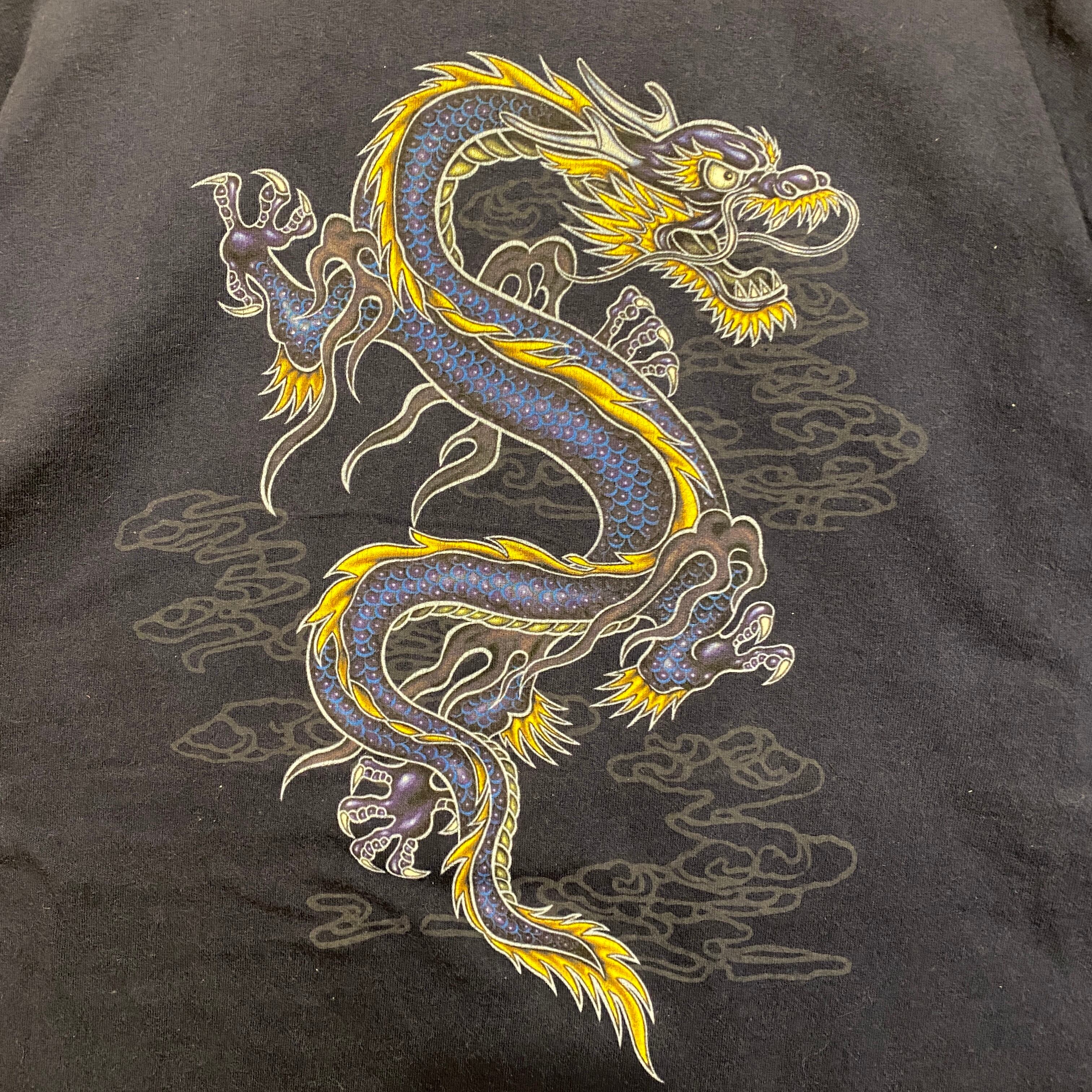 1850 90s〜 90年代〜 TULTEX タルテックス バックプリント Tシャツ 龍 ドラゴン 日本 和 紺色 ダークブルー 古着 メンズ vintage XL