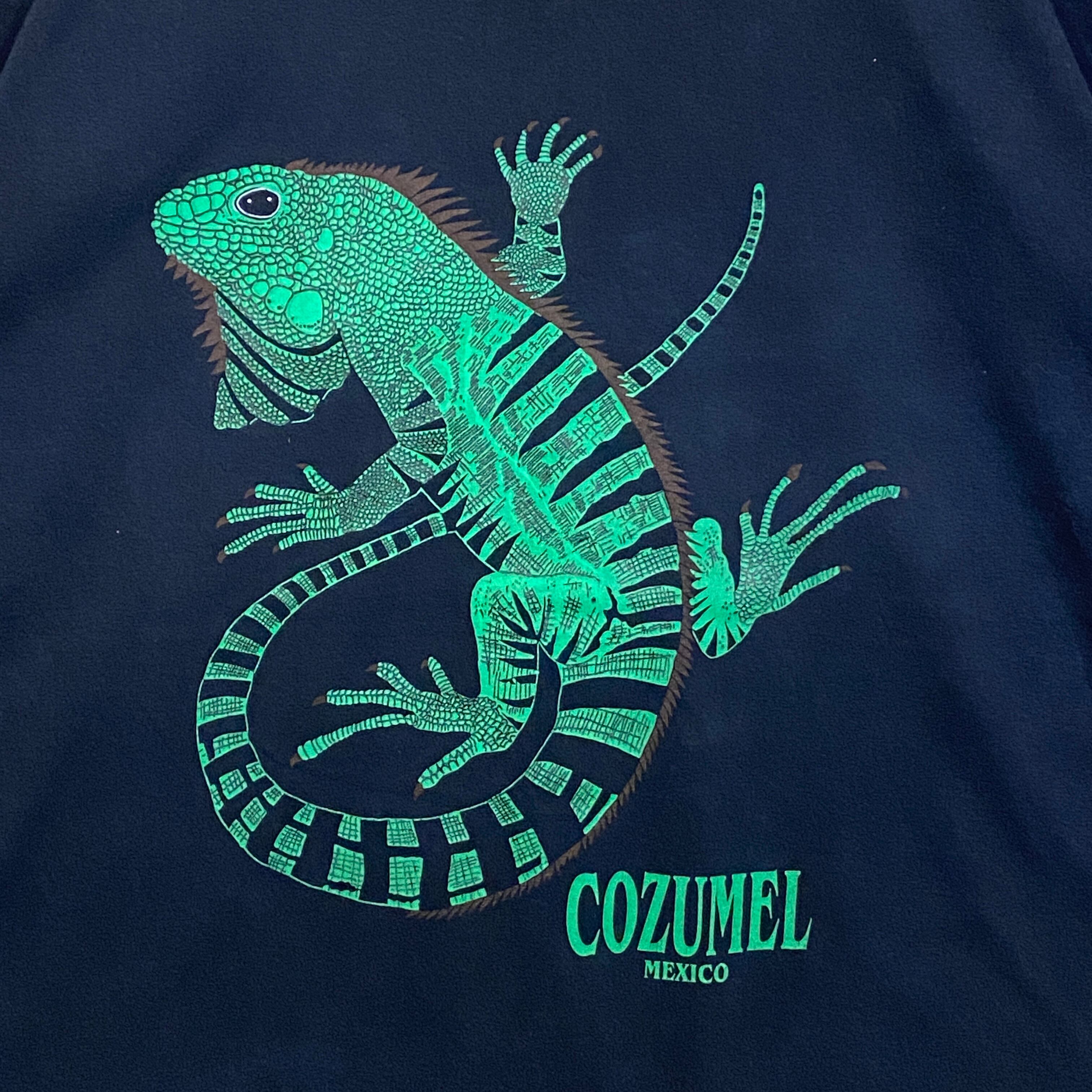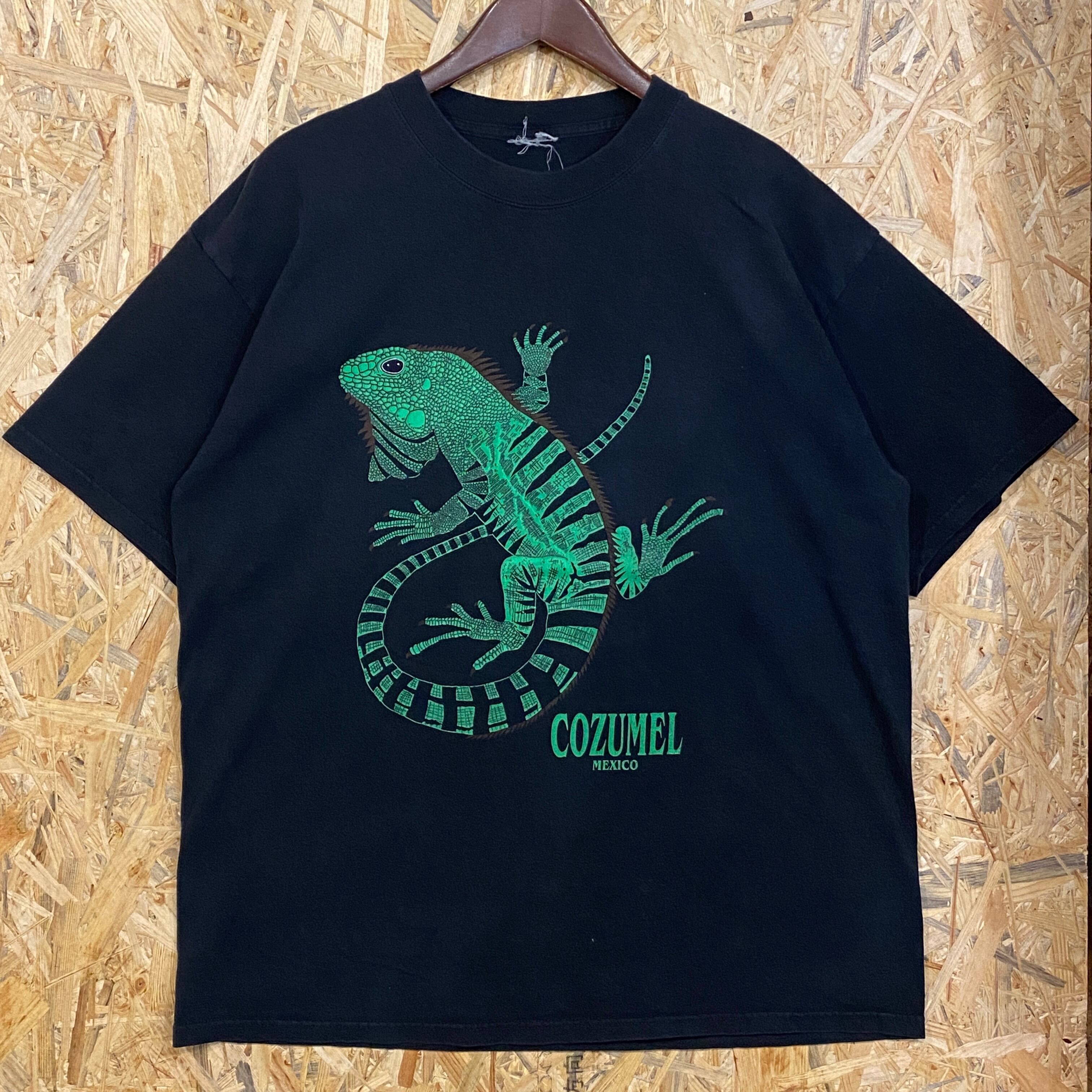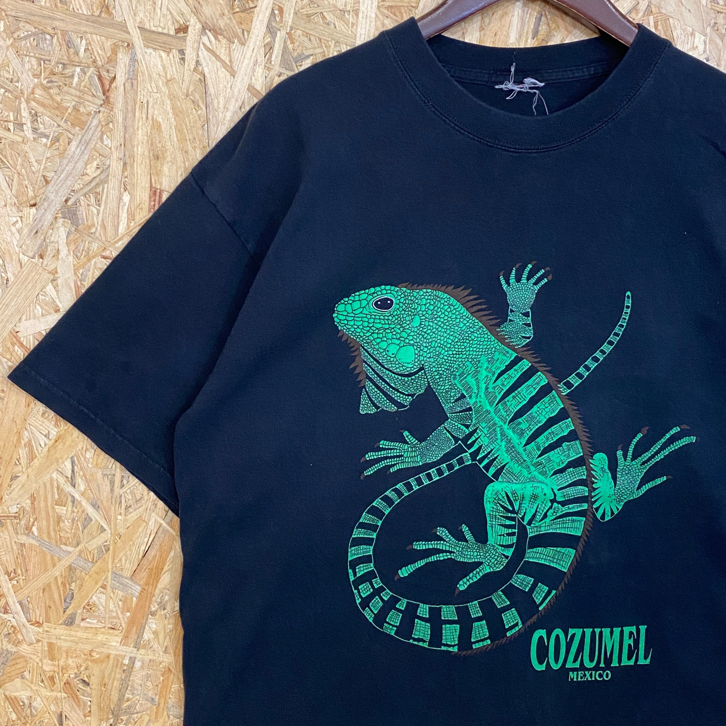 1853 90s〜 90年代〜 COZUMEL 動物 アニマル animal イグアナ プリント Tシャツ ブラック 黒 古着 メンズ vintage L