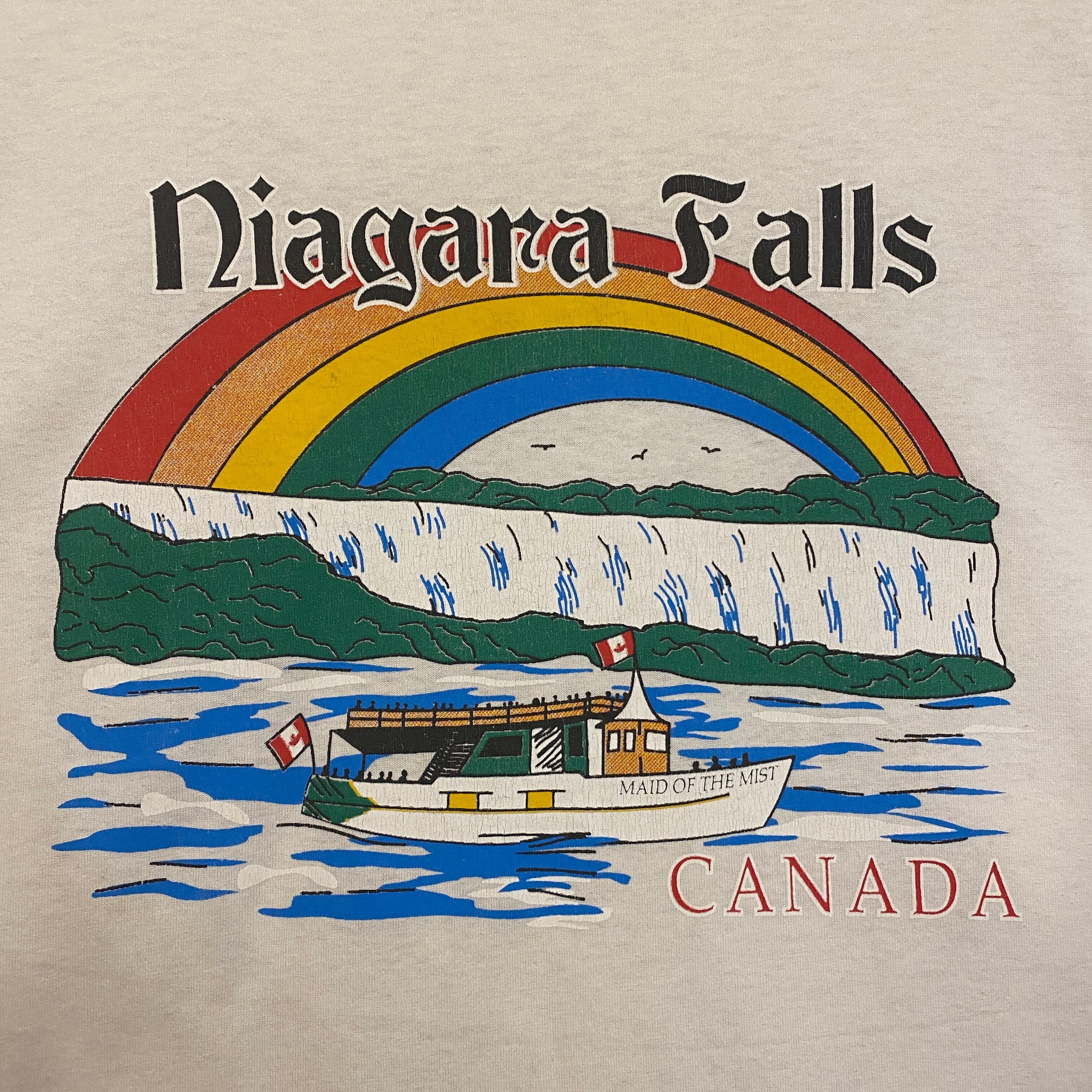 1854 90s〜 90年代〜 Niagara Falls ナイアガラの滝 CANADA カナダ プリント Tシャツ 川 船 虹 景色 ホワイト 白 古着 メンズ vintage L