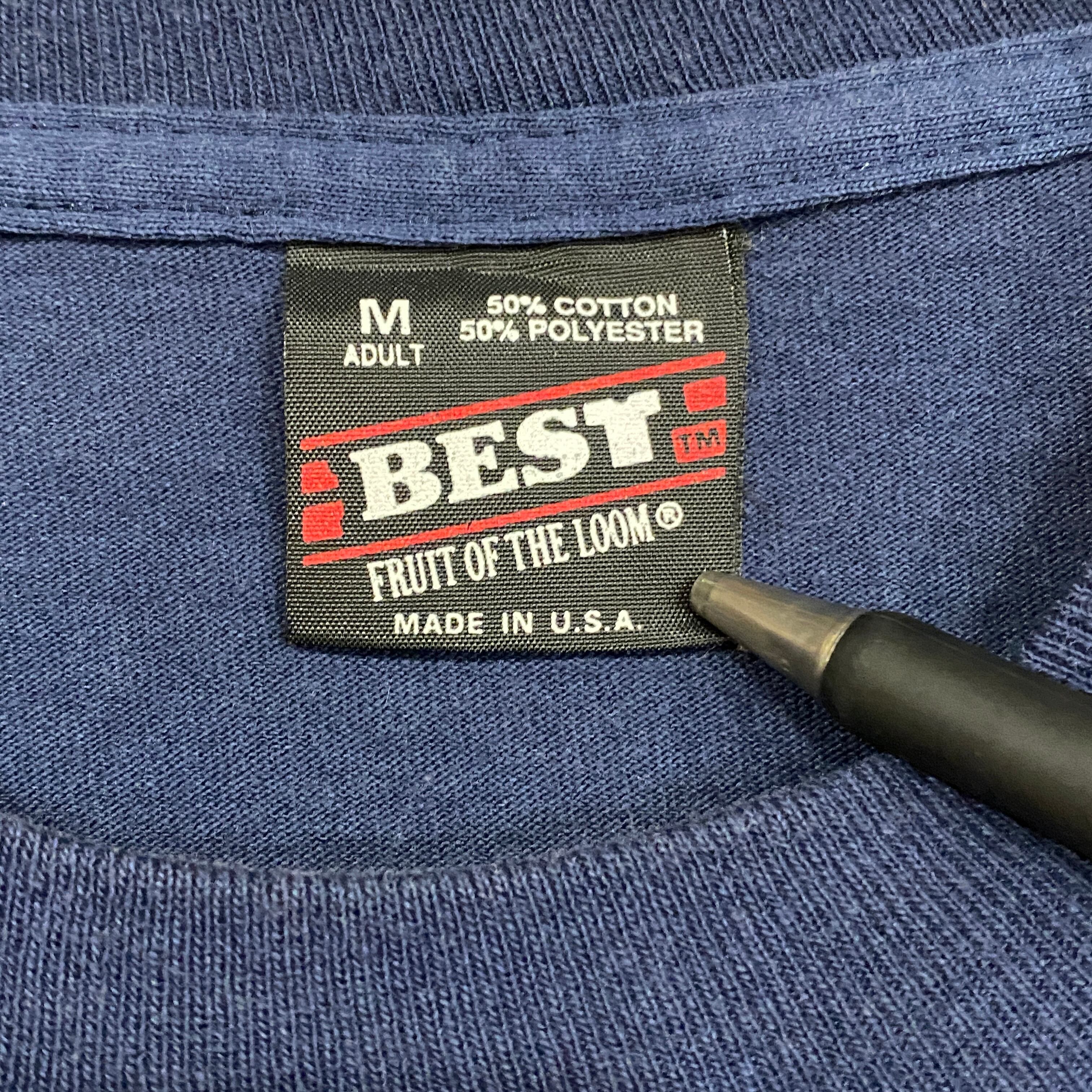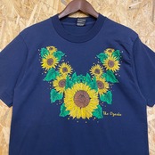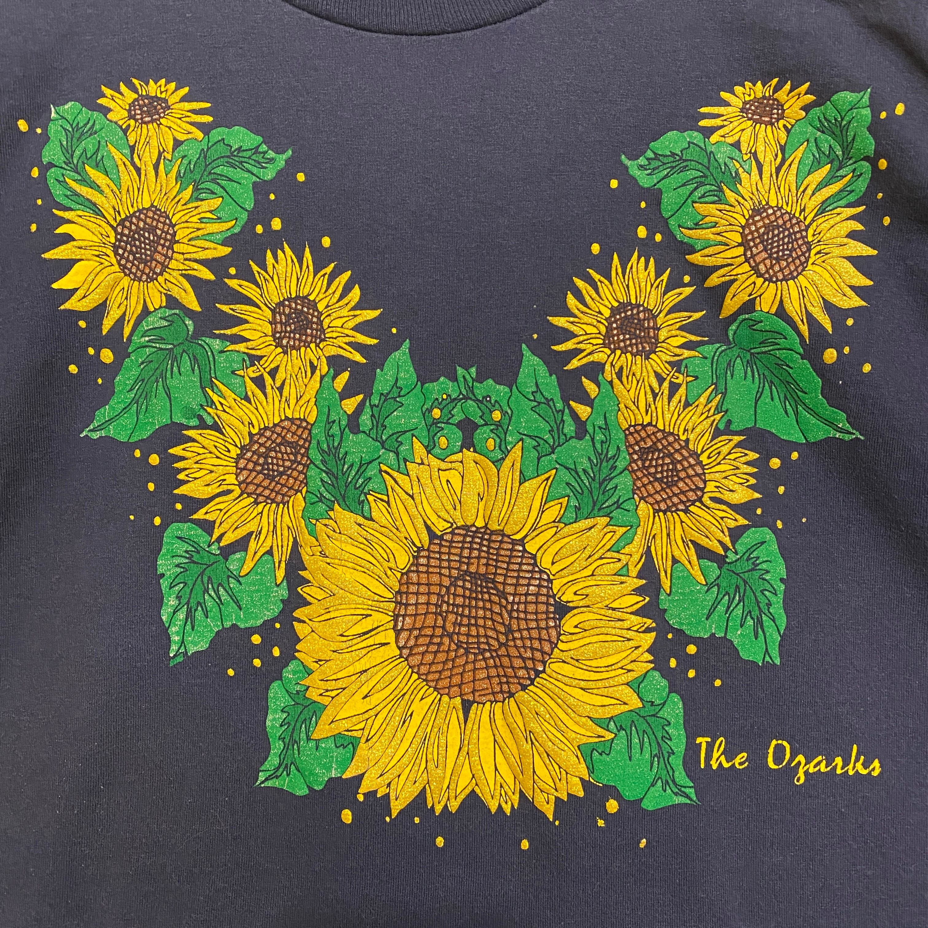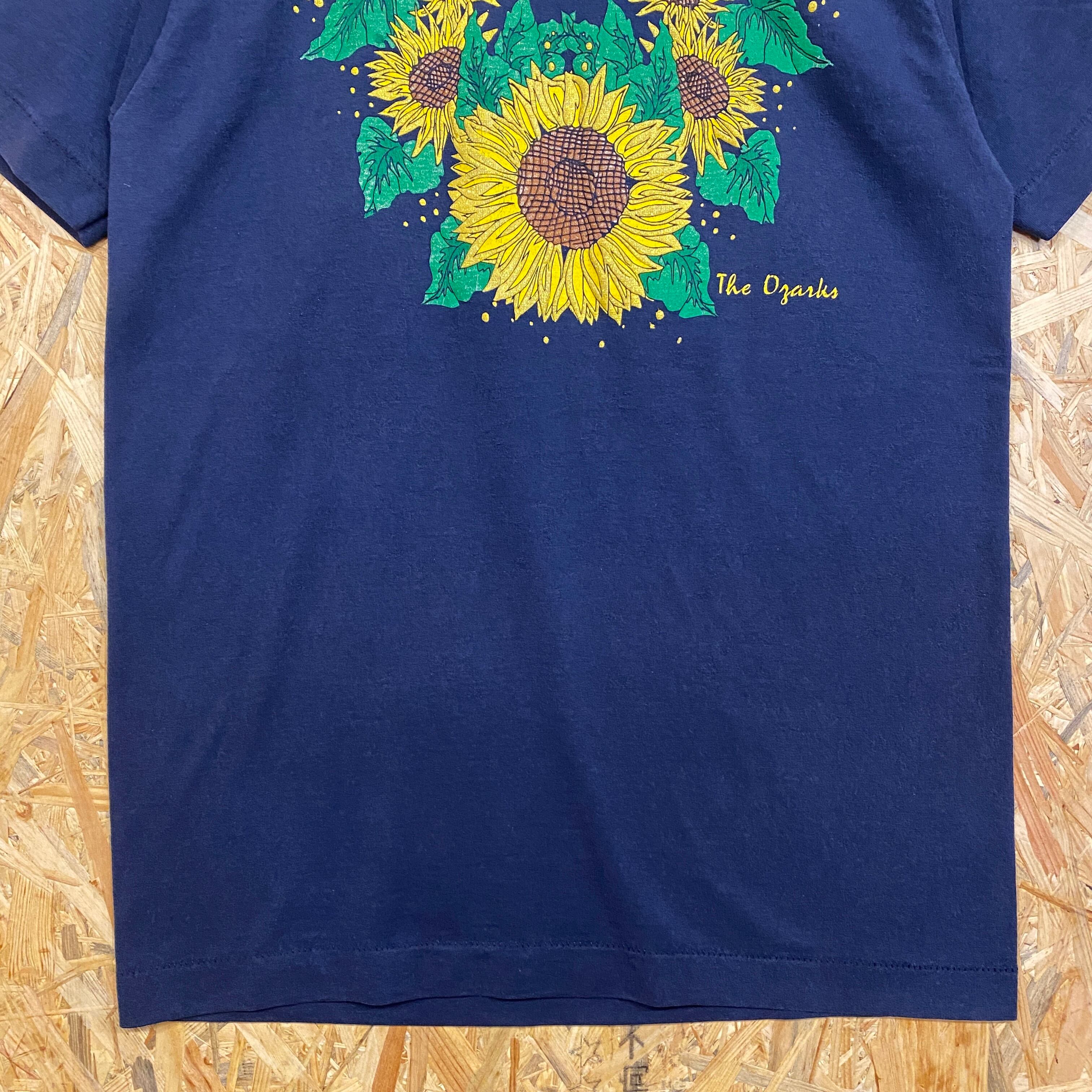 1858 90s〜 90年代〜 USA製 FRUIT OF THE ROOM フルーツオブザルーム The Ozarks ひまわり ヒマワリ アート プリント Tシャツ 紺色 シングルステッチ 古着 メンズ vintage M