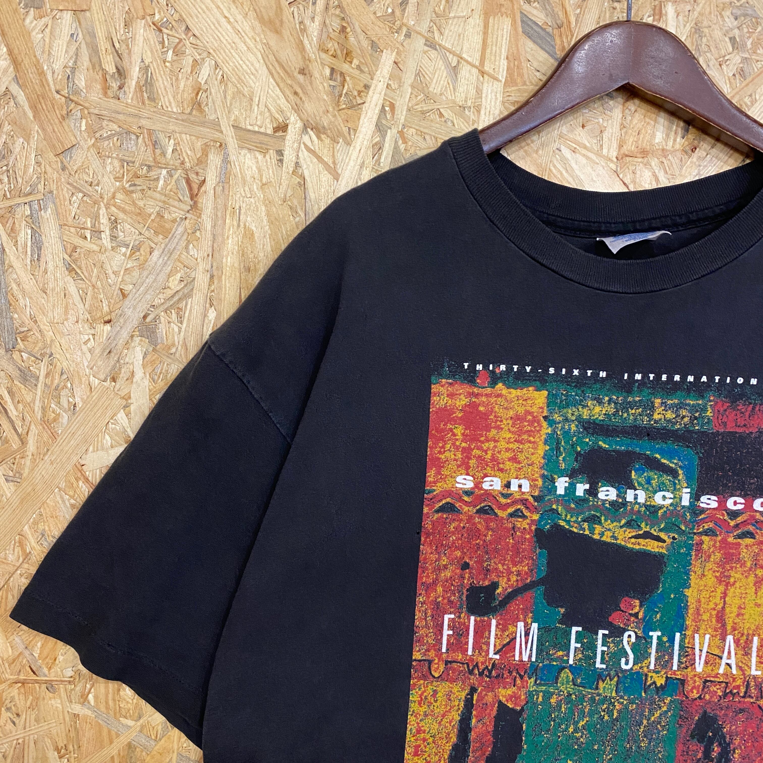 1865 90s 90年代 USA製 サンフランシスコ 映画祭 Tシャツ アート 映画 シングルステッチ 黒 ブラック 古着 メンズ vintage XL