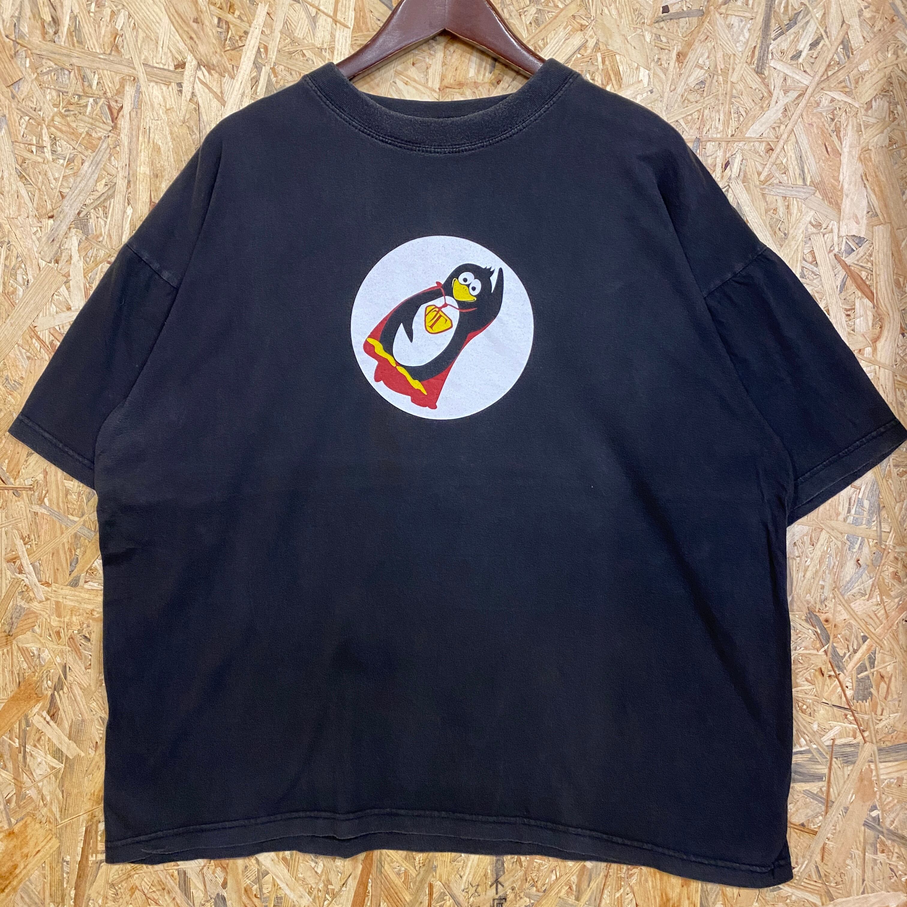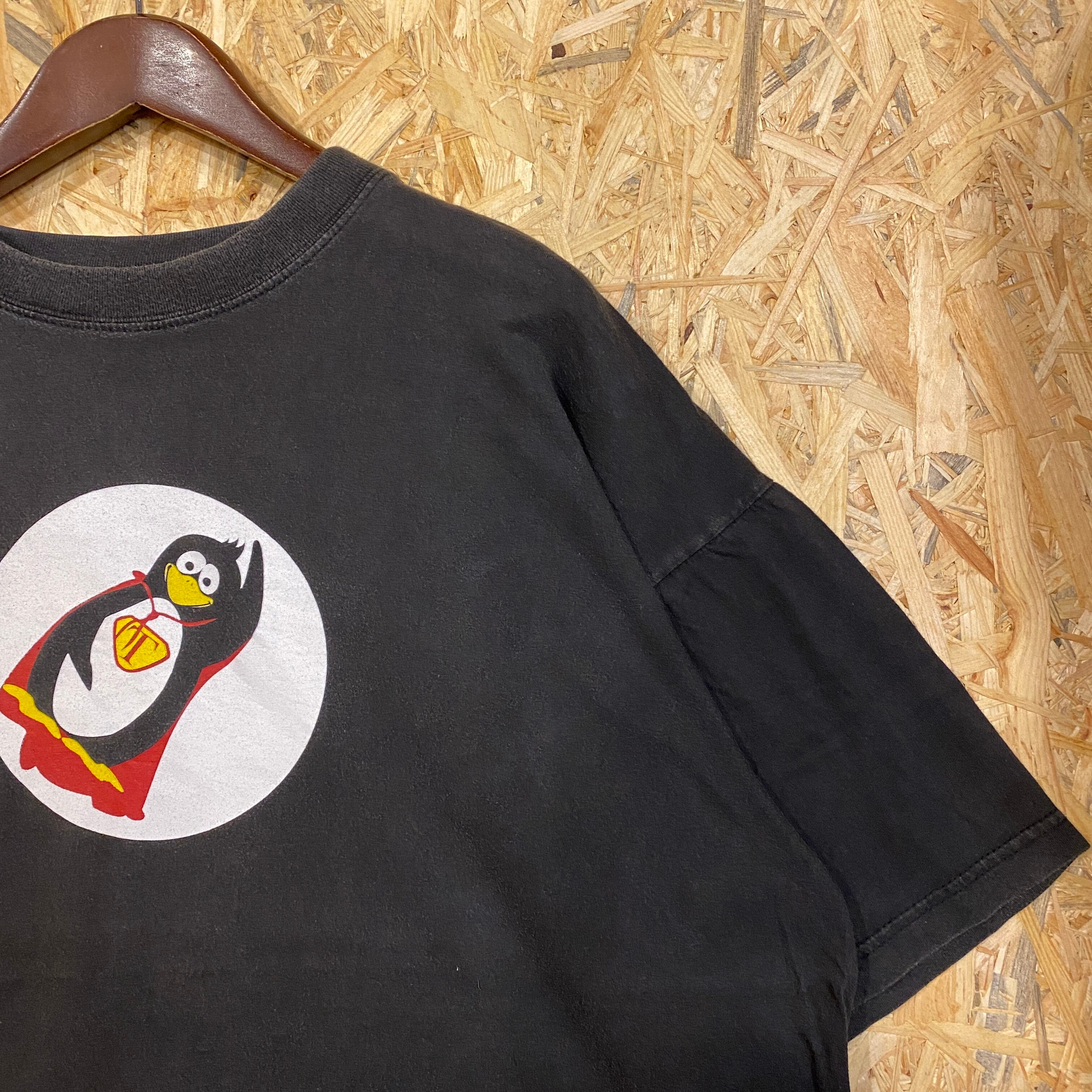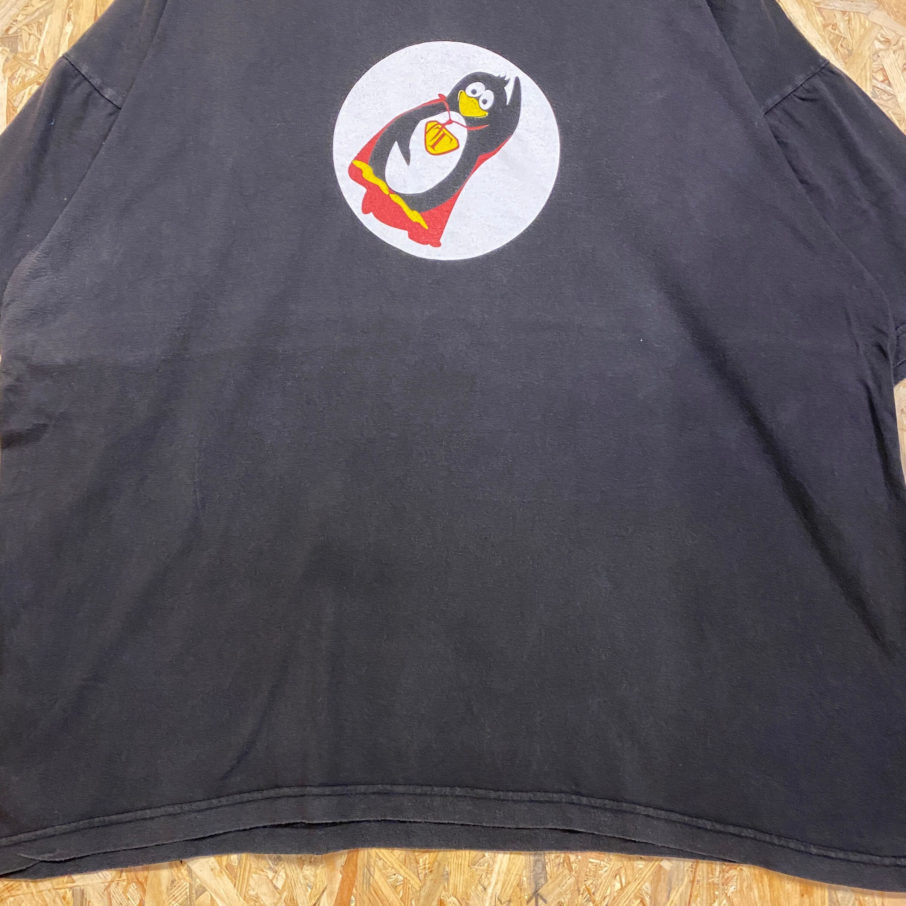 1866 Linux 企業物 ペンギン アニマル 動物 黒 ブラック イラスト 両面 プリント Tシャツ コンピューター 古着 メンズ vintage XL