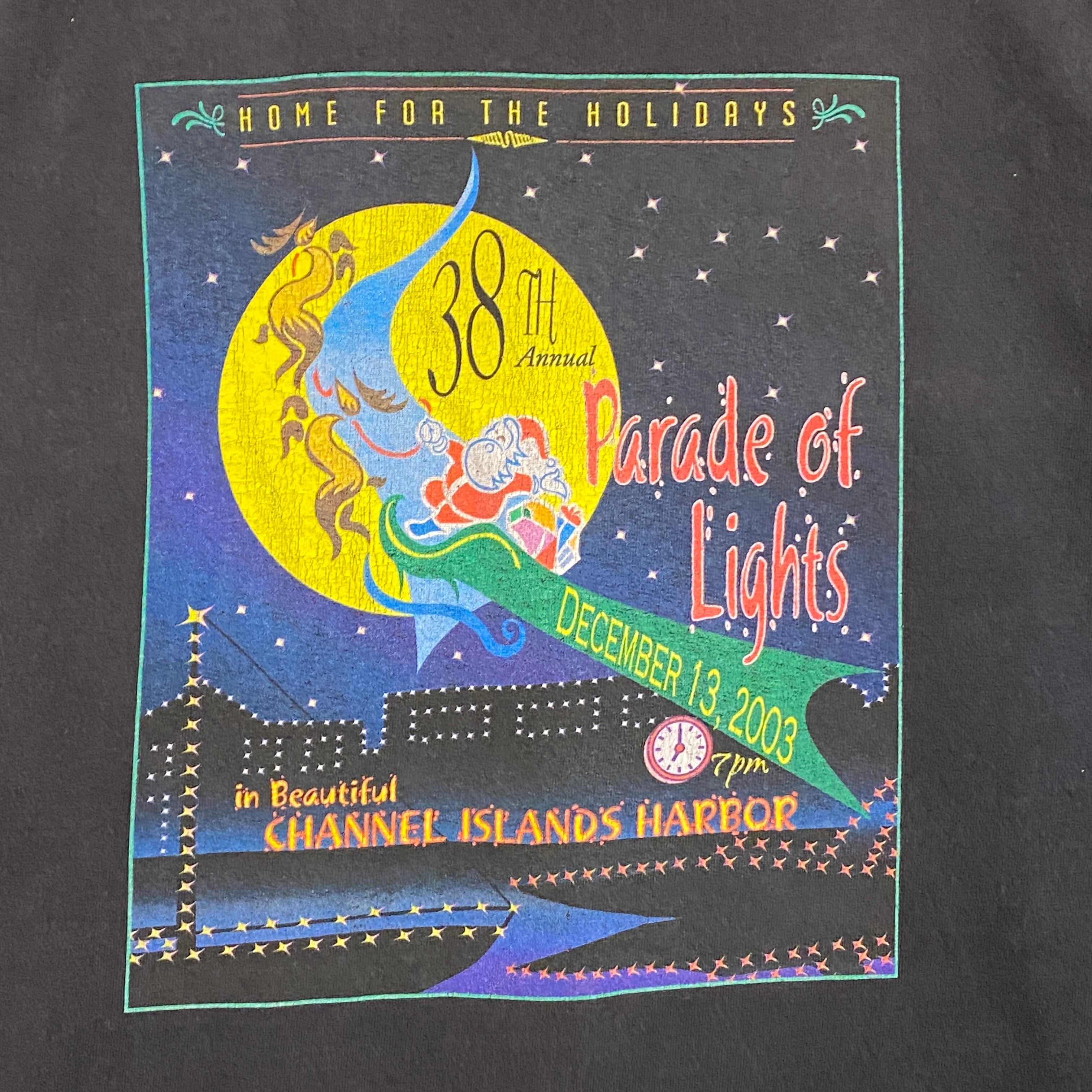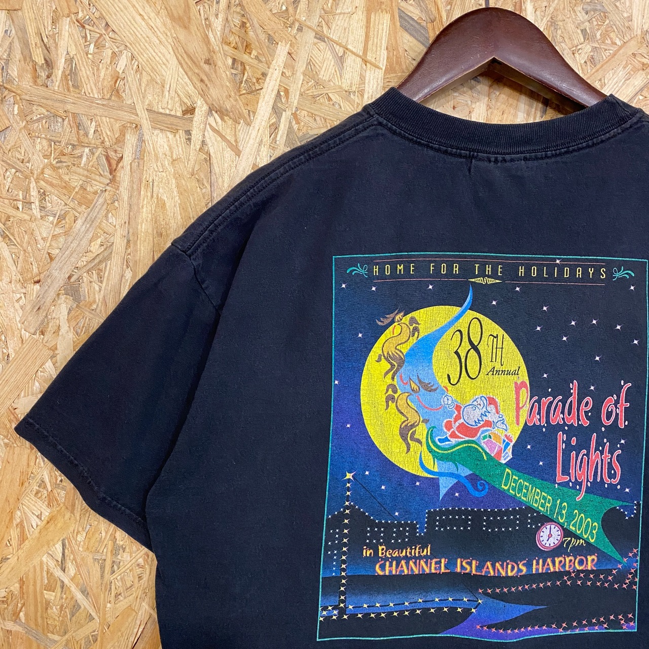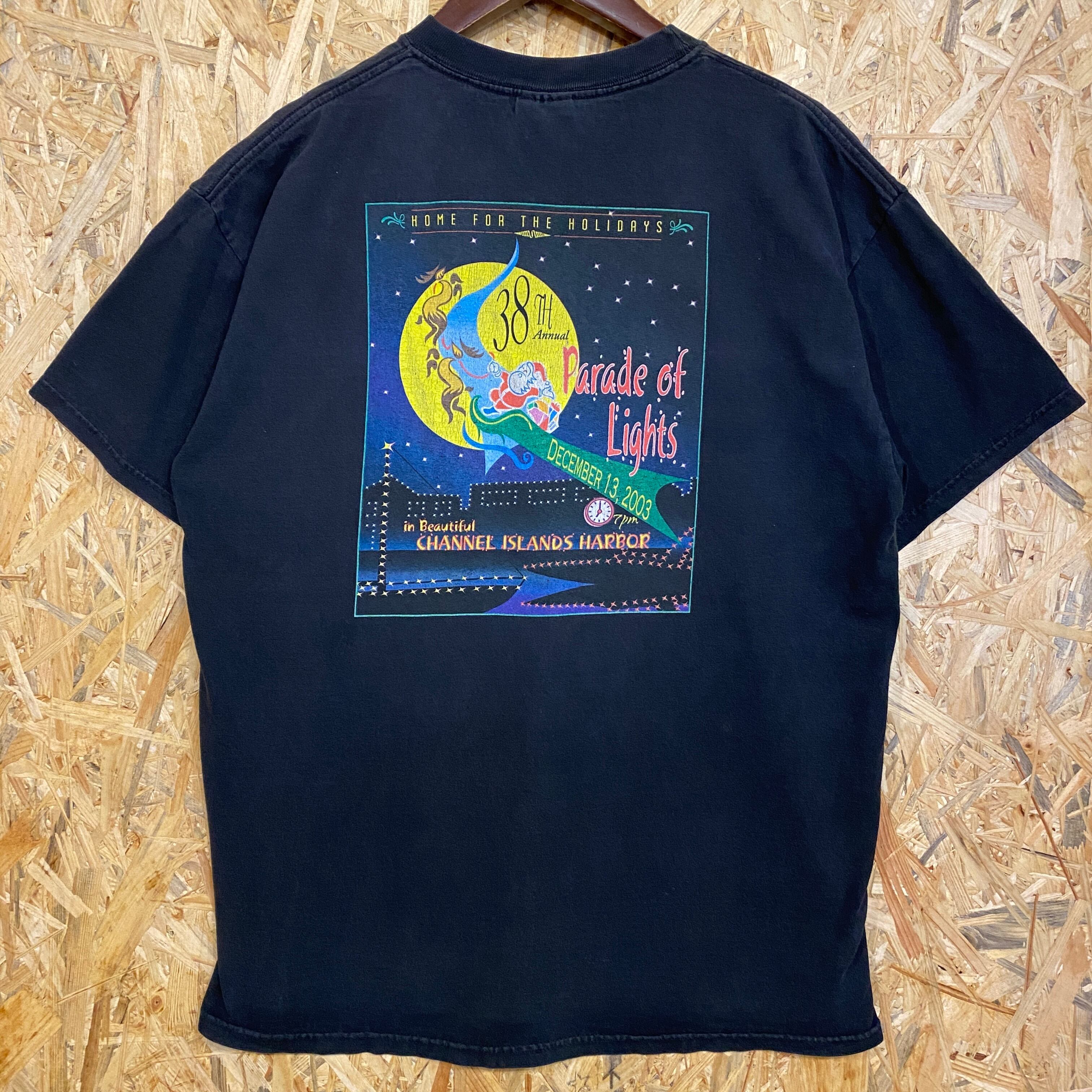 1869 00s〜 00年代〜 Hanes ヘインズ 両面プリント Tシャツ グラフィック アート クリスマス サンタクロース 月 記念 ブラック 黒 古着 メンズ vintage L