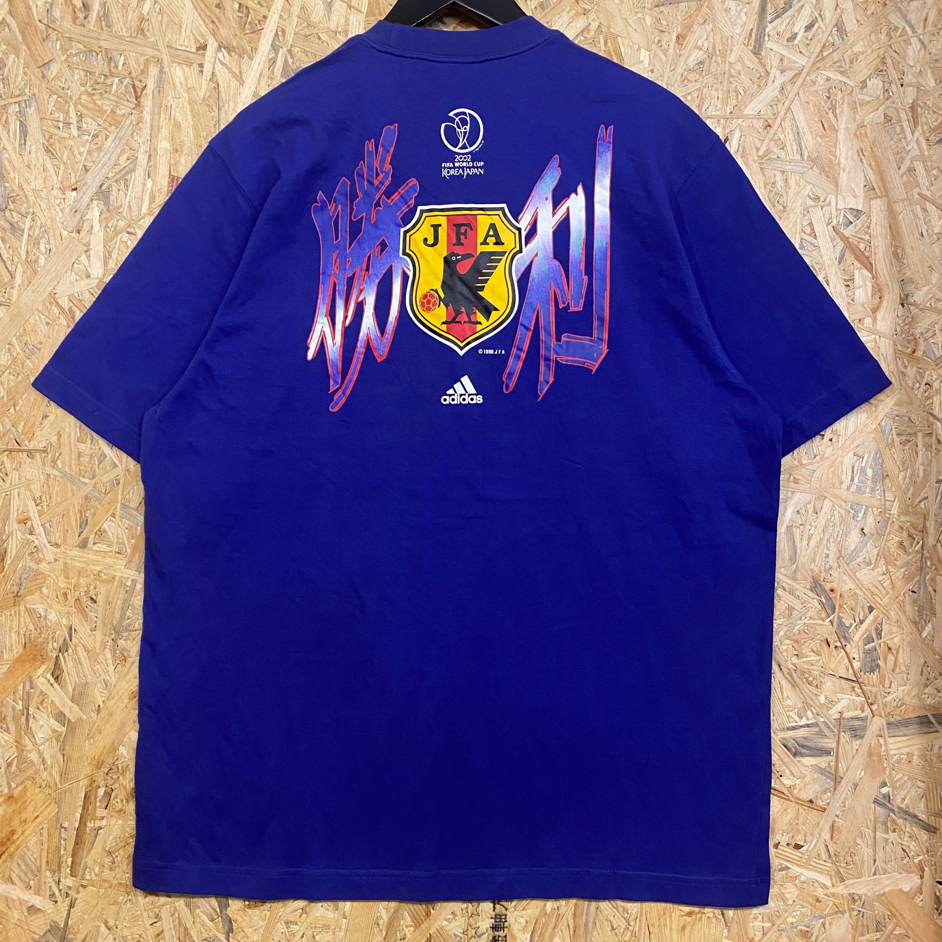 1874 00s〜 00年代〜 adidas アディダス KOREA JAPAN OFFICIAL LICENSED PRODUCT サッカー ワールドカップ スポーツ プリント Tシャツ ブルー 青 古着 メンズ vintage L