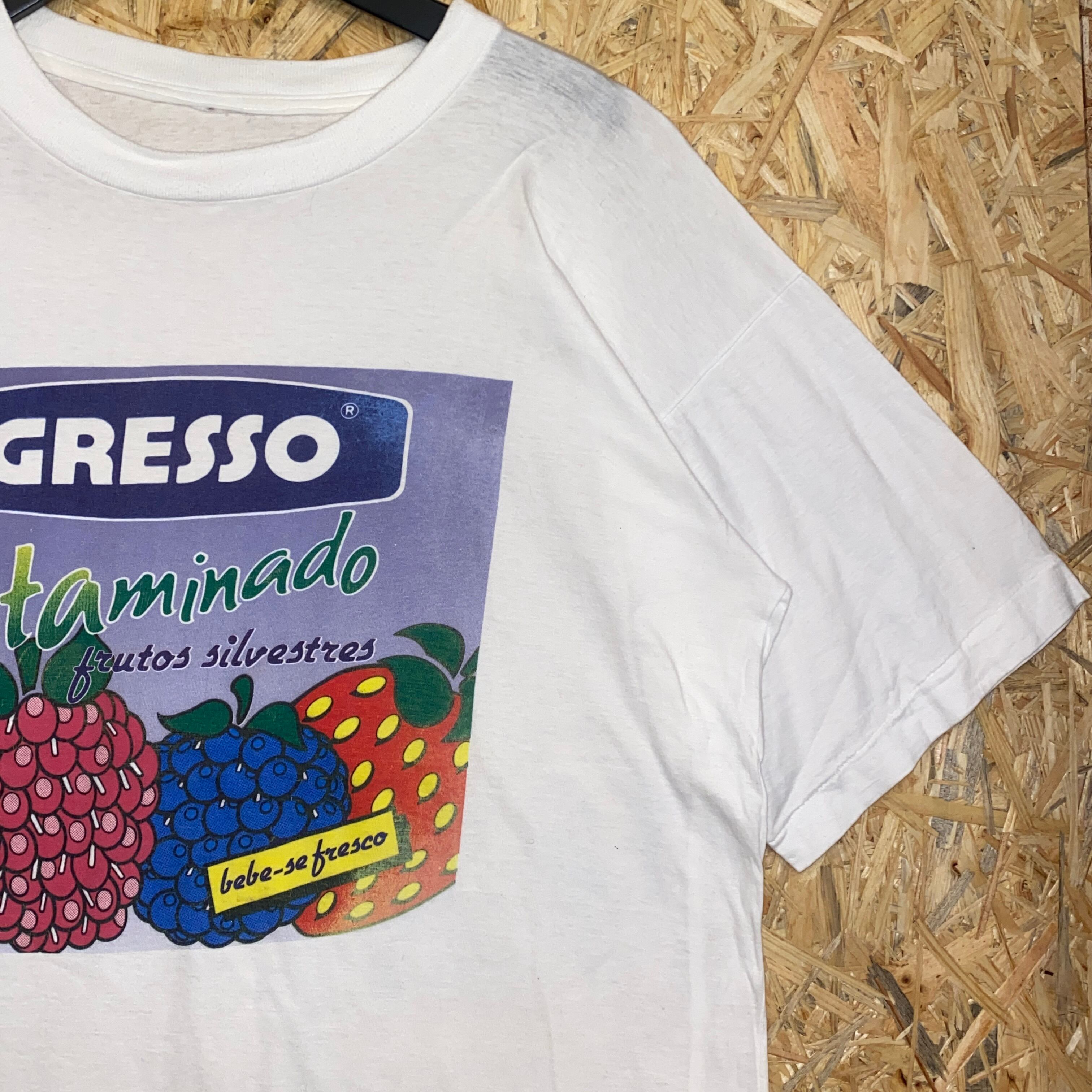 1884 GRESSO フルーツ イラスト Tシャツ イチゴ ベリー ヨーグルト グラフィック ホワイト 白 シングルステッチ 古着 メンズ vintage