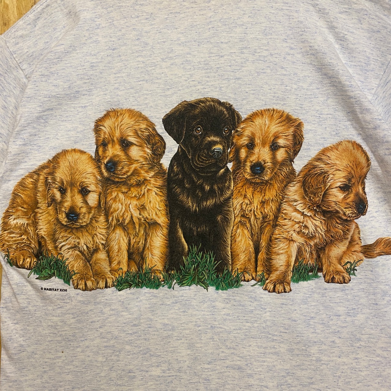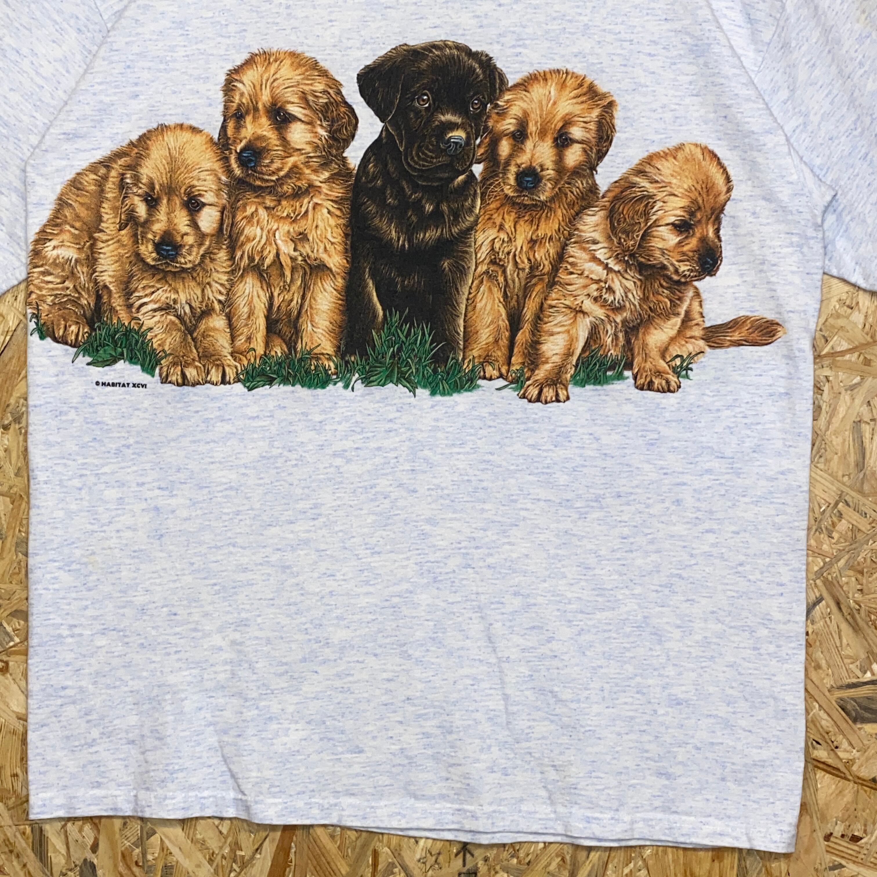 1885 90s 90年代 USA製 アニマル Tシャツ ゴールデンレトリバー 子犬 ドッグ プリント 両面 イラスト 古着 メンズ vintage L