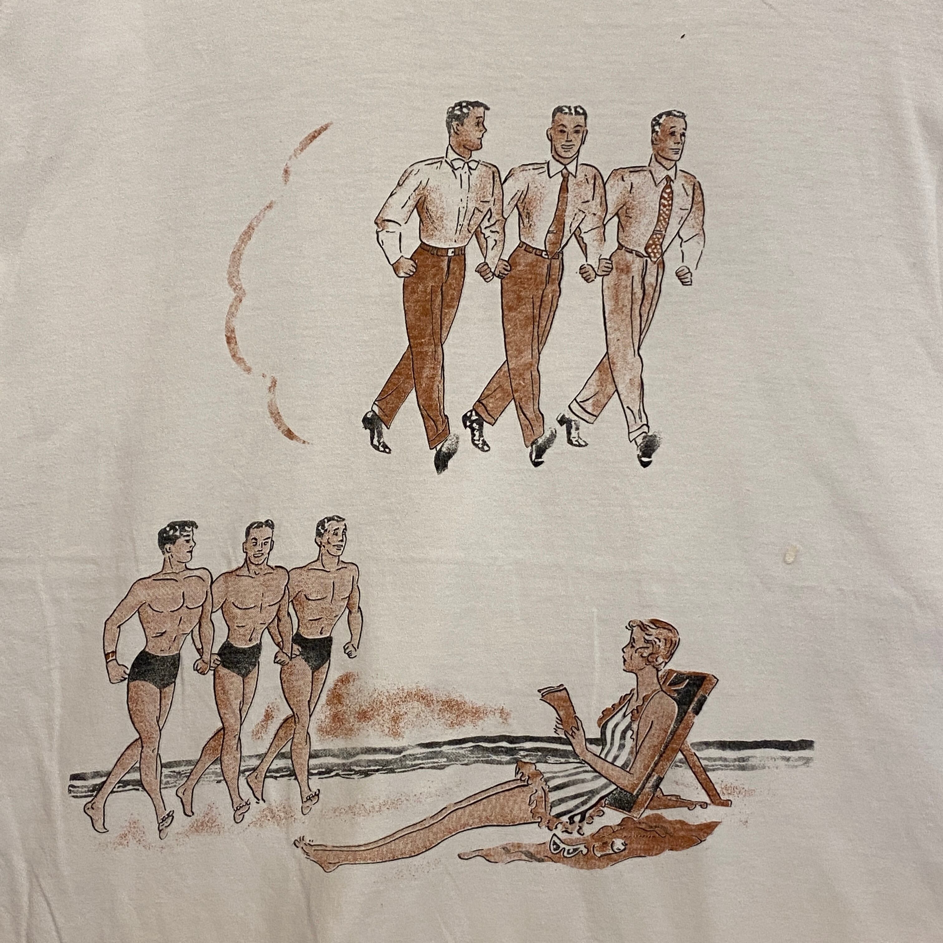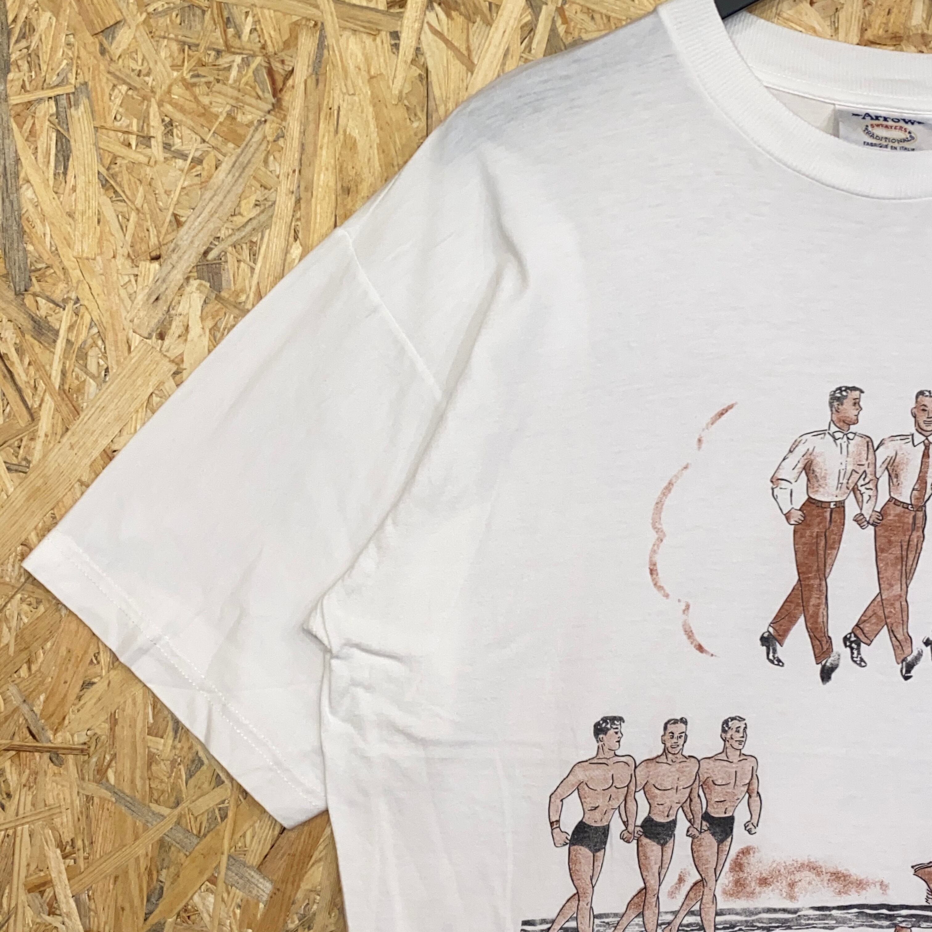 1887 80s〜 80年代〜 Arrow レトロ イラスト Tシャツ イタリア製 ビーチ プリント ホワイト 白 古着 メンズ vintage L
