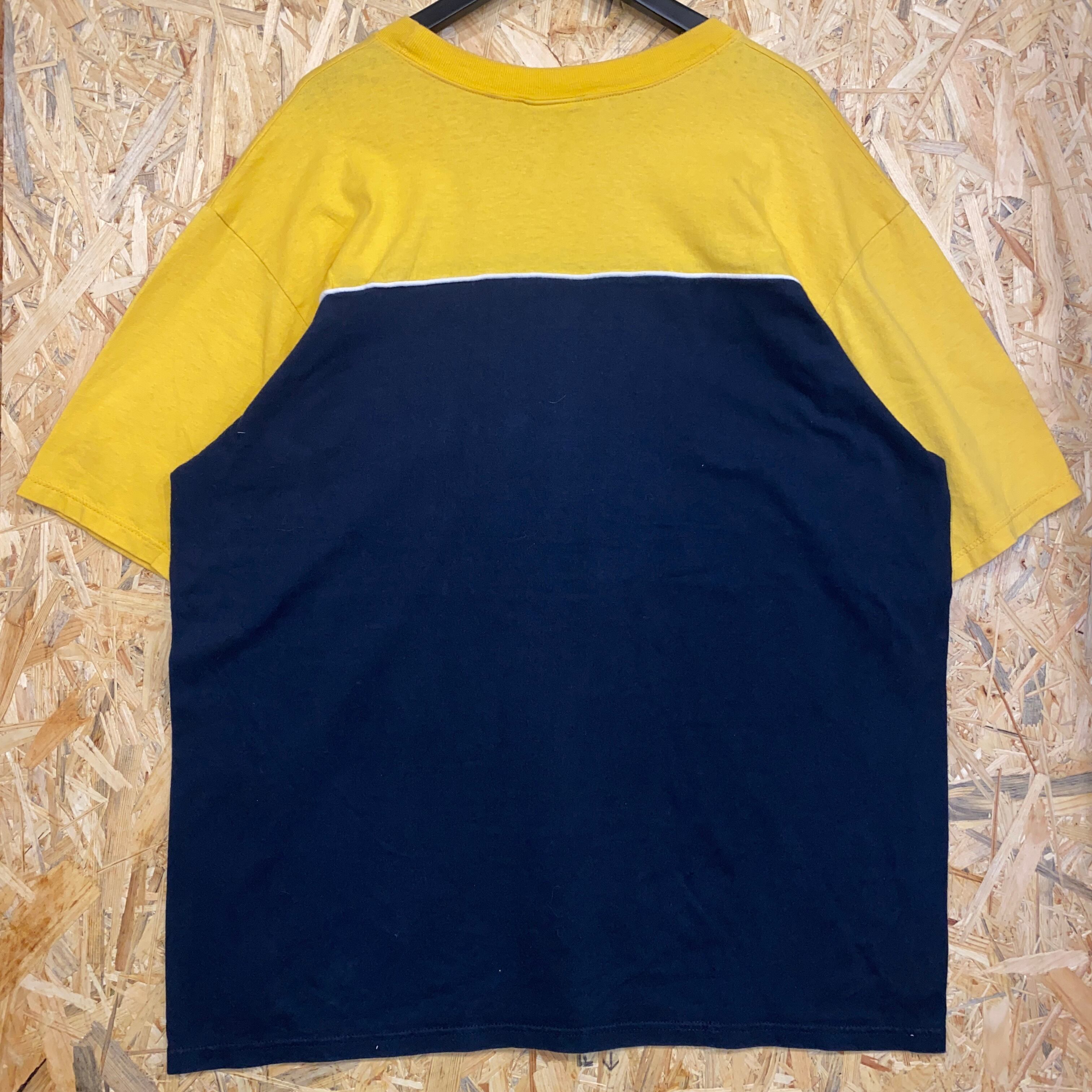 1894 90s〜 90年代〜 USA製 DECIBELL プリント Tシャツ ツートンカラー 龍 ドラゴン 松林流 イエロー 黄色 ブラック 黒 古着 メンズ vintage 2XL