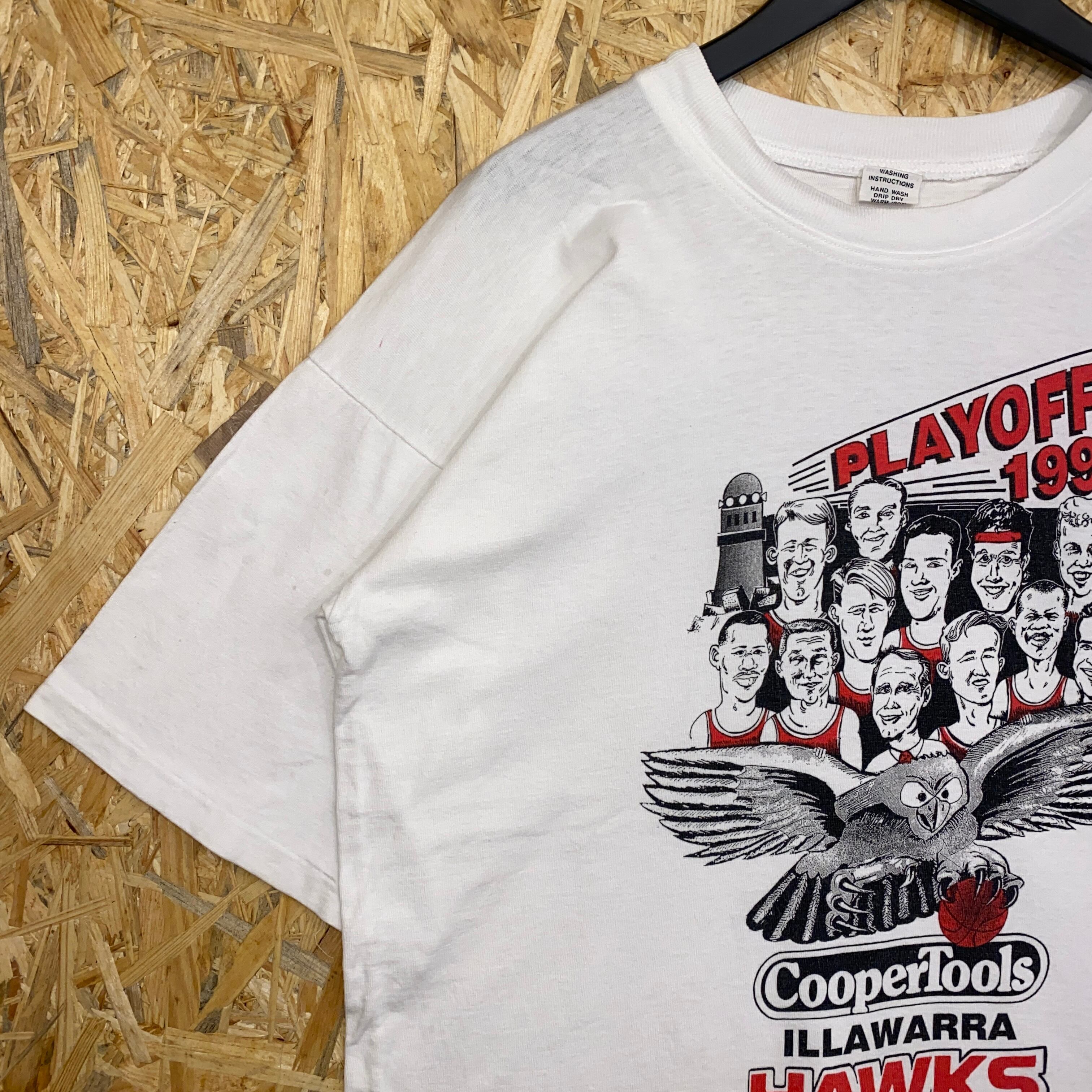 1895 90s〜 90年代〜 ACEIT 人物 イラスト プリント Tシャツ バスケ スポーツ CooperTools ILLAWARRA HAWKS ホワイト 白 古着 メンズ vintage M