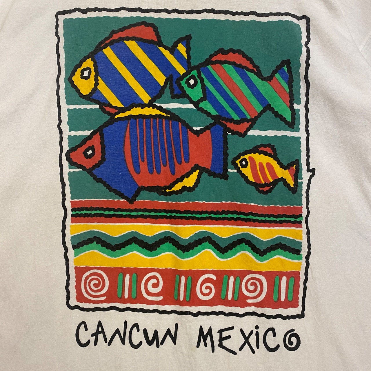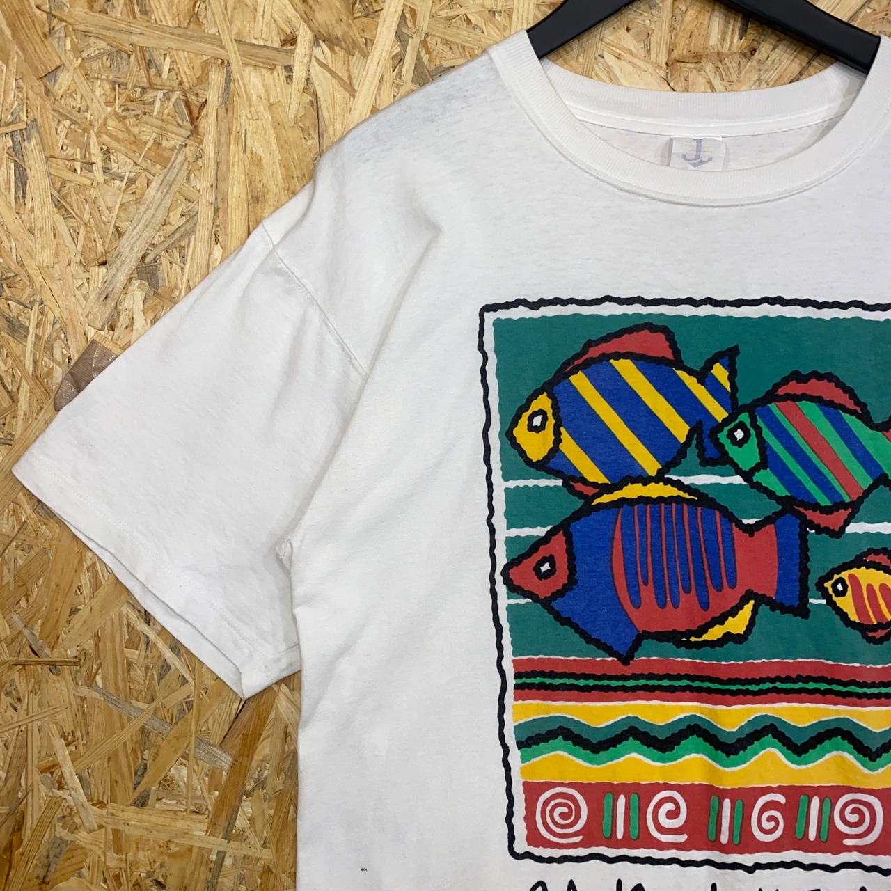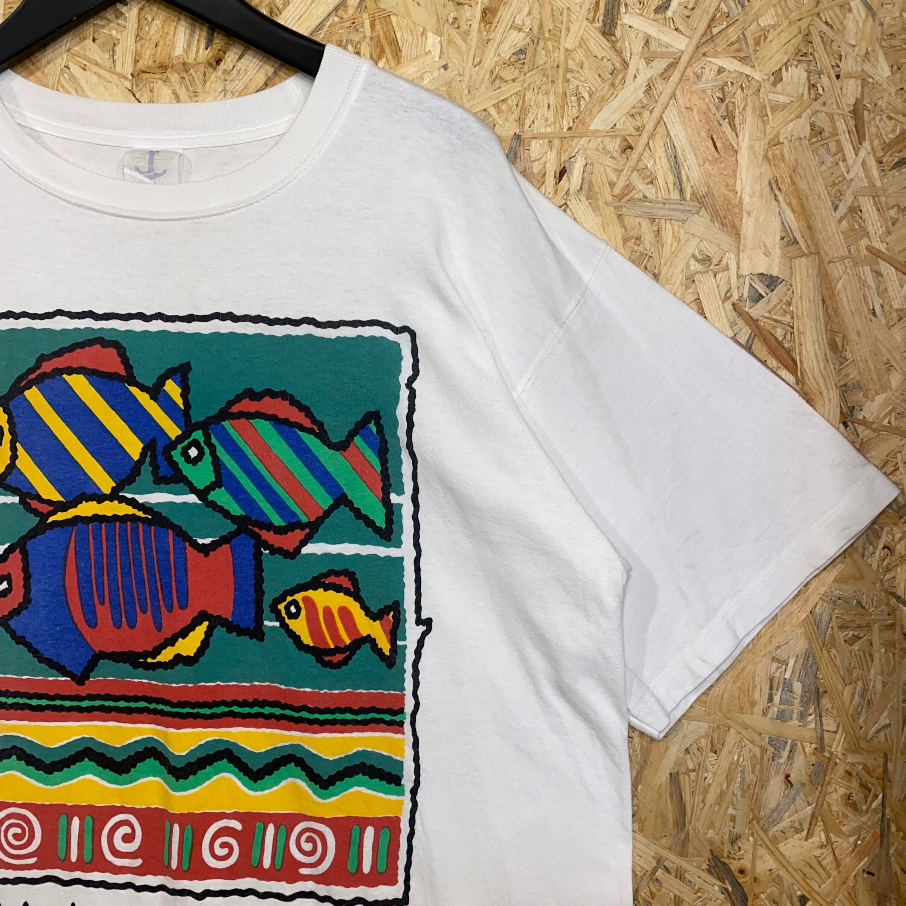 1901 00s〜 00年代〜 cancun カンクン メキシコ アート プリント Tシャツ 魚 海 川 カラフル ホワイト 白 グリーン 緑 古着 メンズ vintage L