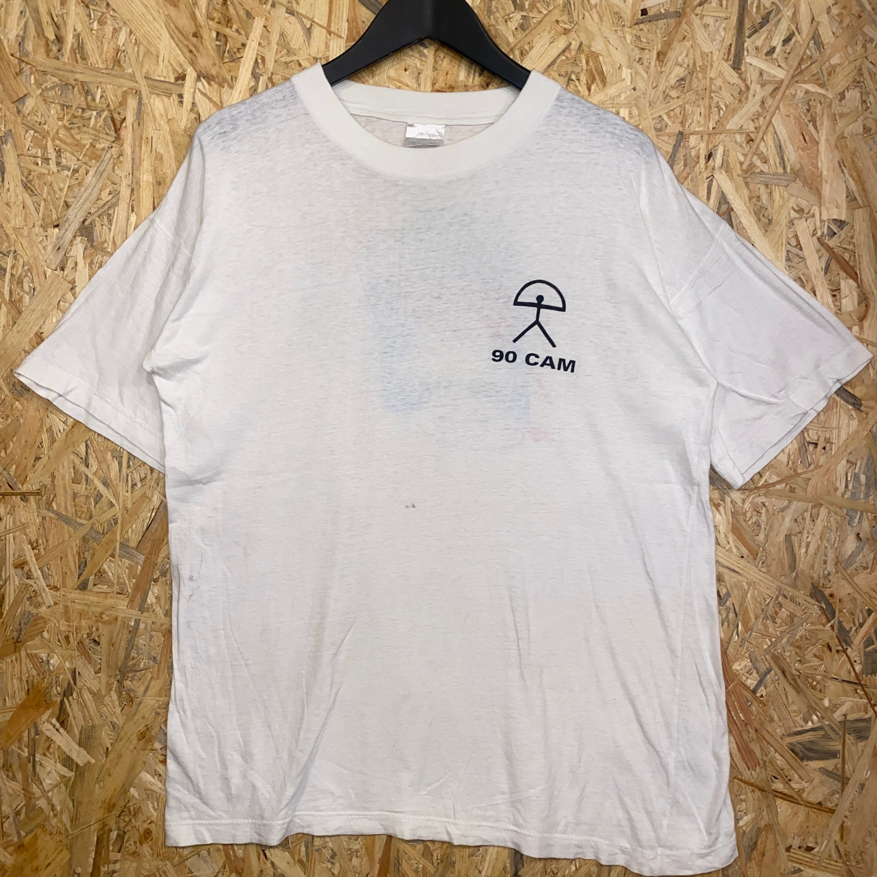1910 90s 90年代 グラフィック イラスト Tシャツ スカイダイビング ユーモア 90cam 棒人間 ホワイト 白 古着 メンズ vintage XL