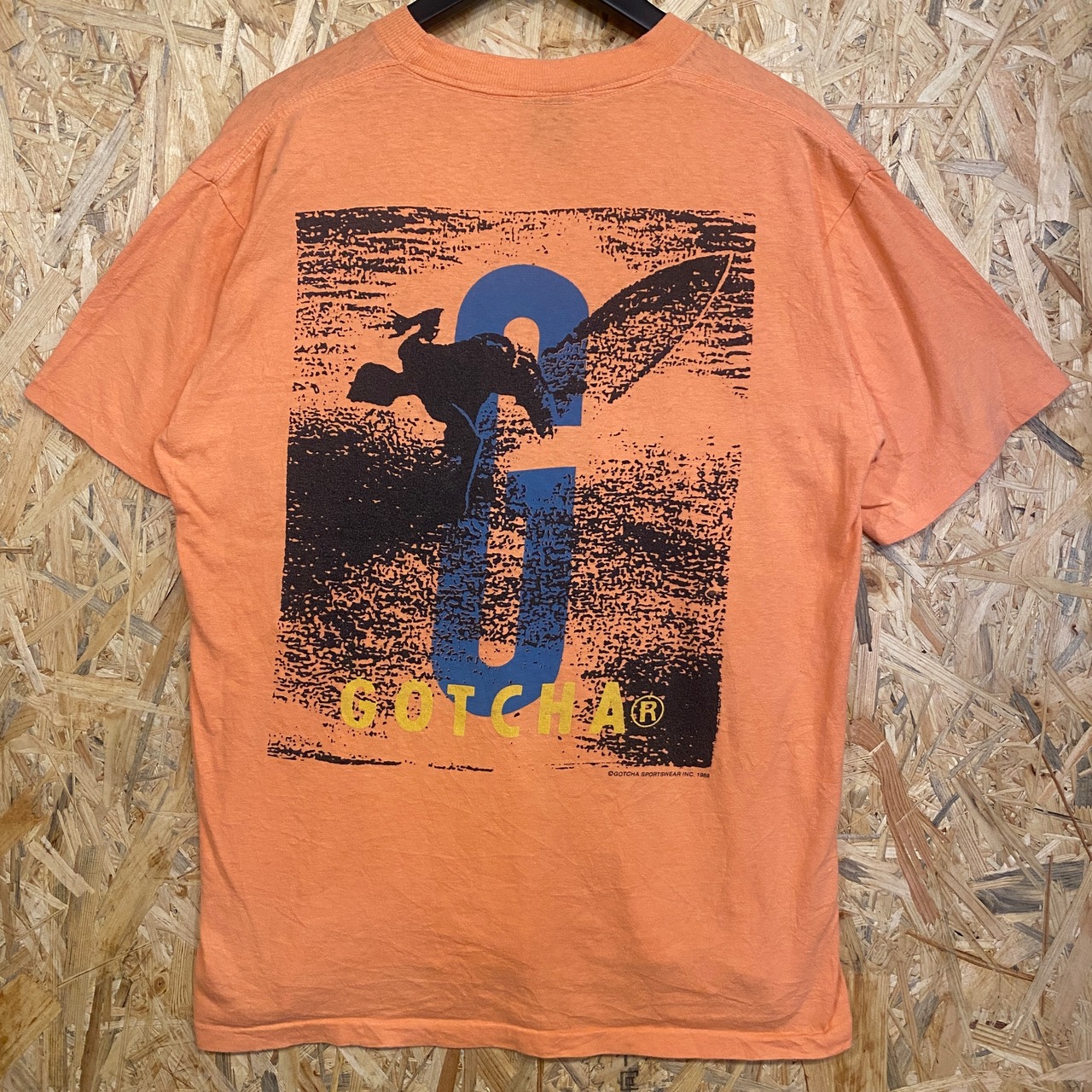 1912 1988s USA製 GOTCHA プリント Tシャツ シングルステッチ グラフィック サーファー スポーツ ガッチャ オレンジ 古着 メンズ vintage XL 80s 80年代
