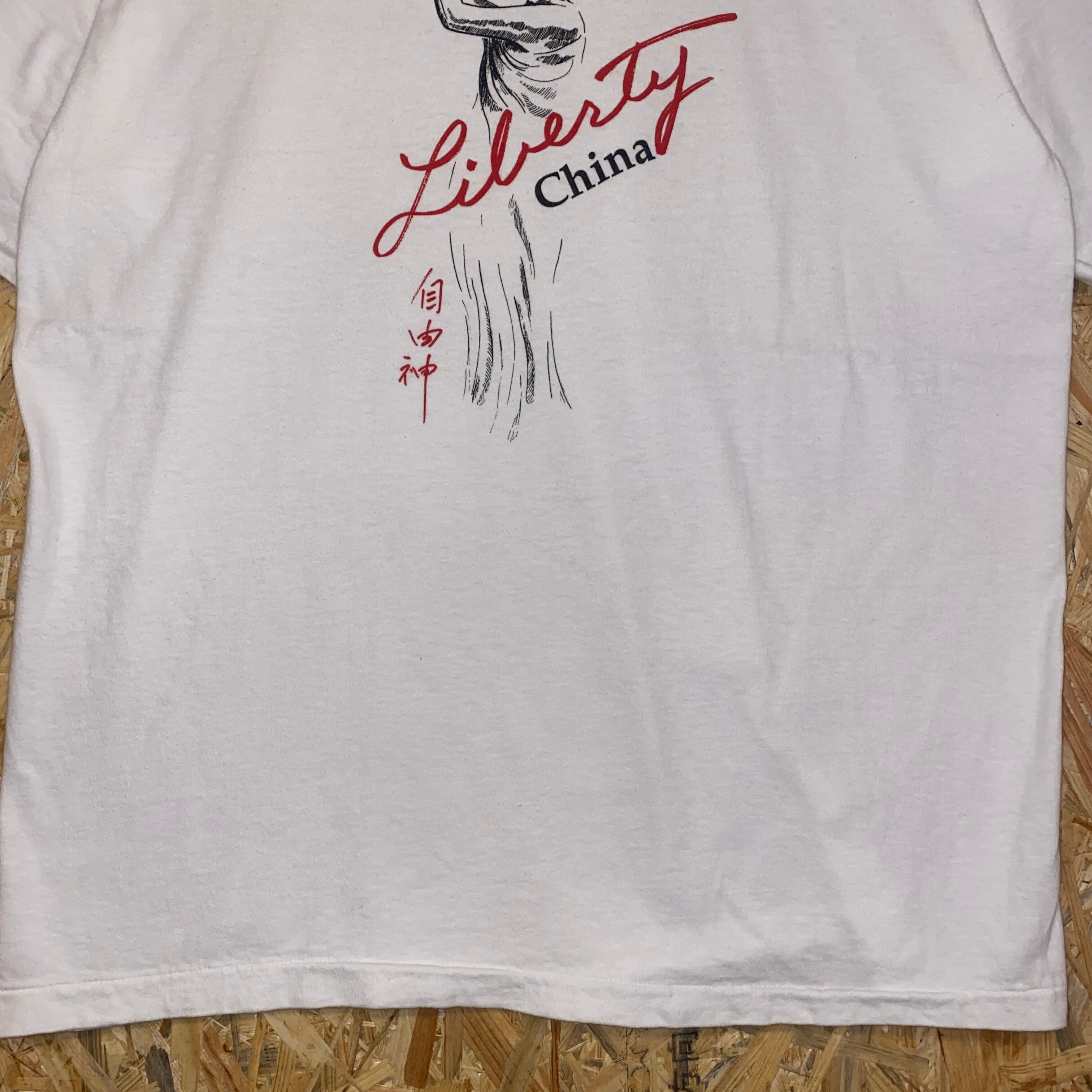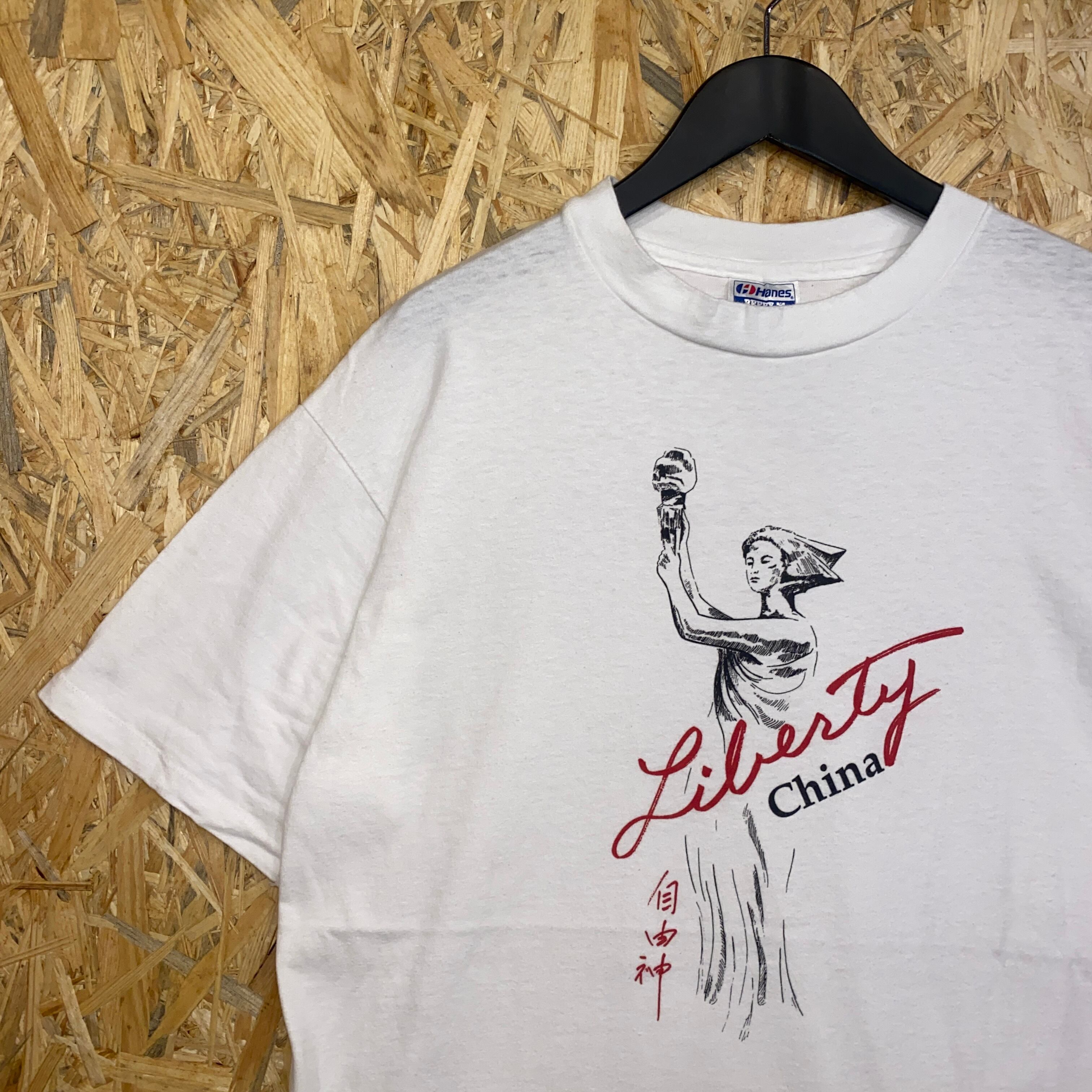 1915 90s 90年代 USA製 自由神 女神 プリント Tシャツ hanes イラスト グラフィック シングルステッチ ホワイト 白 古着 メンズ vintage XL