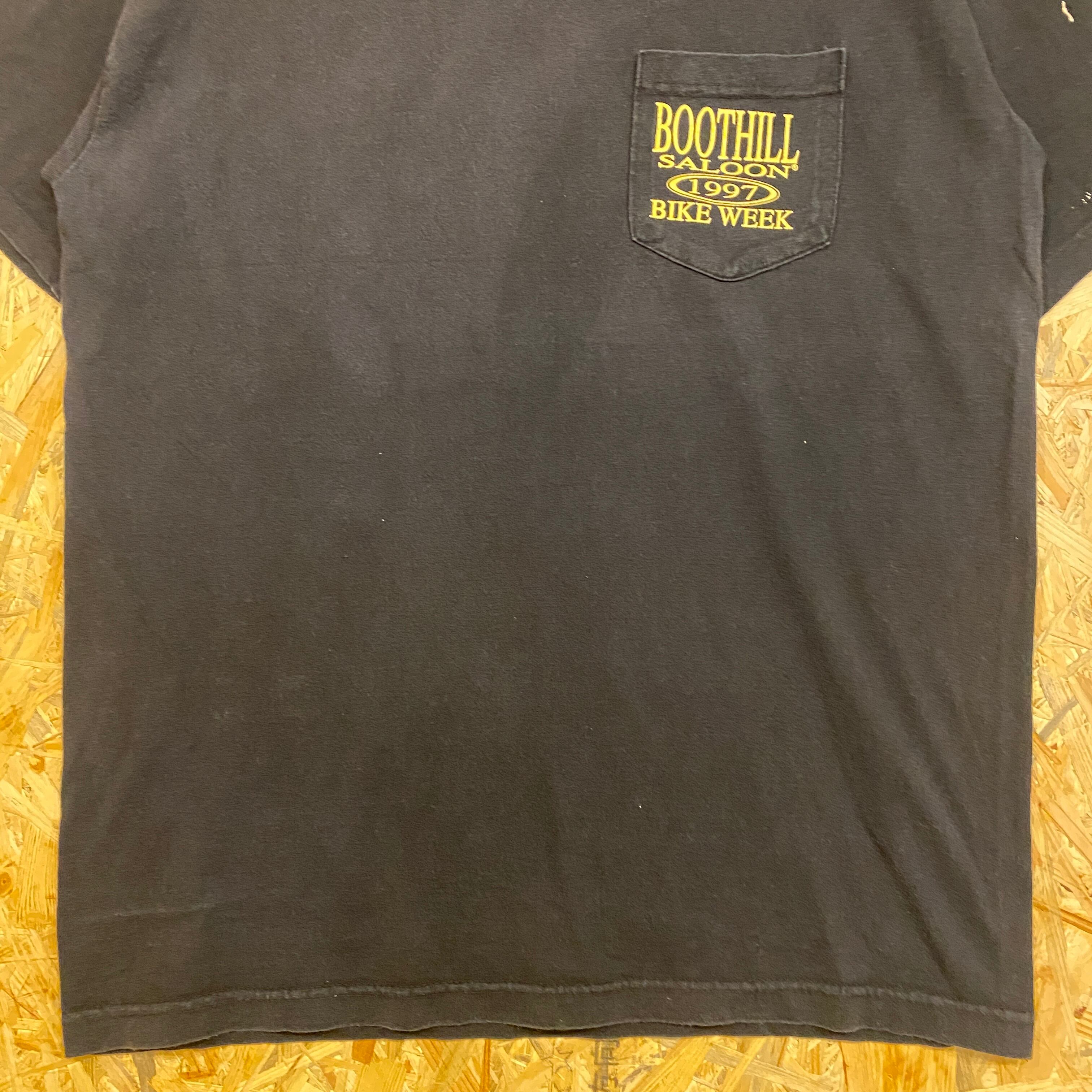 1919 90s 90年代 USA製 Murina プリント ポケット Tシャツ Boothill Saloon Bike Week 1997 メンズ 古着 vintage 黒 ブラック バイク 車 ブート ヒル