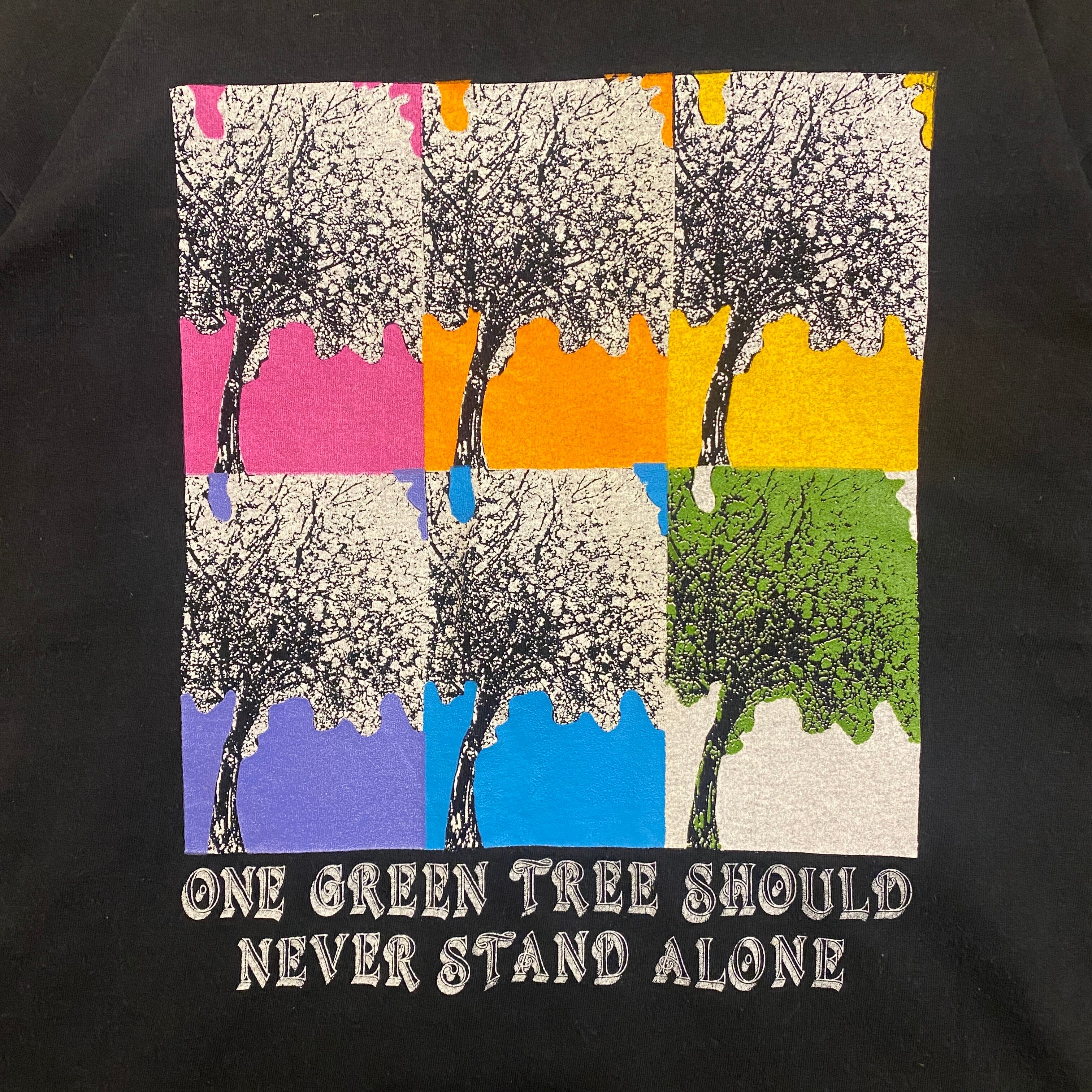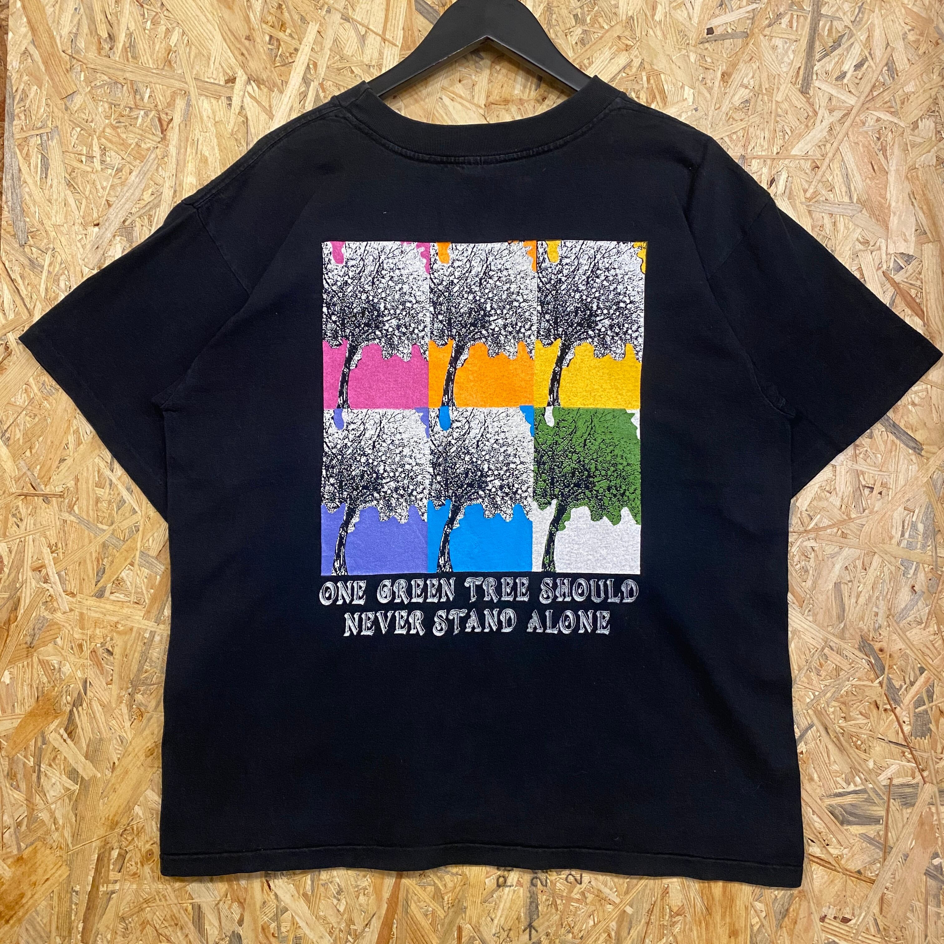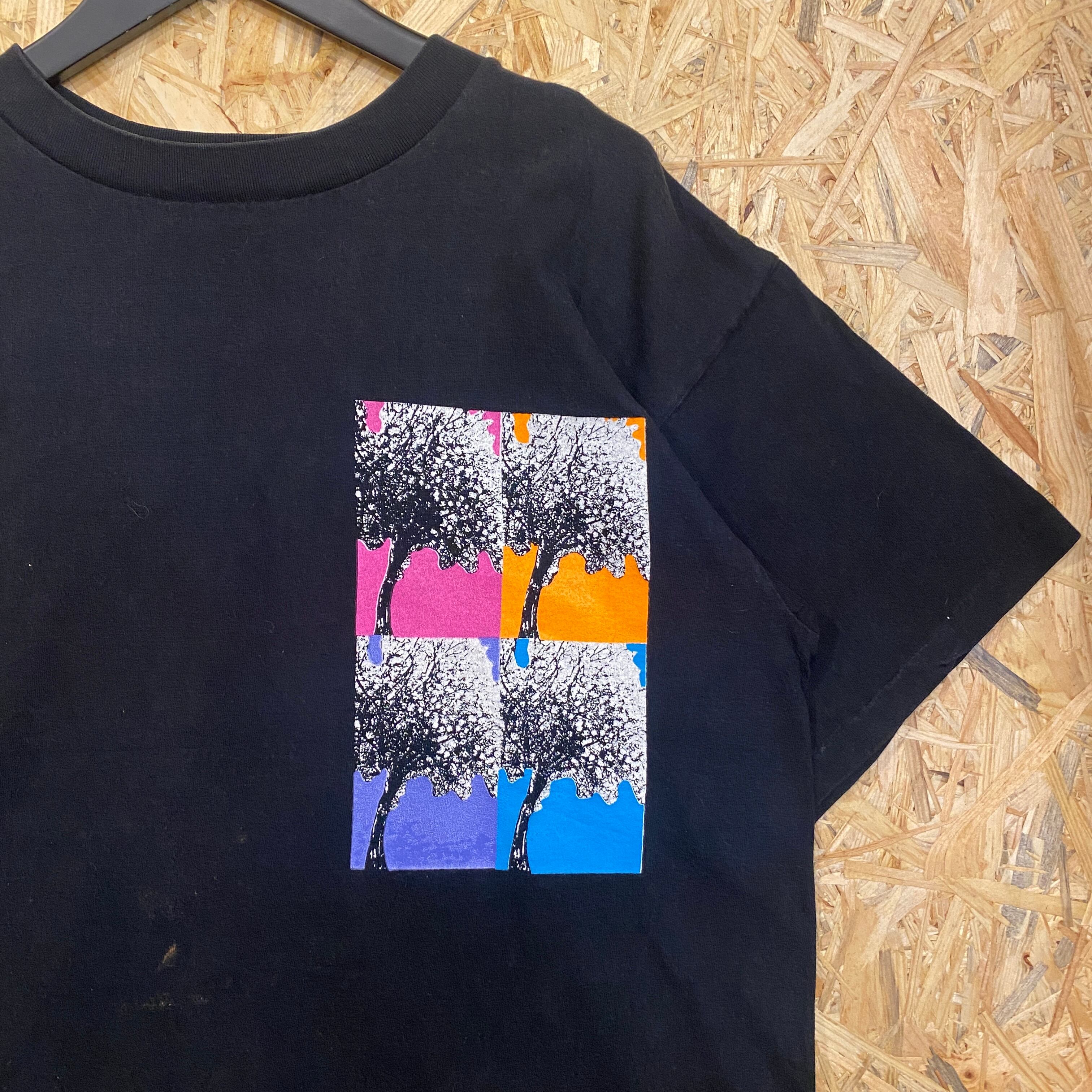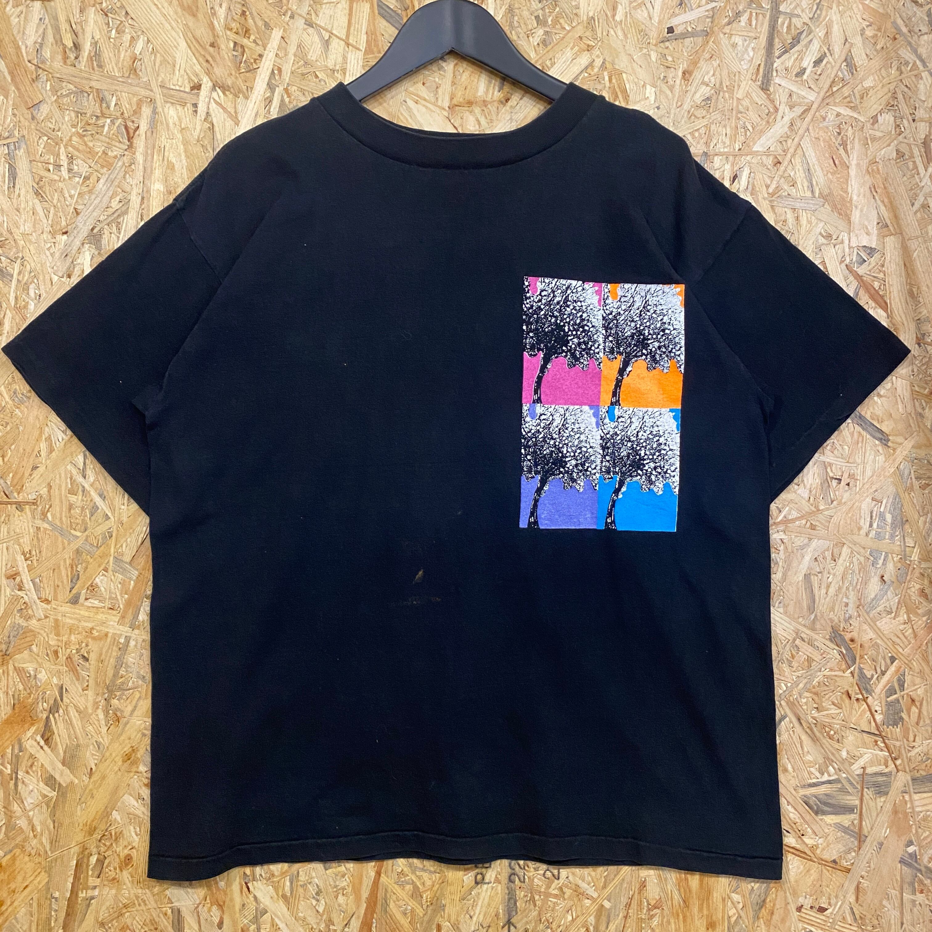 1924 90s〜 90年代〜 USA製 DANSKIN ダンスキン プリント Tシャツ 自然 木 植物 アート バックプリント シングルステッチ カラフル ブラック 黒 M