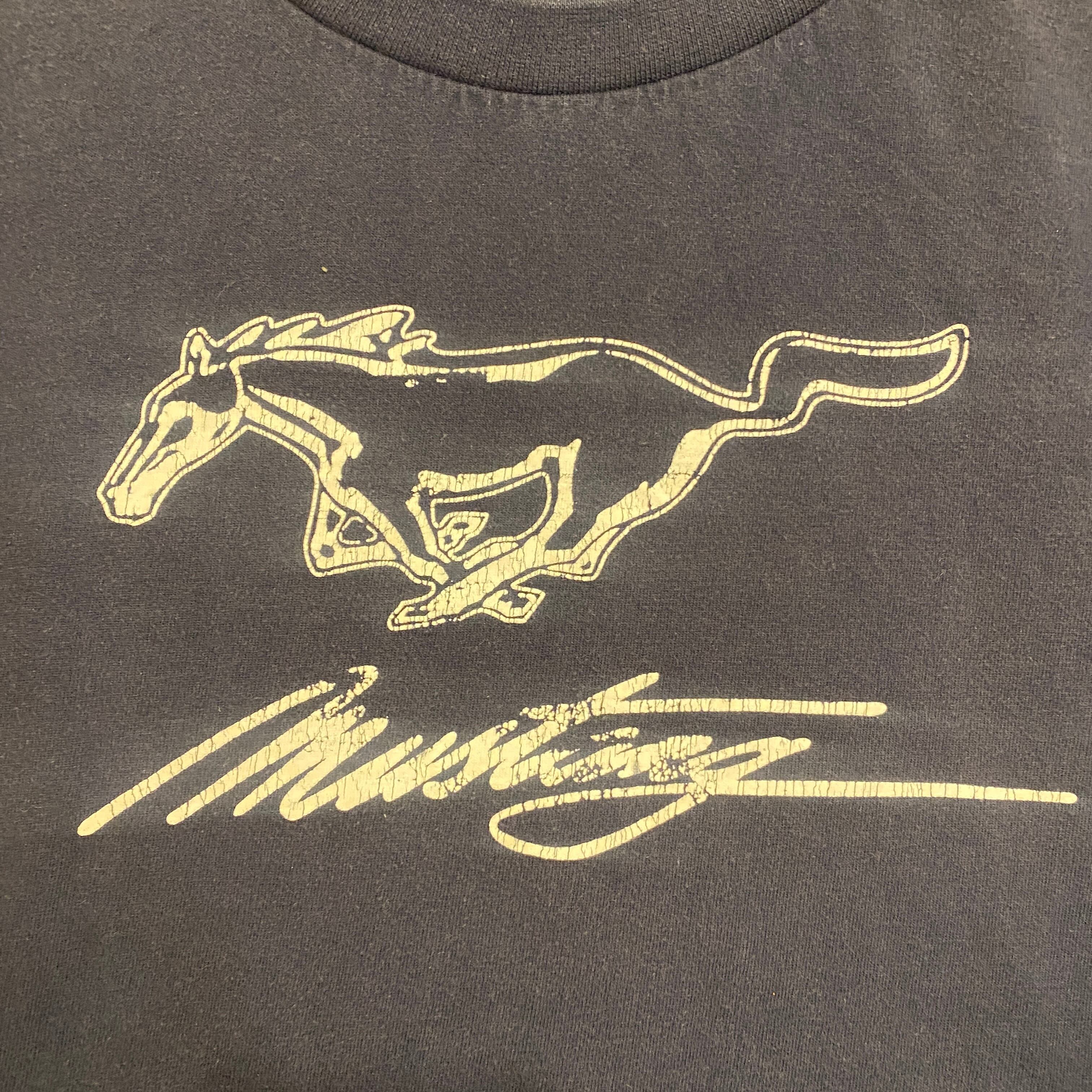 1929 00s〜 00年代〜 LISTEVE & BARRIOS mustang logo プリント Tシャツ 馬 うま 動物 シングルステッチ 紺色 ブルー 古着 メンズ vintage XL