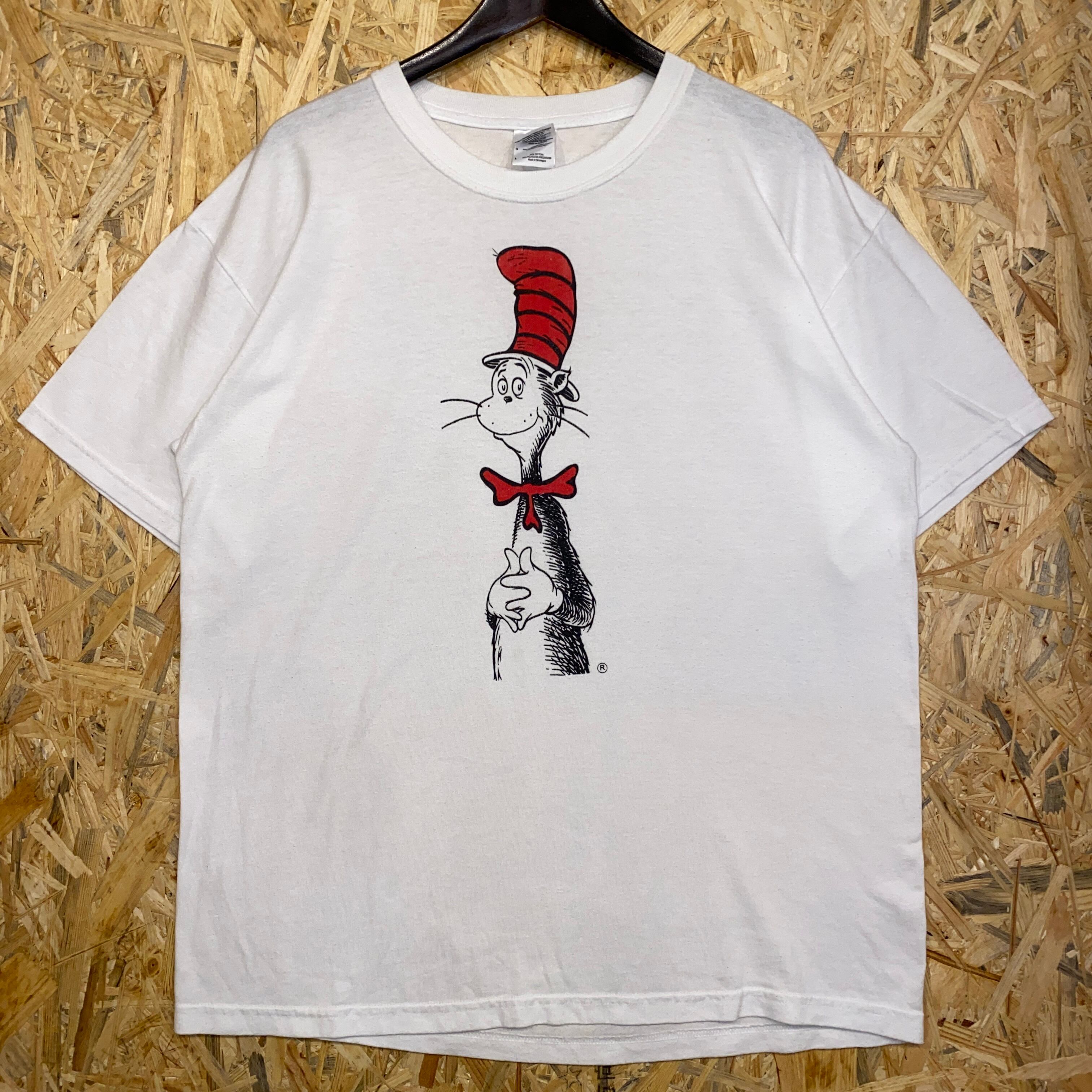 1938 00s〜 00年代〜 グラフィック プリント Tシャツ キャットインザハット Dr.Seusu 絵本 本 作家 猫 動物 ホワイト 白 古着 メンズ vintage L