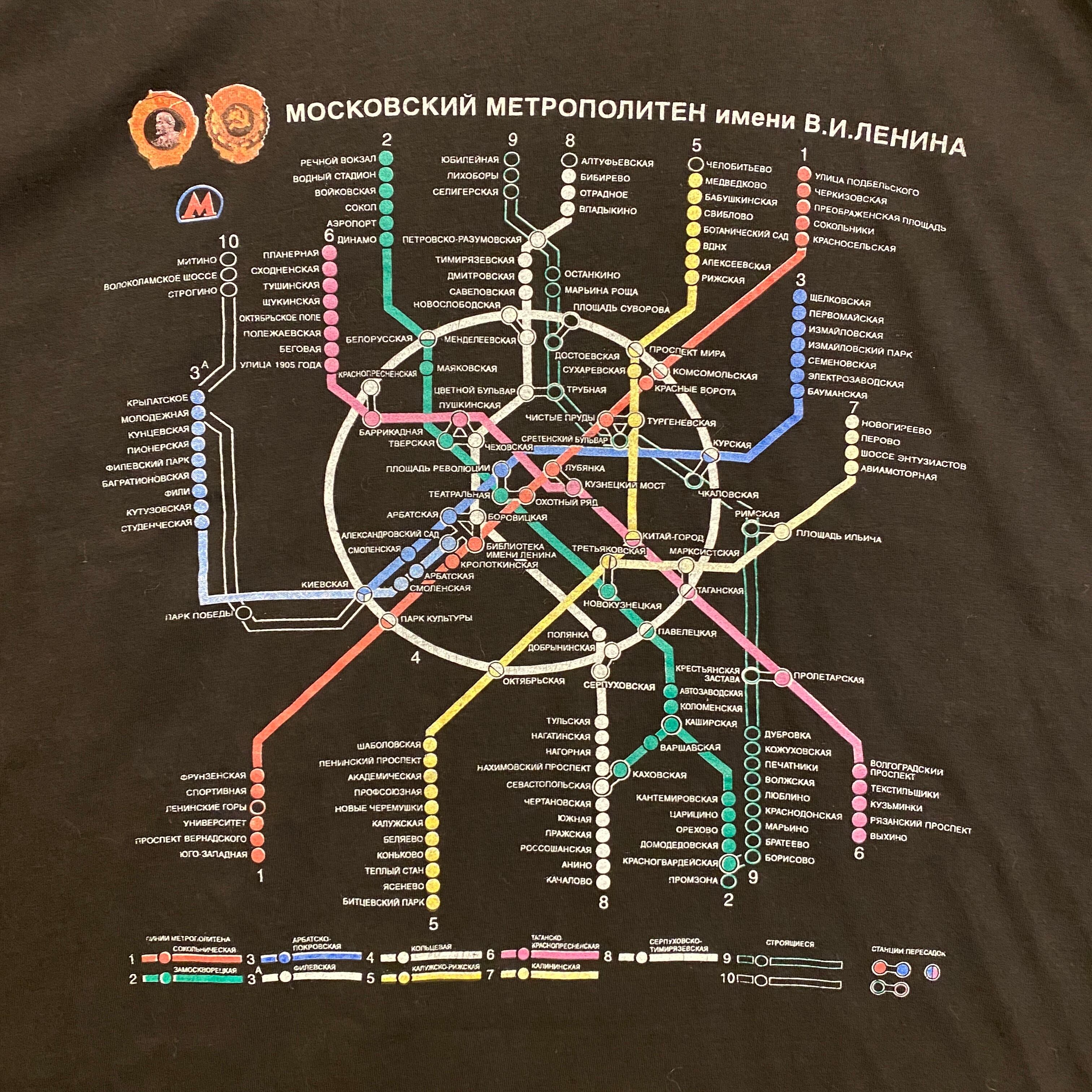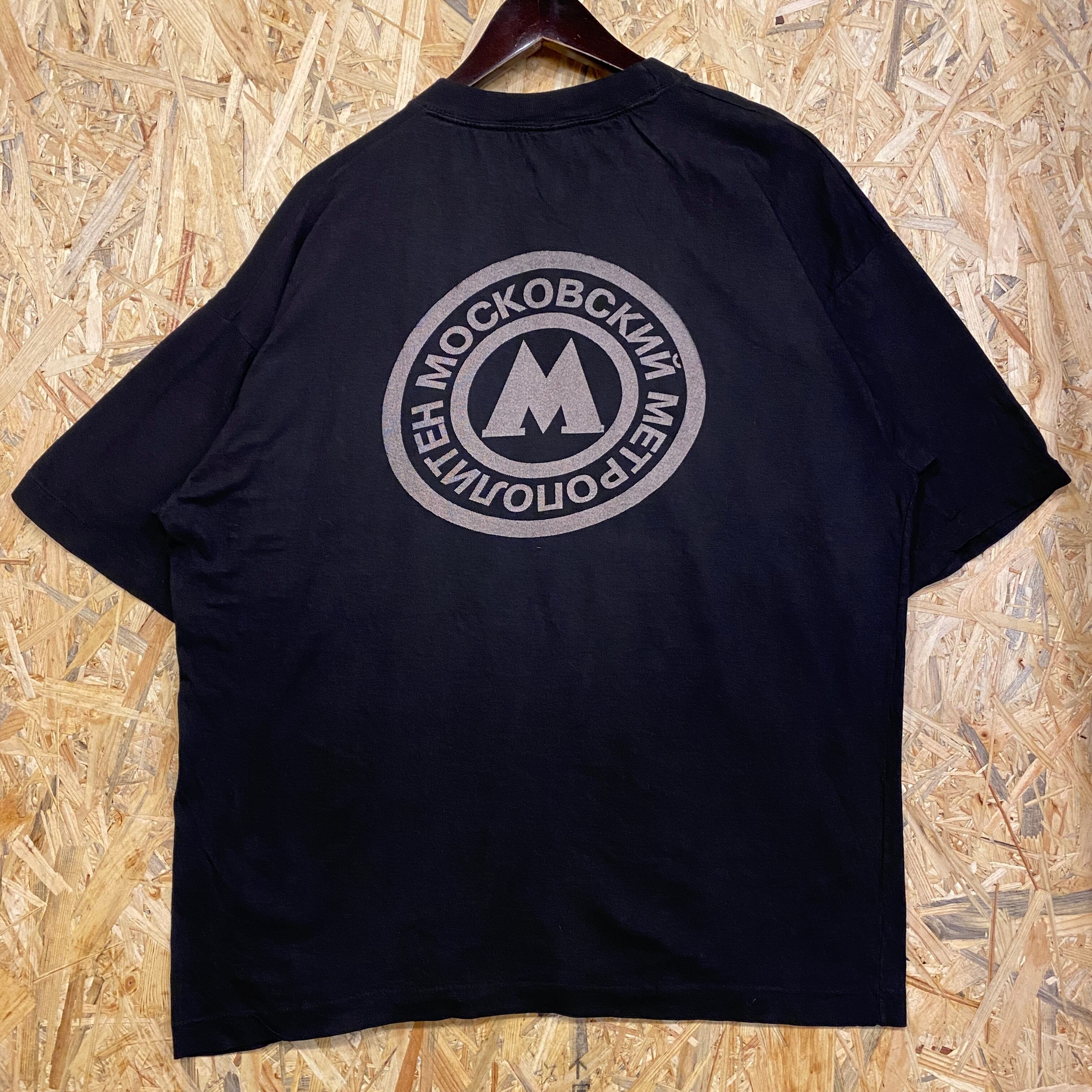 1939 90s〜 90年代〜 DAVE'S BASIC アート プリント Tシャツ モスクワ 電車 路線 両面プリント シングルステッチ ブラック 黒 古着 メンズ vintage L