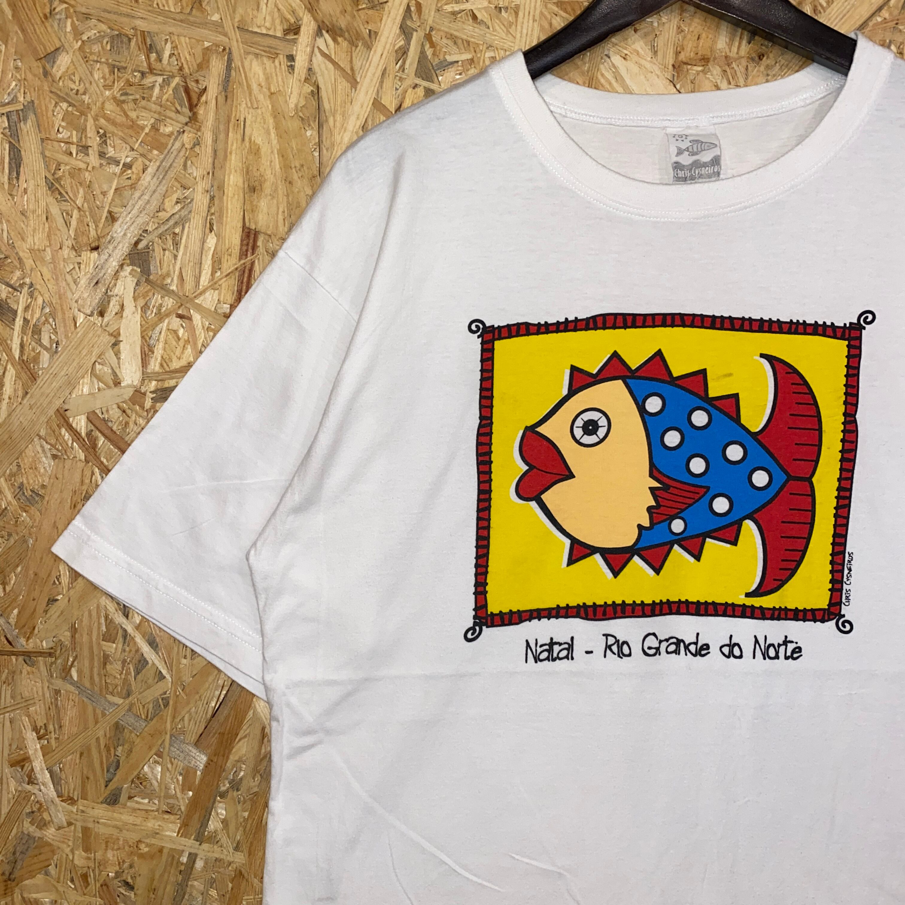 1943 CHRIS CYSNEIROS アート Tシャツ 魚 フィッシュ グラフィック アジアン プリント ホワイト 白 古着 メンズ vintage