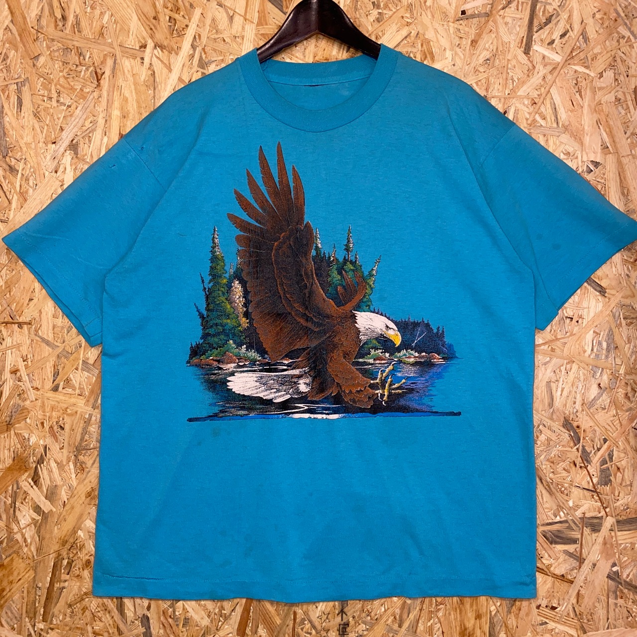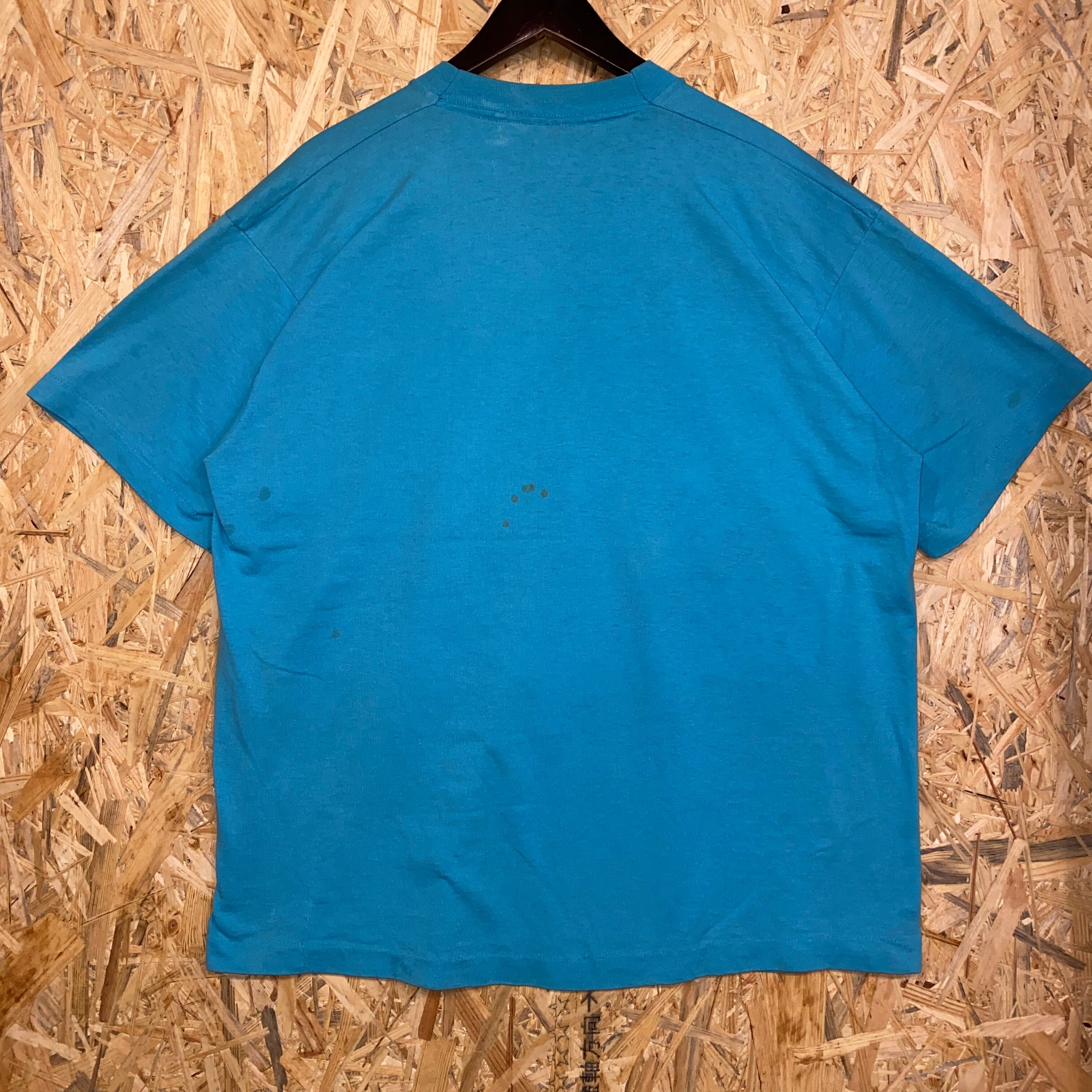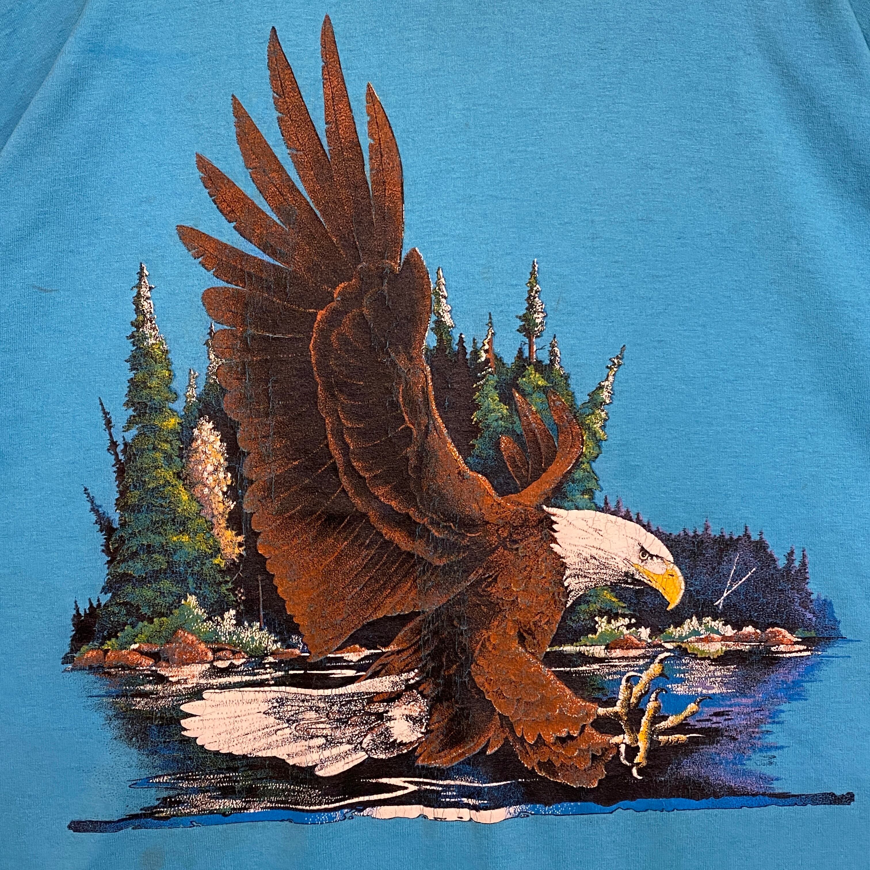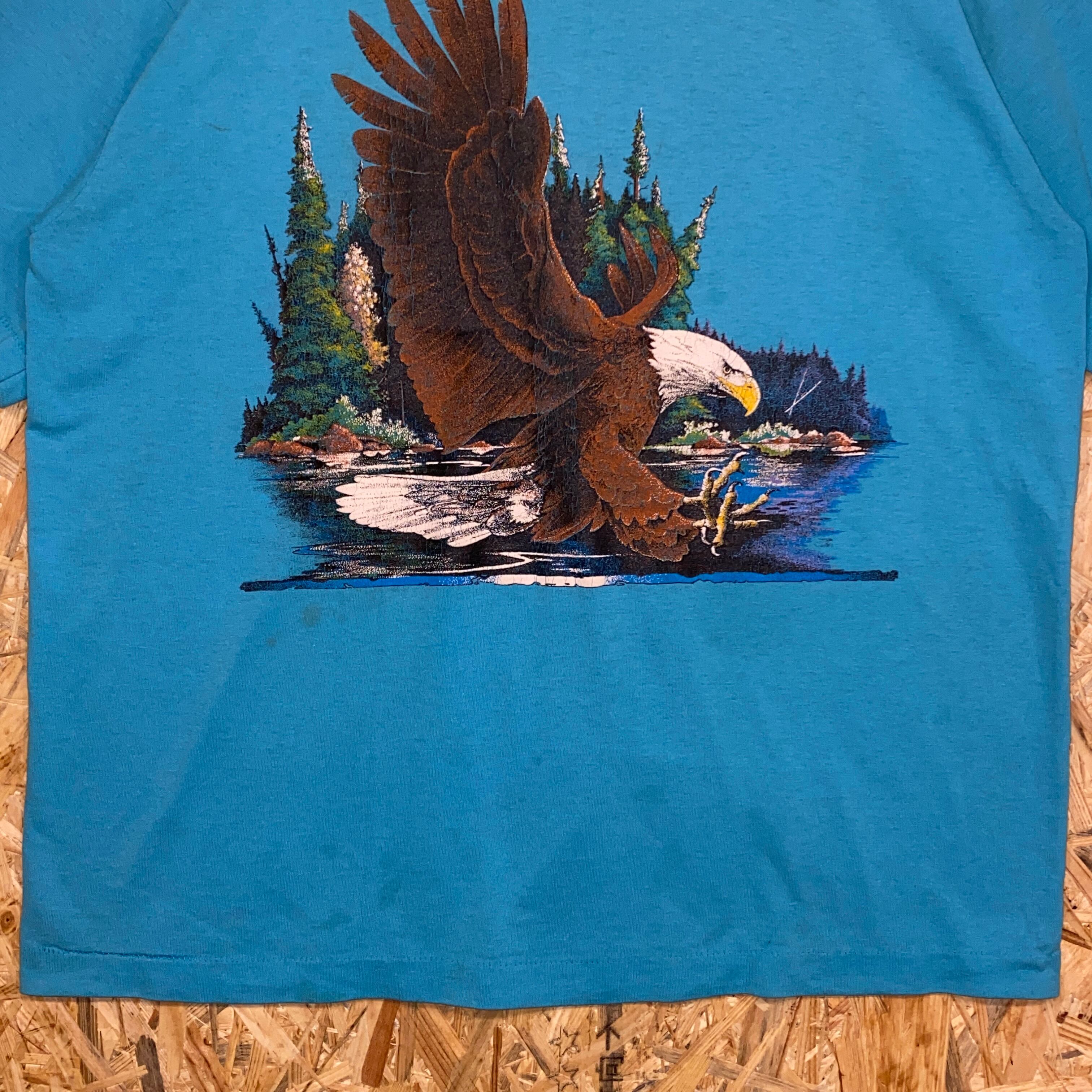 1947 90s 90年代 イーグル イラスト Tシャツ アニマル 動物 鷲 風景 シングルステッチ プリント アート 水色 古着 メンズ vintage