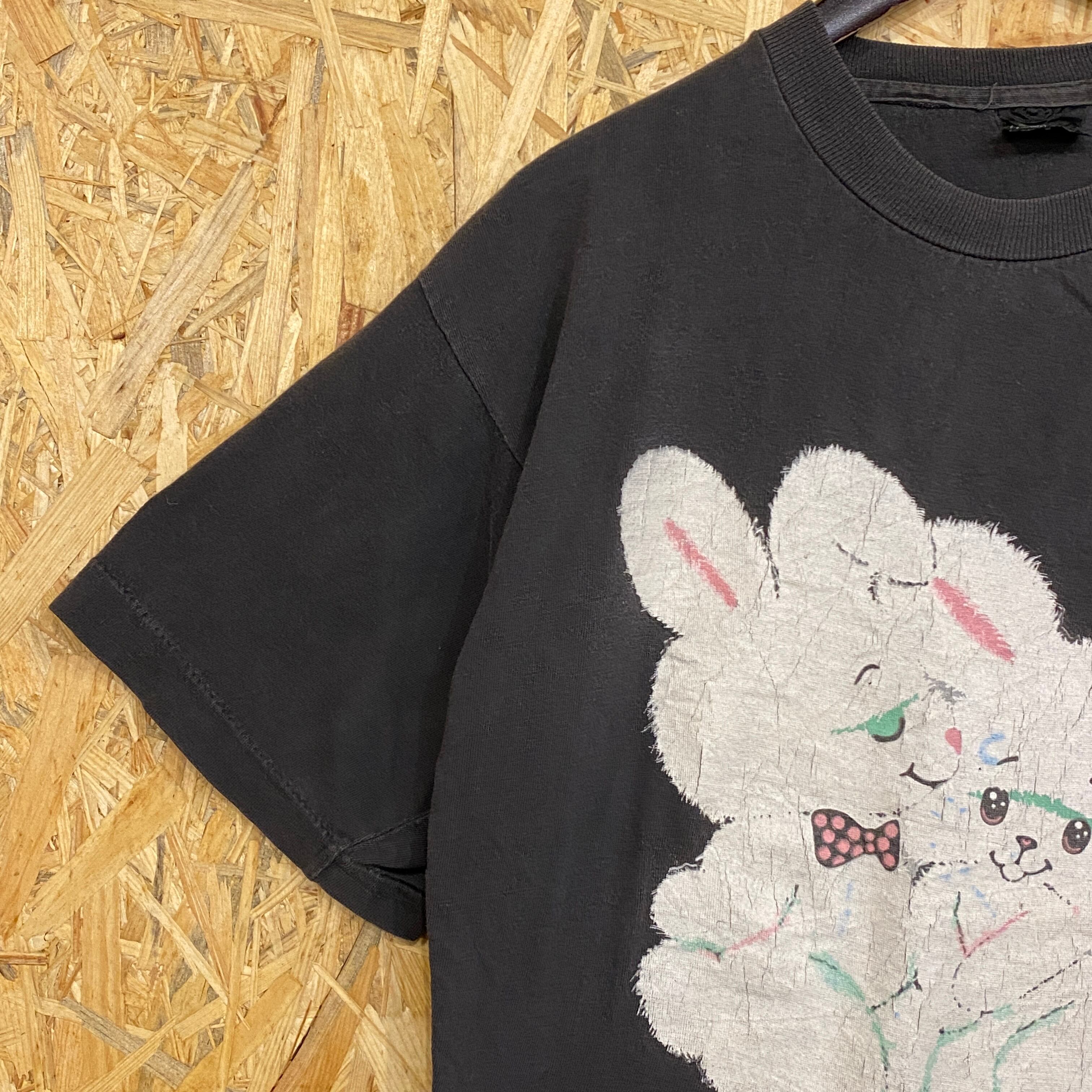 1948 アニマル Tシャツ イラスト うさぎ 動物 グレー シングルステッチ パステル 古着 メンズ vintage L