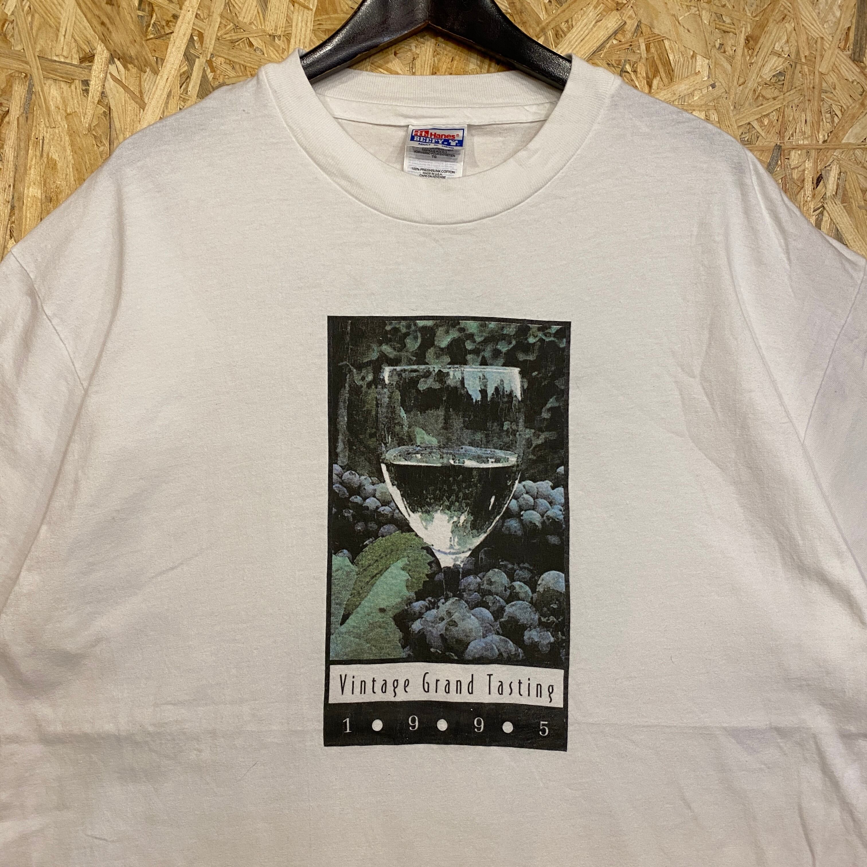 1951 90s 90年代 USA製 Hanes Vintage Grand Tasting プリント Tシャツ ワイン お酒 メンズ 古着 vintage ヘインズ ぶどう グラス