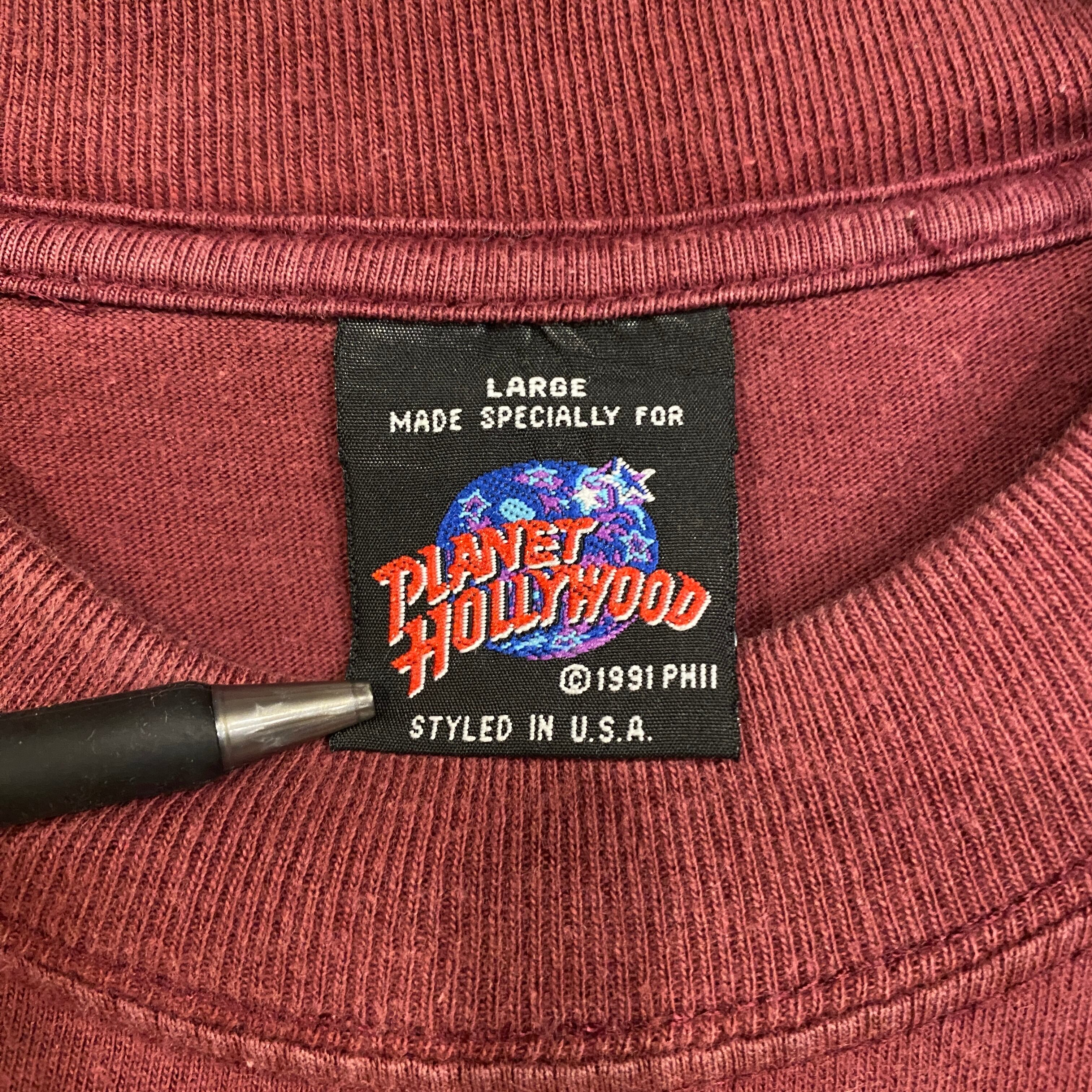 1955 90s 90年代 USA製 PLANET HOLLYWOOD プリント Tシャツ プラネットハリウッド ロンドン 映画 レストラン フロリダ州 ワインレッド 古着 メンズ vintage