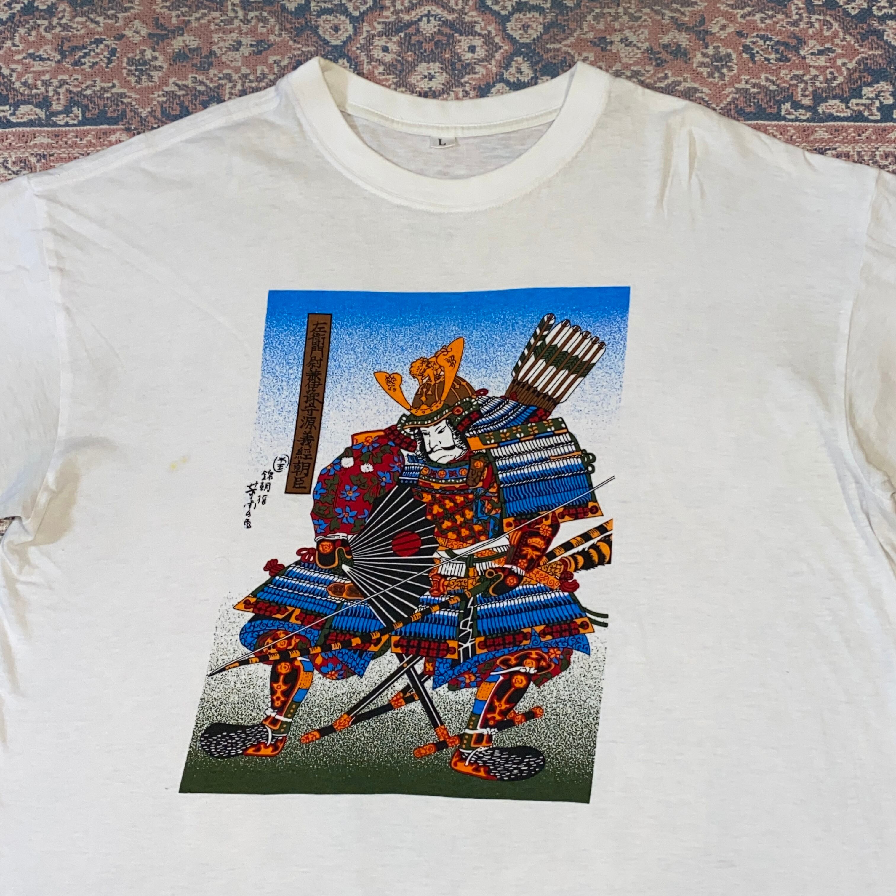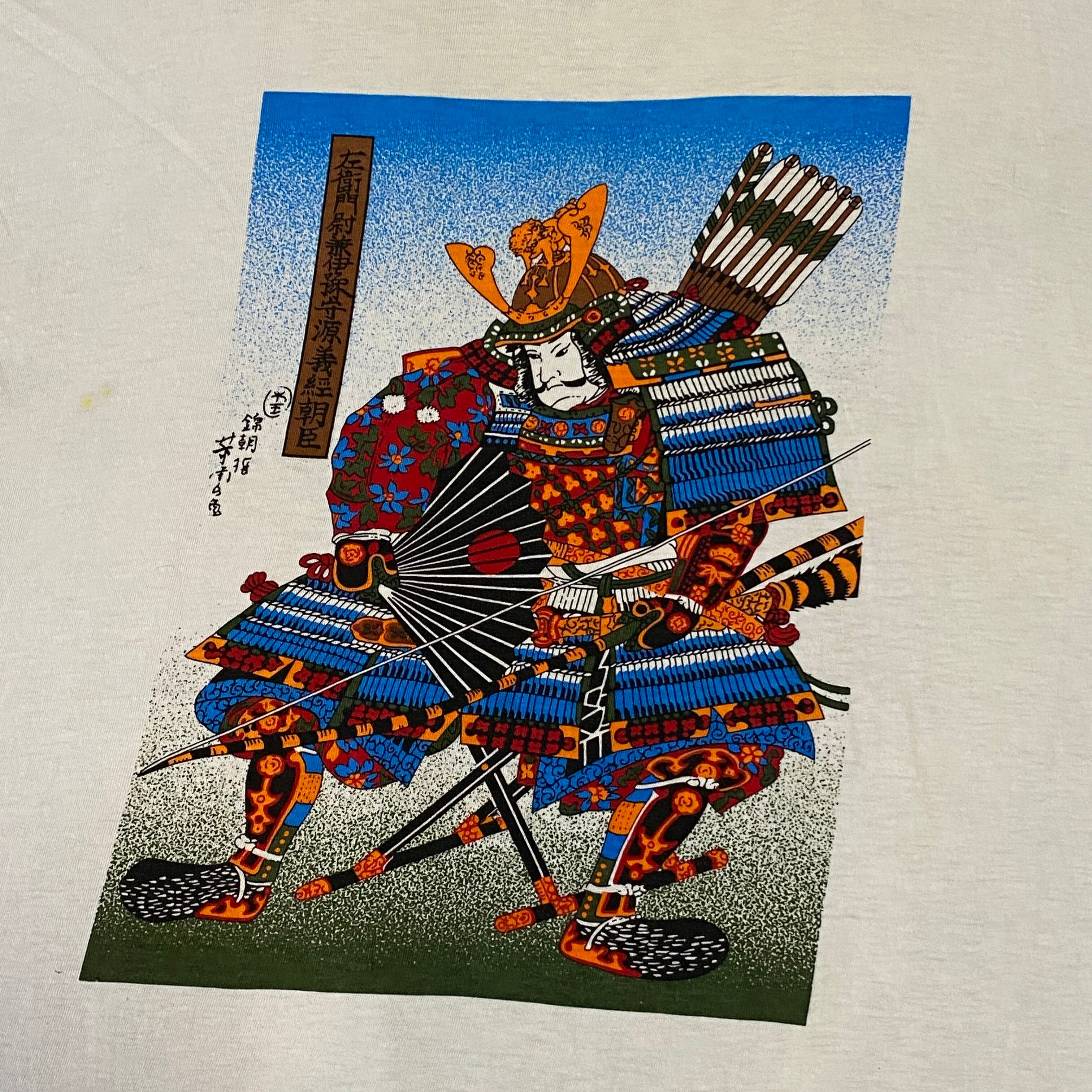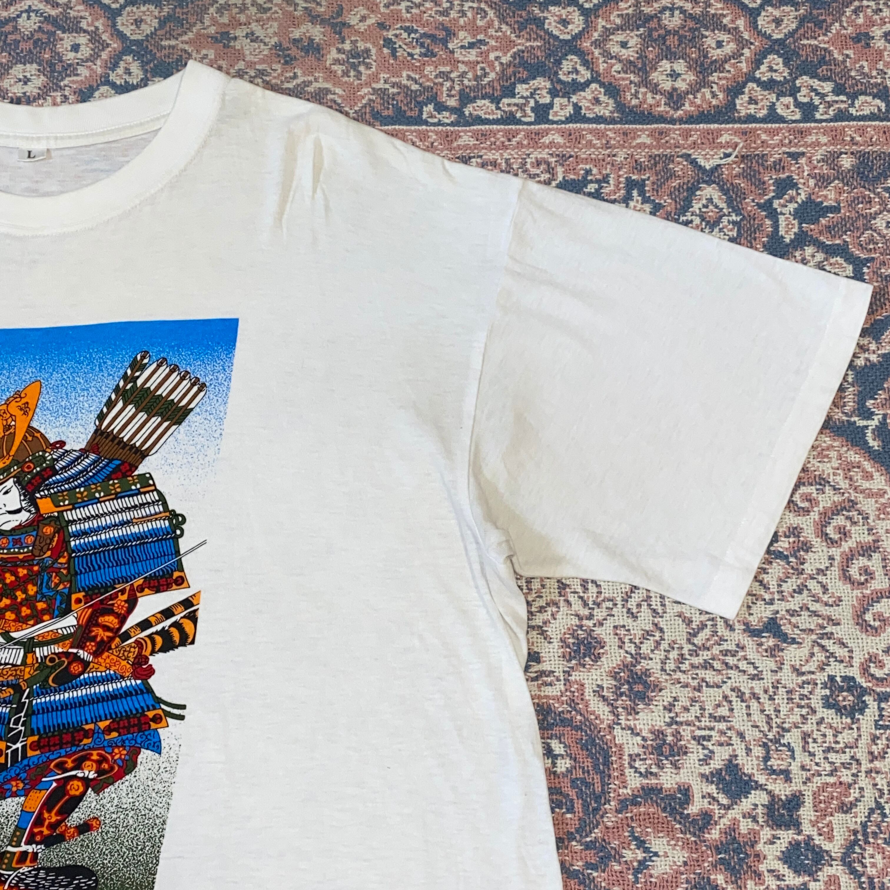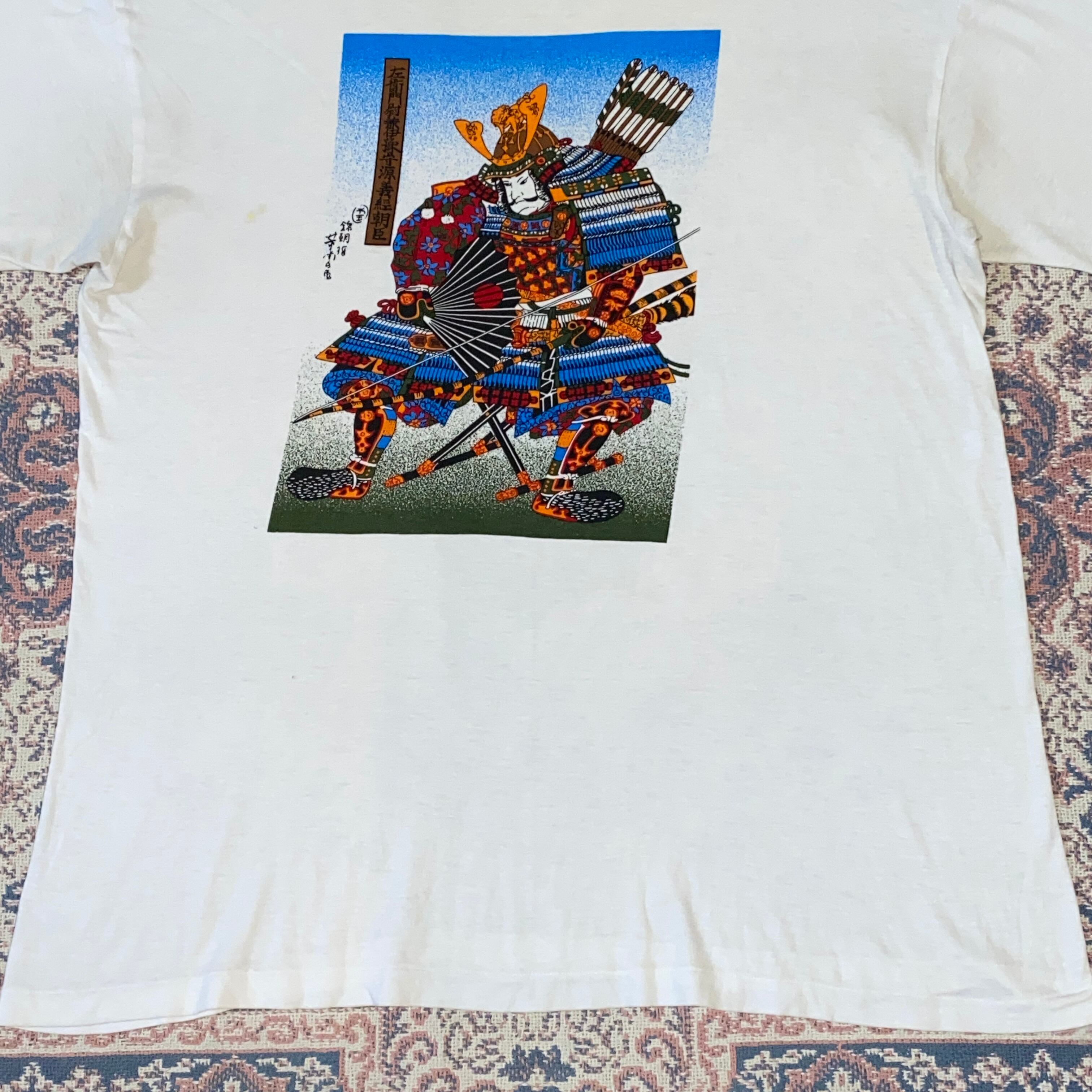 1963 90s 90年代 源義経 武将 プリント Tシャツ 歴史 浮世絵 シングルステッチ ホワイト 白 古着 メンズ vintage