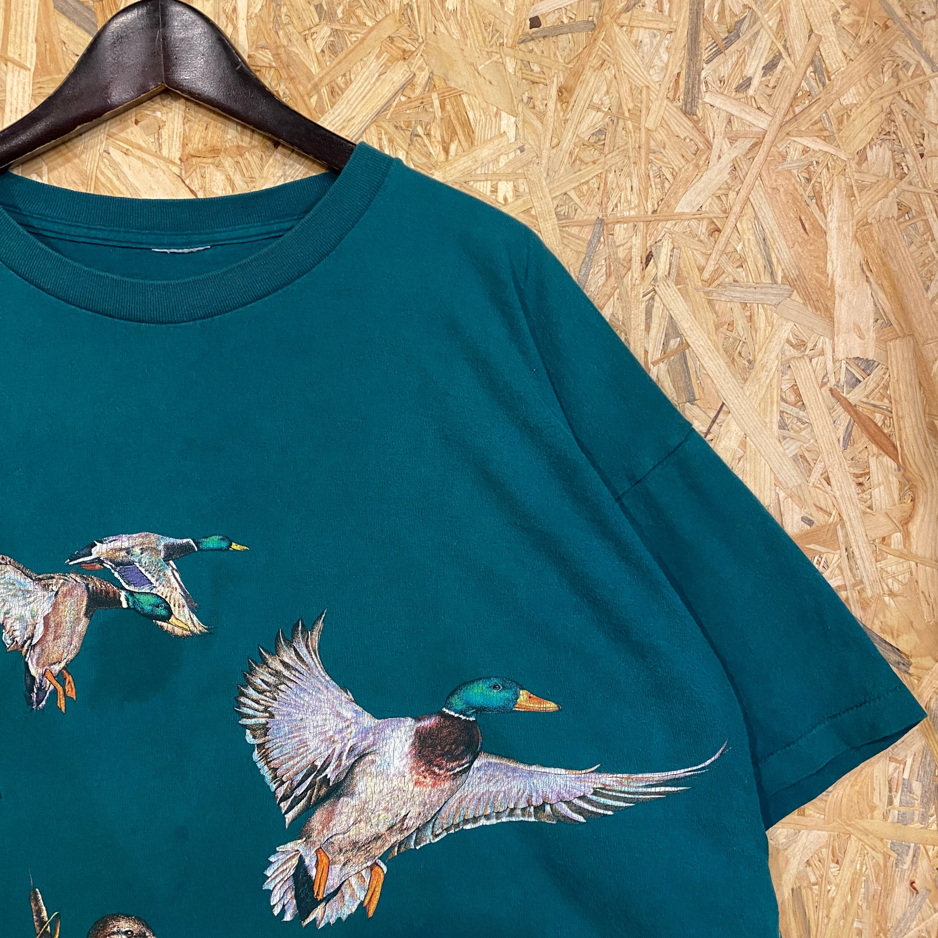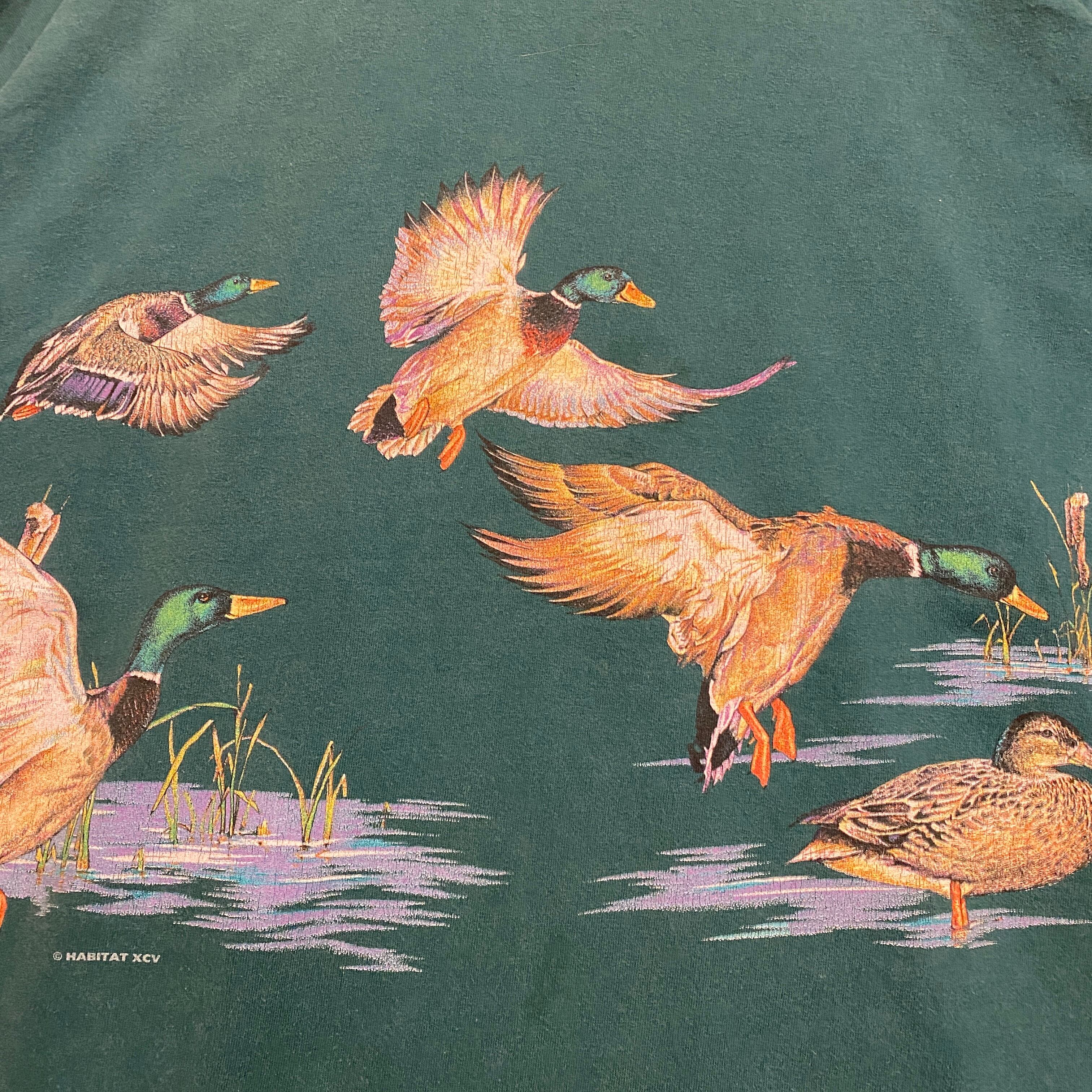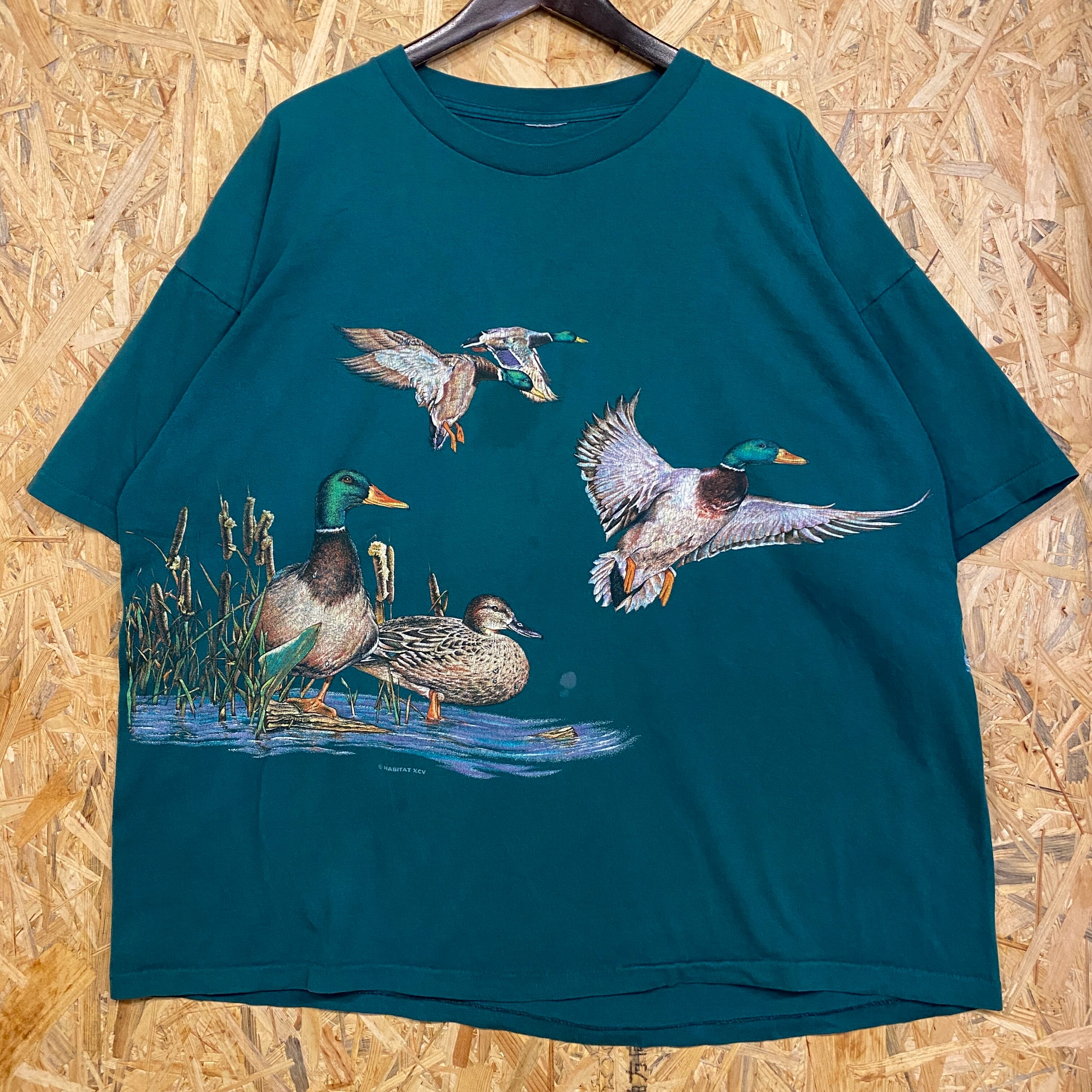 1969 90s~ 90年代~ カモ アニマル プリント Tシャツ 風景 両面 プリント ハビタット ティール グリーン シングルステッチ 古着 メンズ vintage