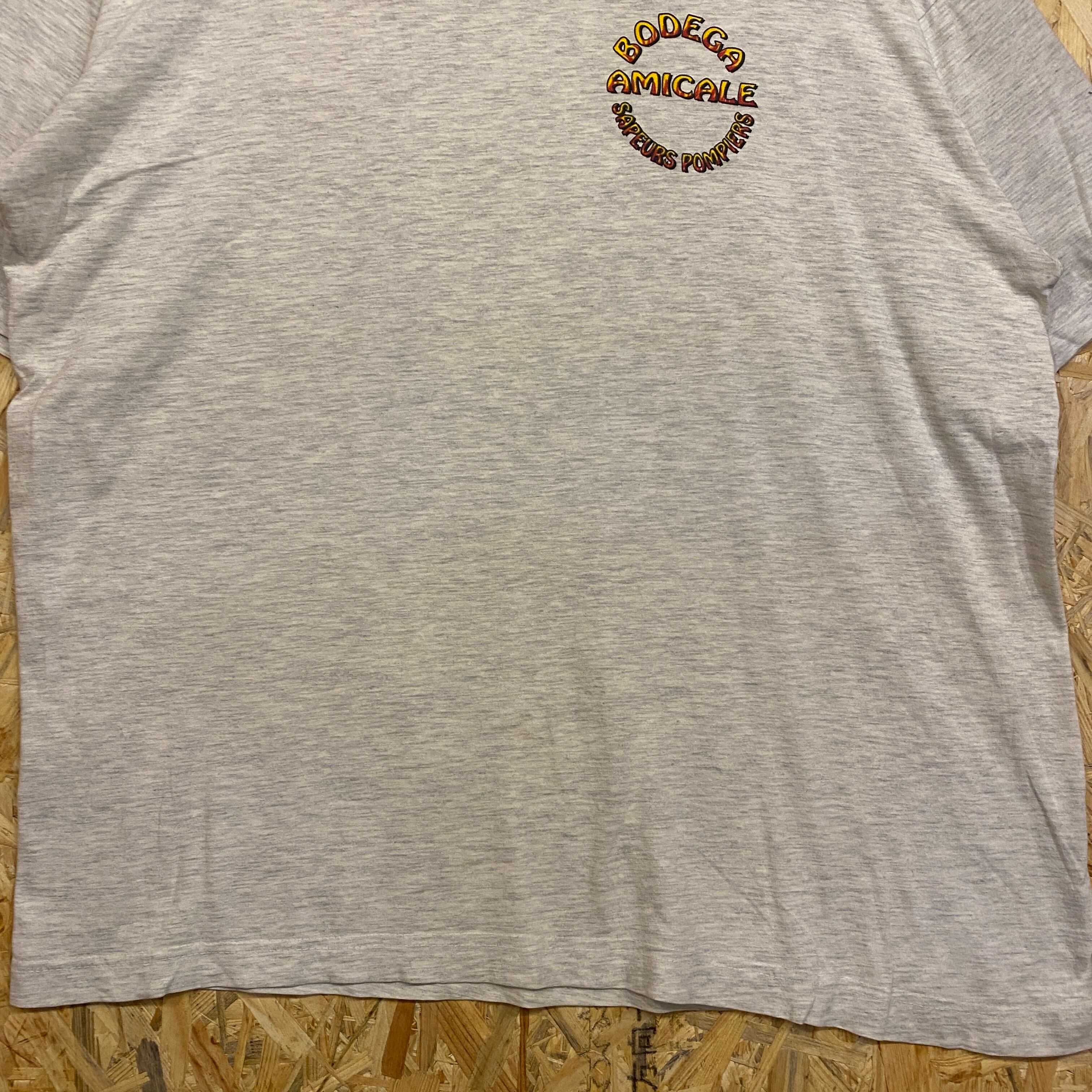 1970 00s~ 00年代~ ワンポイント Tシャツ 両面 プリント メッセージ 消防 FERi A d'ALES 灰色 グレー 古着 メンズ vintage