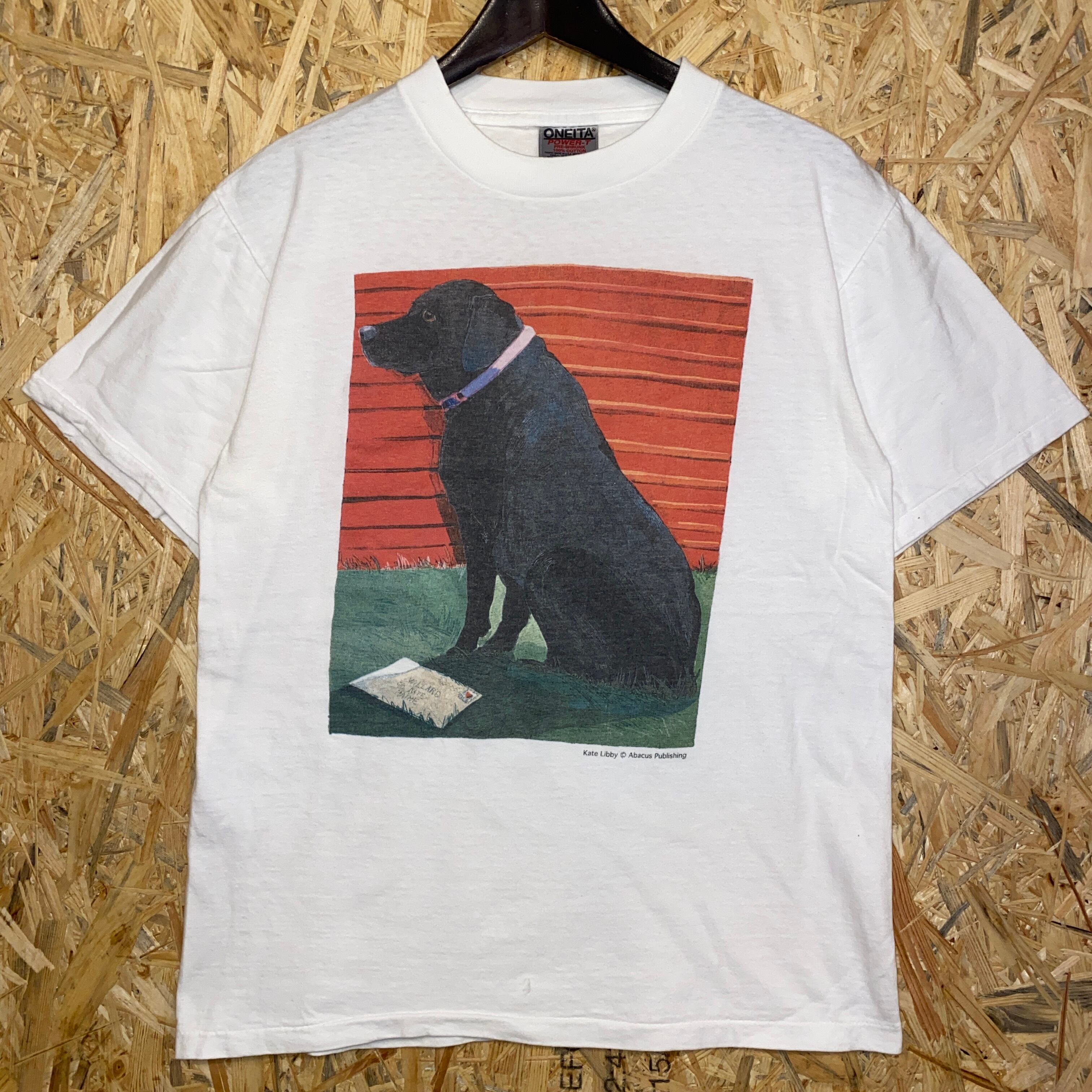 1973 90s 90年代 ラブラドール レトリバー アニマル プリント Tシャツ ONEITA 犬 ケイトリビー イラスト シングルステッチ 白 ホワイト 古着 メンズ vintage M