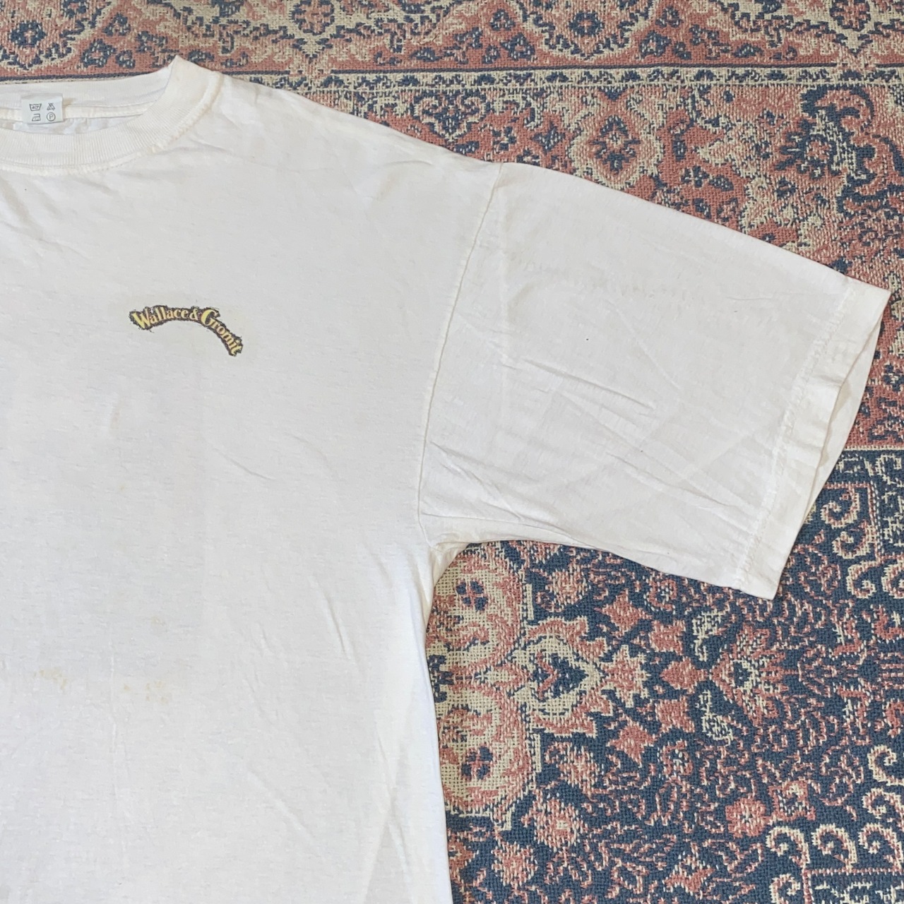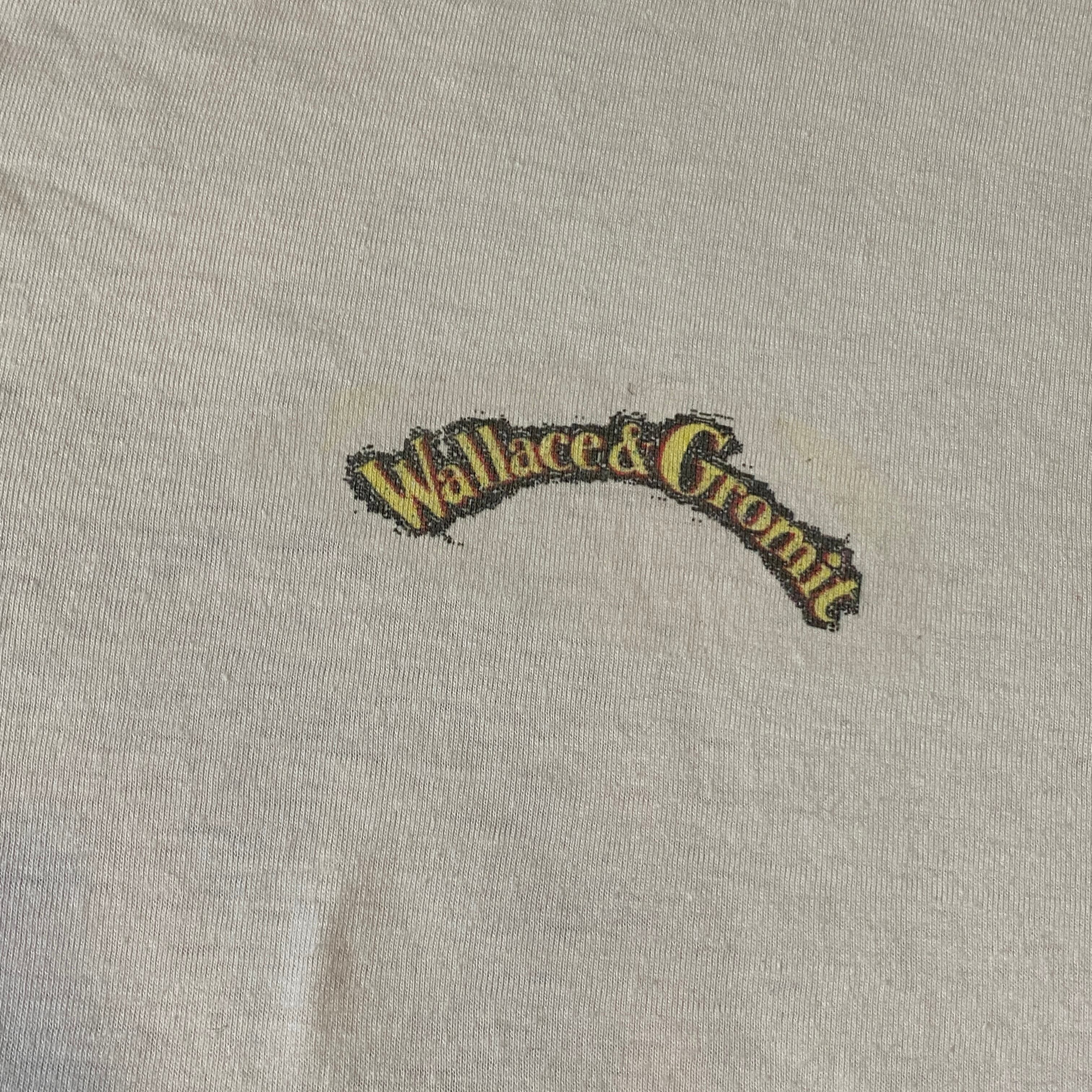 1977 90s 90年代 Wallace & Gromit ウォレスとグルミット アニメ Tシャツ ワンポイント 両面 プリント キャラクター 白 ホワイト メンズ 古着 vintage XXL