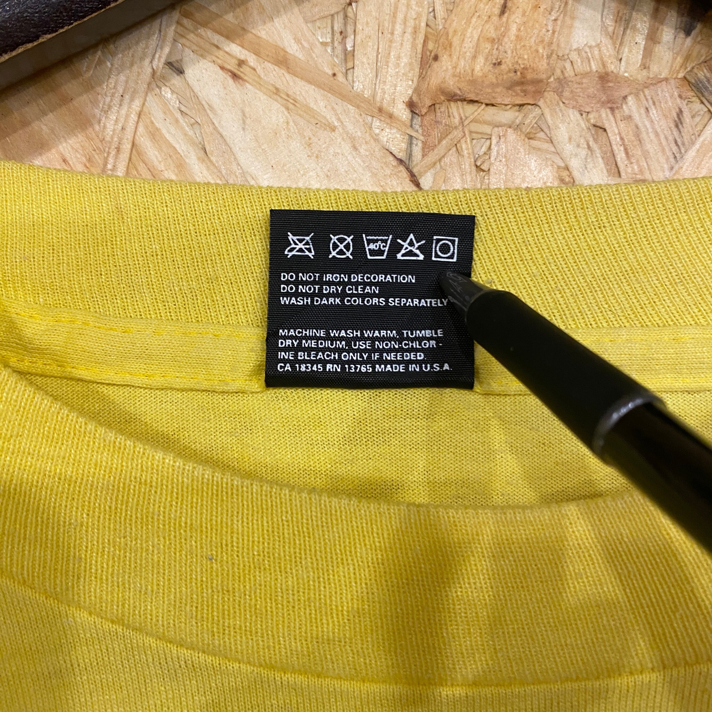 1984 90s〜 90年代〜 USA製 フルーツオブザルーム fruitoftheloom 猫 cat 毛糸 黄色 イエロー シングルステッチ Tシャツ イラストTシャツ 古着 メンズ vintage