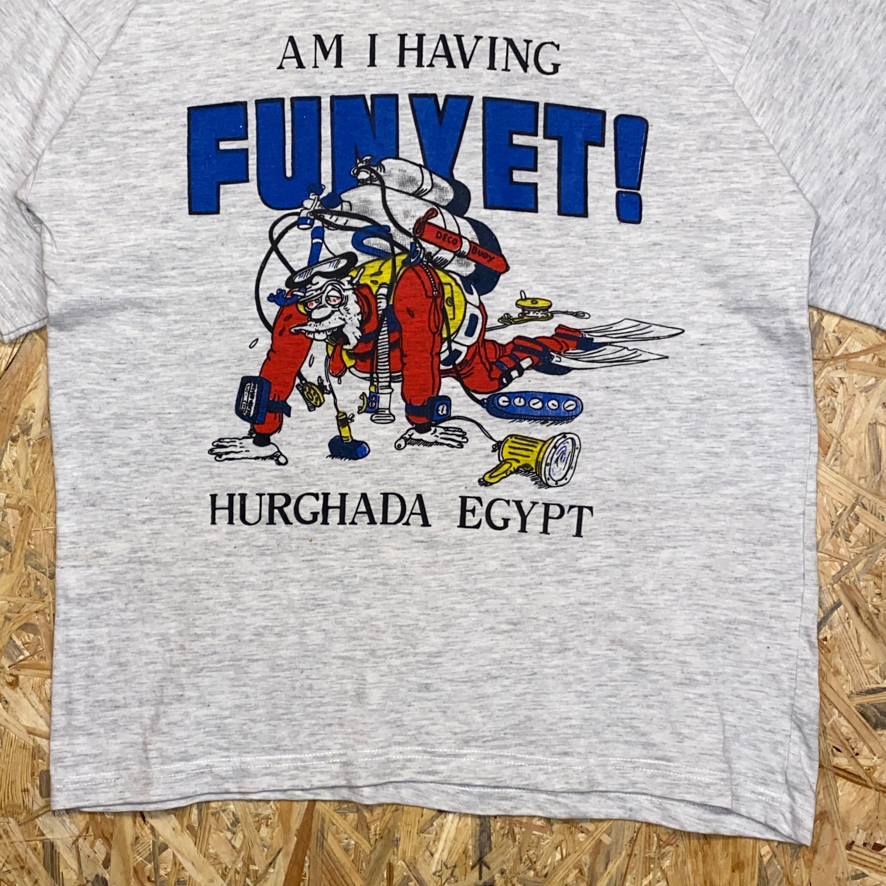 1992 90s〜 90年代〜 Egypt エジプト グラフィック プリント Tシャツ ダイビング ボンベ グレー 灰色 古着 メンズ vintage