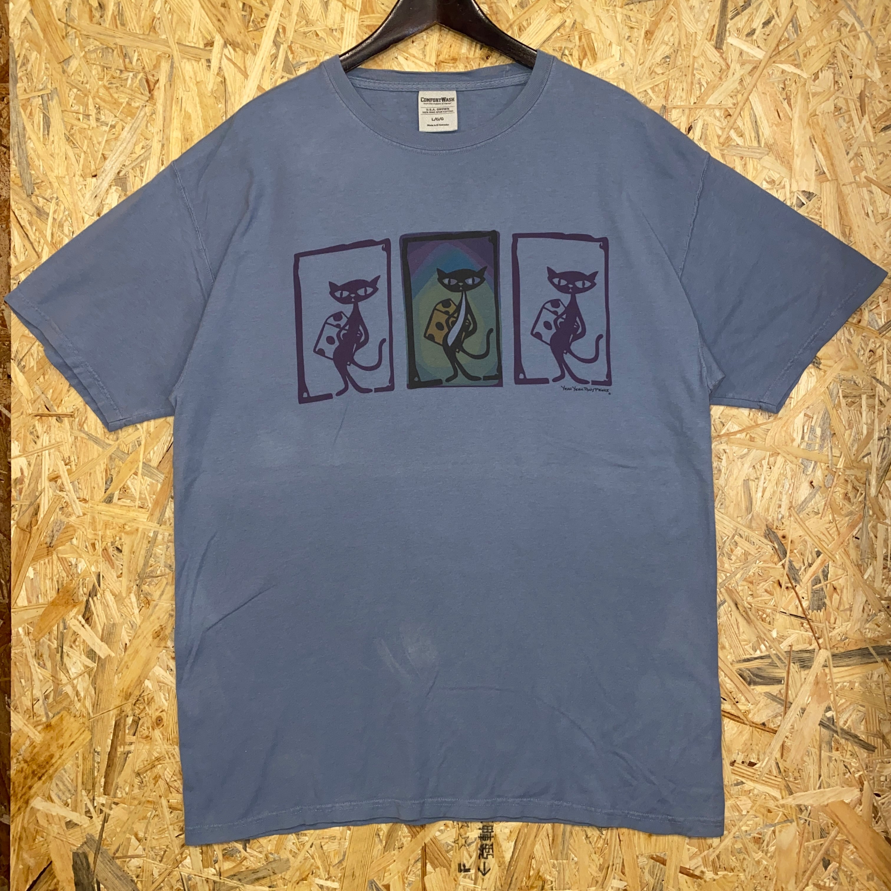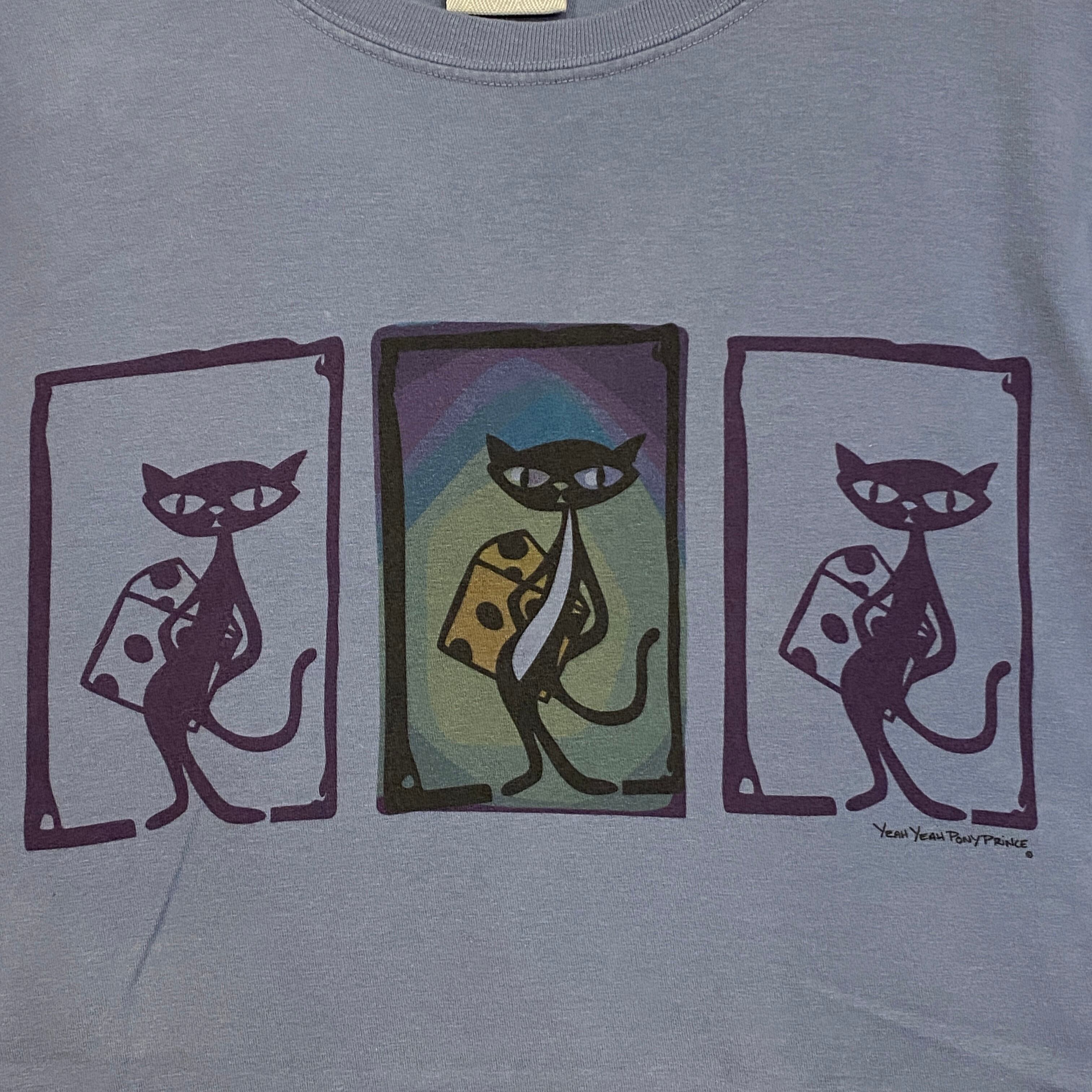 1993 00s〜 00年代〜 USA製 COMFORT WASH Hanes ヘインズ YEAH YEAH PONY PRINCE グラフィック プリント Tシャツ 猫 cat ブルー 青 水色 古着 メンズ vintage L