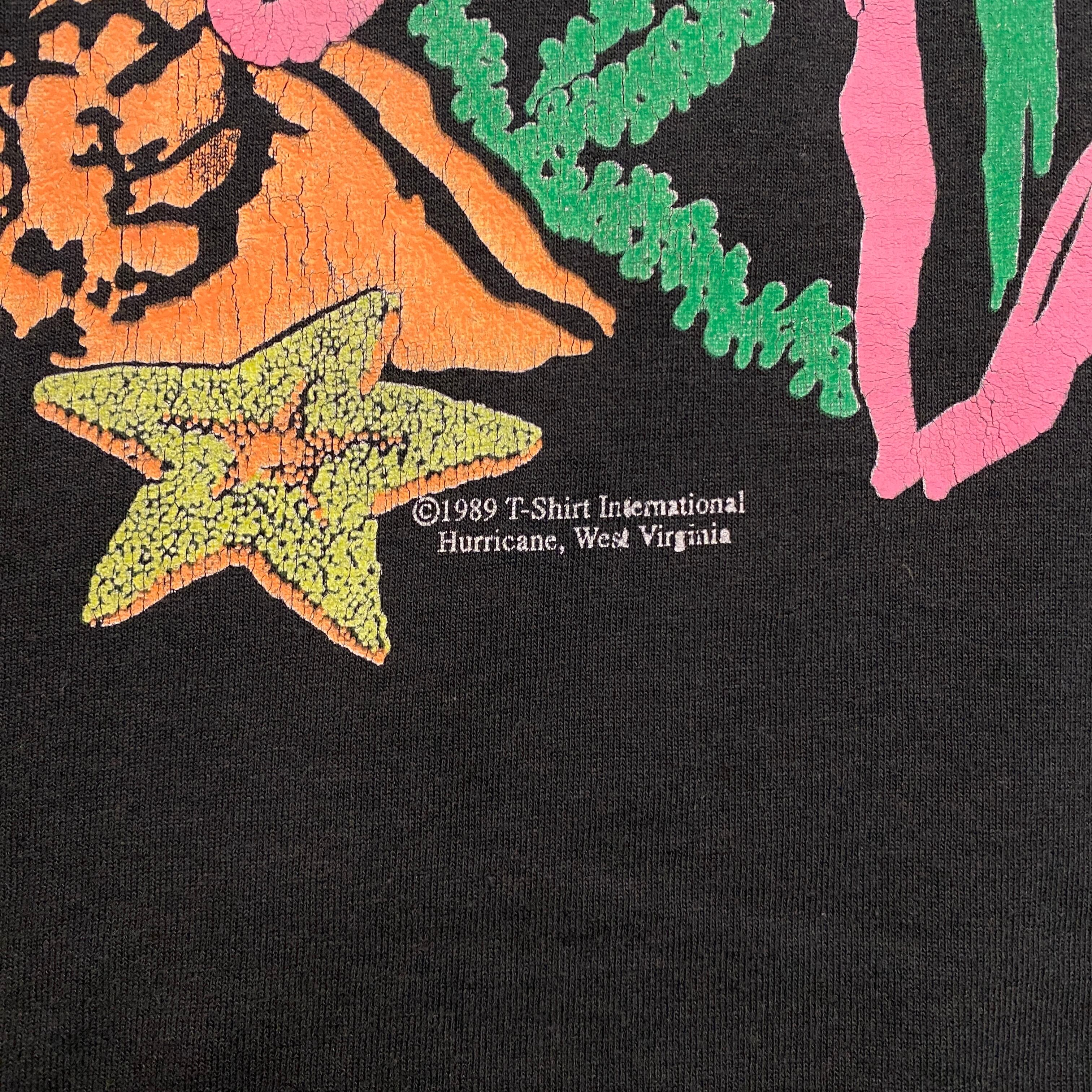 2005 90s〜 90年代〜 USA製 screen stars best ウェストヴァージニア 州 アート プリント Tシャツ 魚 fish ヒトデ 海藻 海 シングルステッチ ブラック 黒 古着 メンズ vintage L