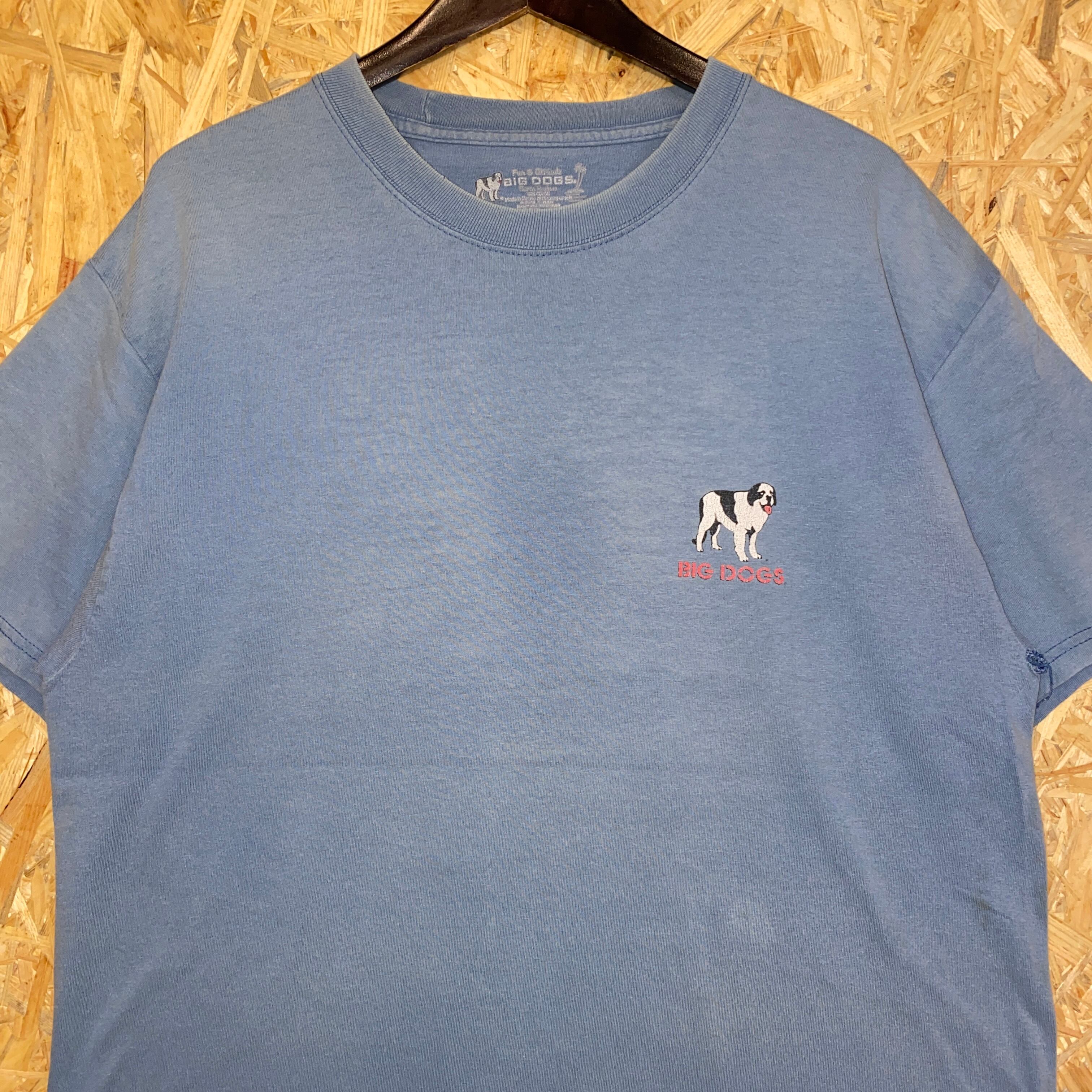 2007 00s 00年代 big dog 両面 プリント Tシャツ 犬 お酒 ハッピーアワー アメリカ 水色 ブルー 古着 メンズ vintage L