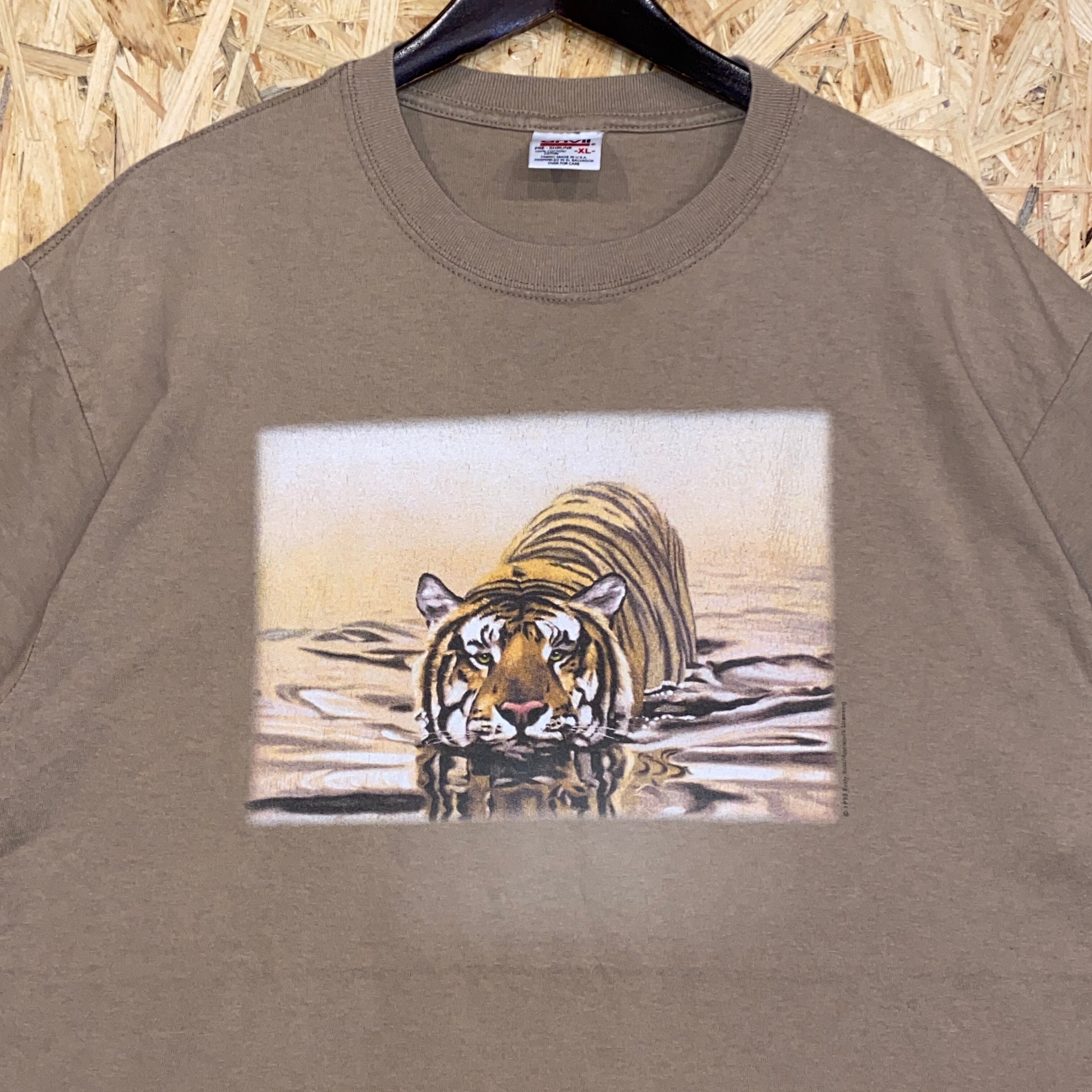2017 1998s USA製 トラ アニマル Tシャツ タイガー 茶色 ベージュ 動物 プリント anvil 古着 メンズ vintage 90s 90年代