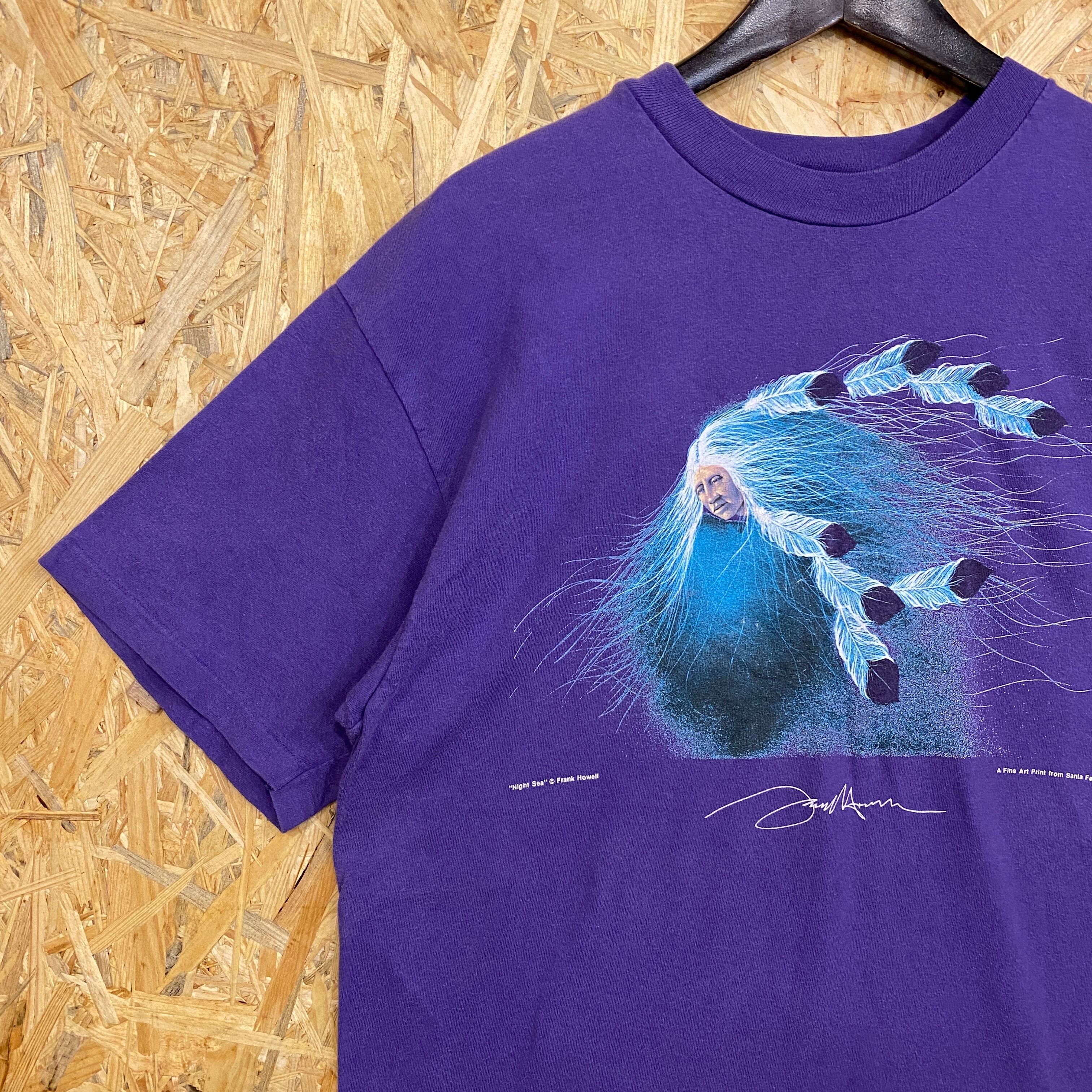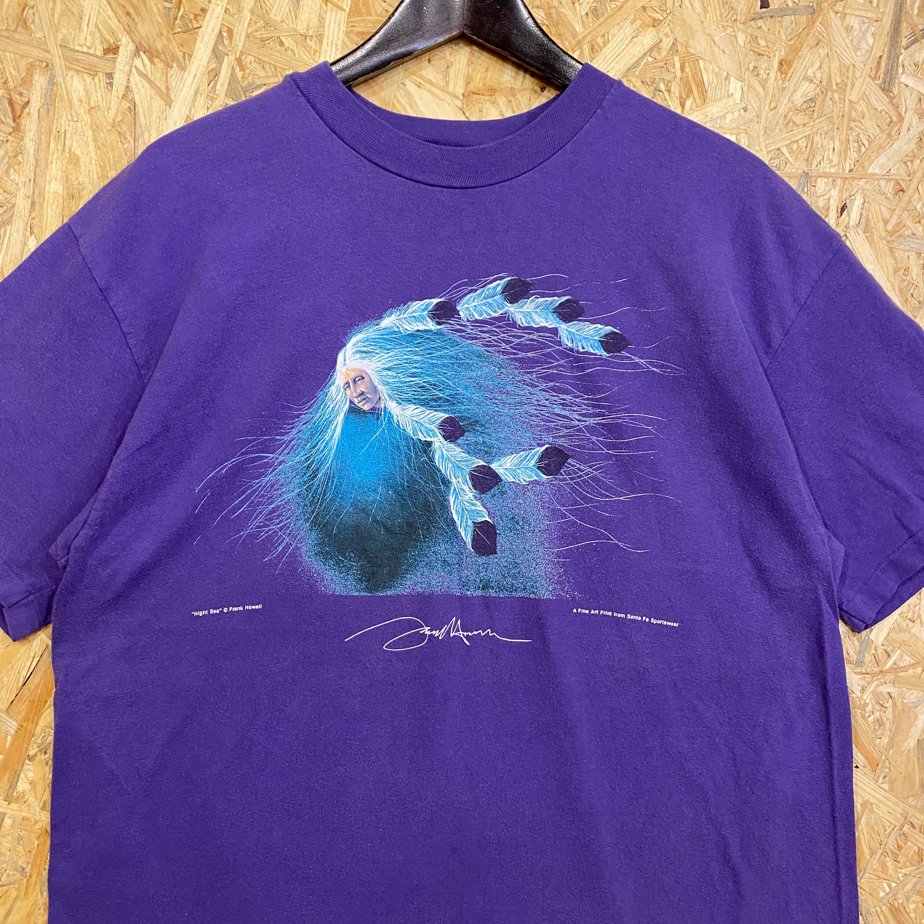2026 90s〜 90年代〜 USA製 Hanes ヘインズ グラフィック プリント Tシャツ Frank Howell インディアン シングルステッチ 紫 パープル 古着 メンズ vintage L