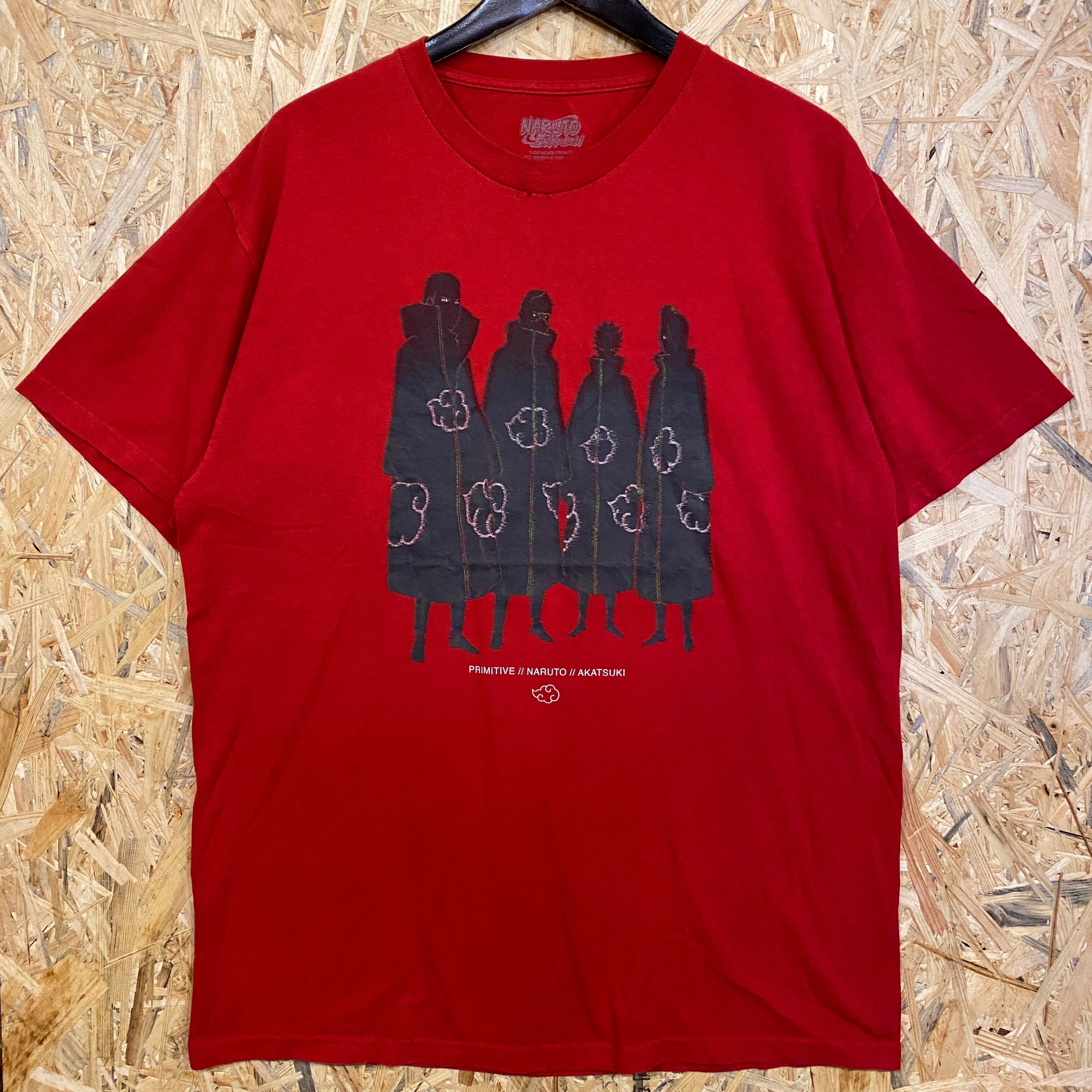 2033 2002s 00年代 NARUTO 疾風伝 暁 Tシャツ キャラクター プリント ナルト アニメ 漫画 赤 レッド メンズ 古着 vintage L