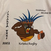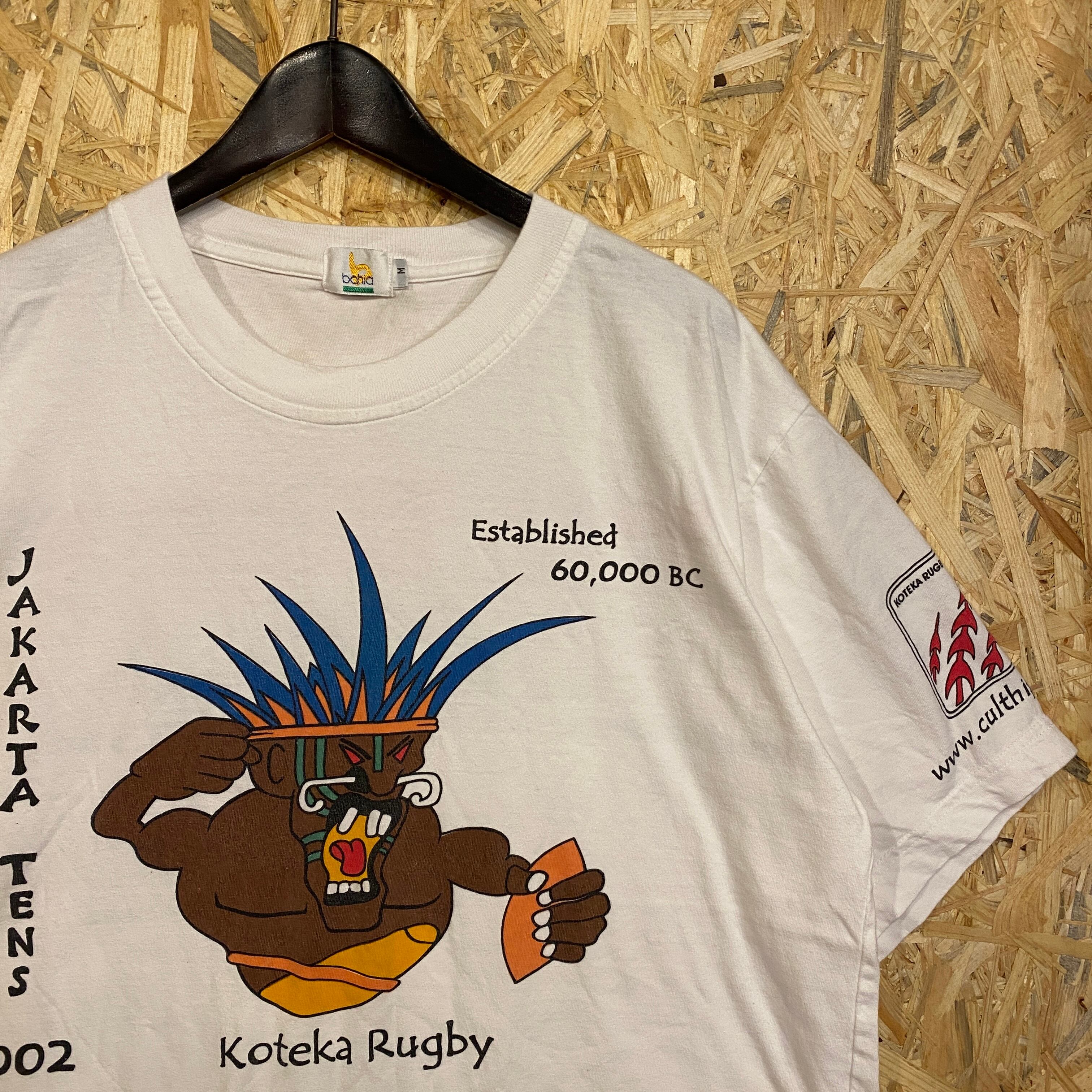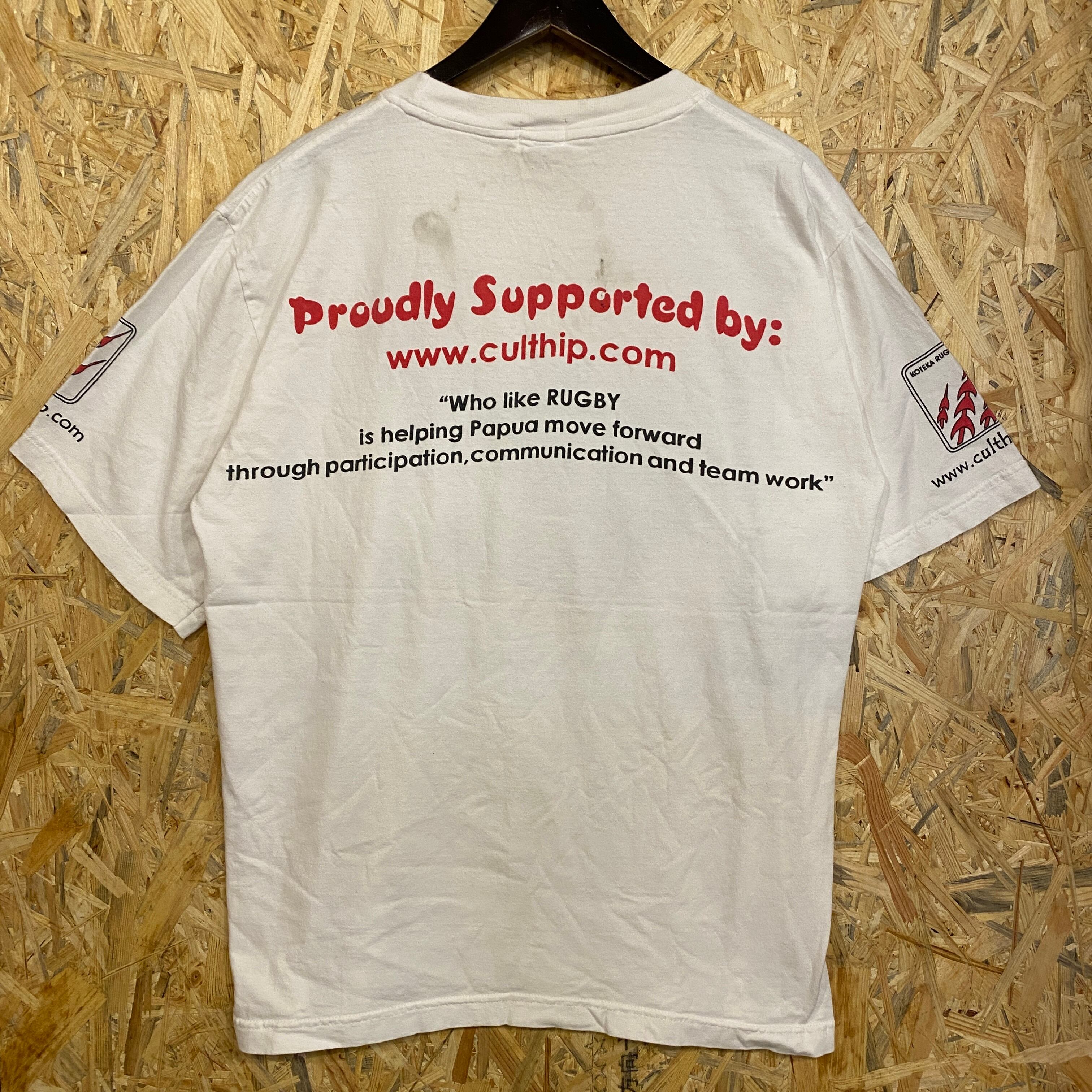 2034 2002s 00年代 ジャカルタ テンズ ラグビー Tシャツ 両面 袖口 プリント スポーツ 白 ホワイト メンズ 古着 vintage M