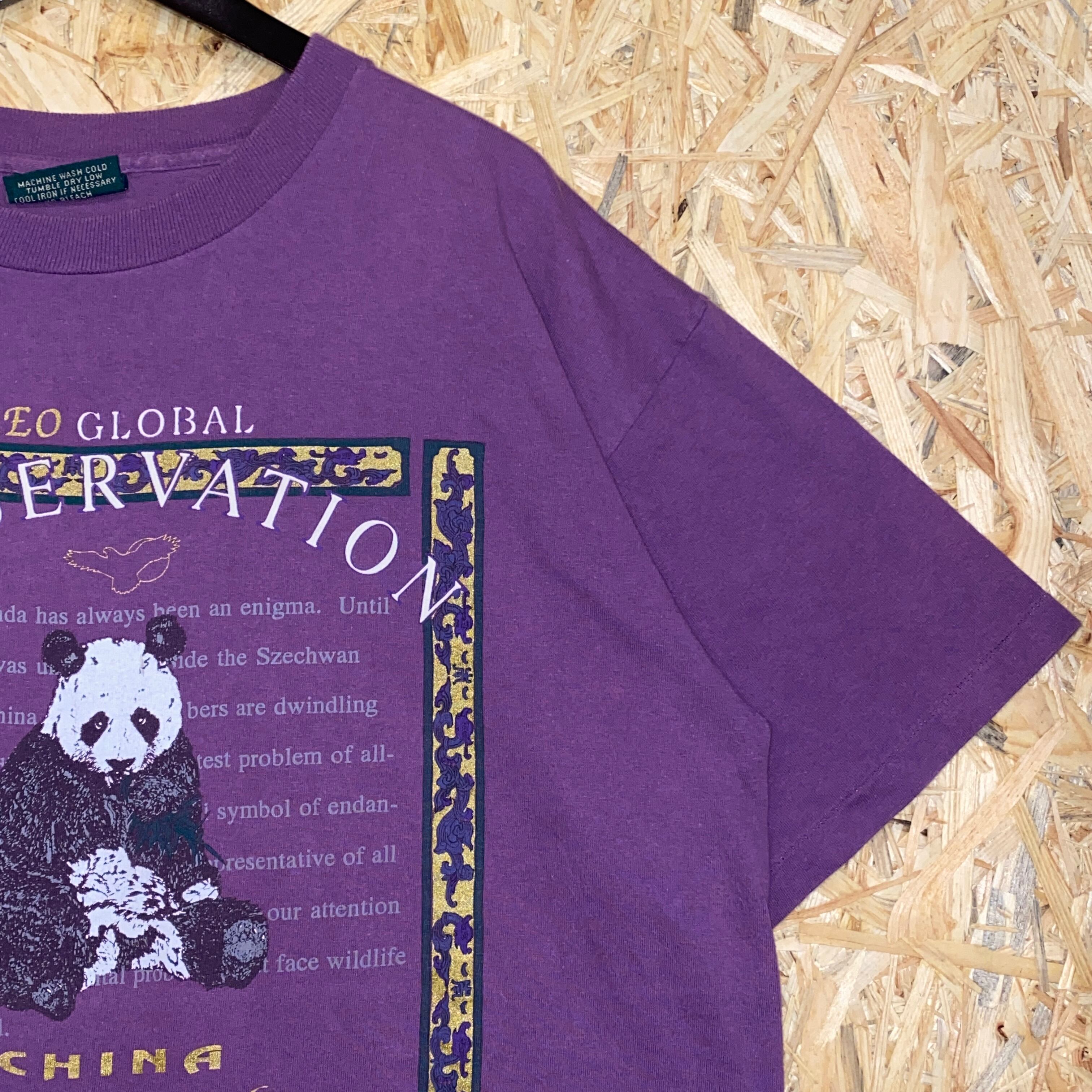 2053 90s 90年代 USA製 パンダ イラスト Tシャツ アニマル 動物 中国 グラフィック 紫 パープル AMERICAN EAGLE アメリカン イーグル 古着 メンズ vintage