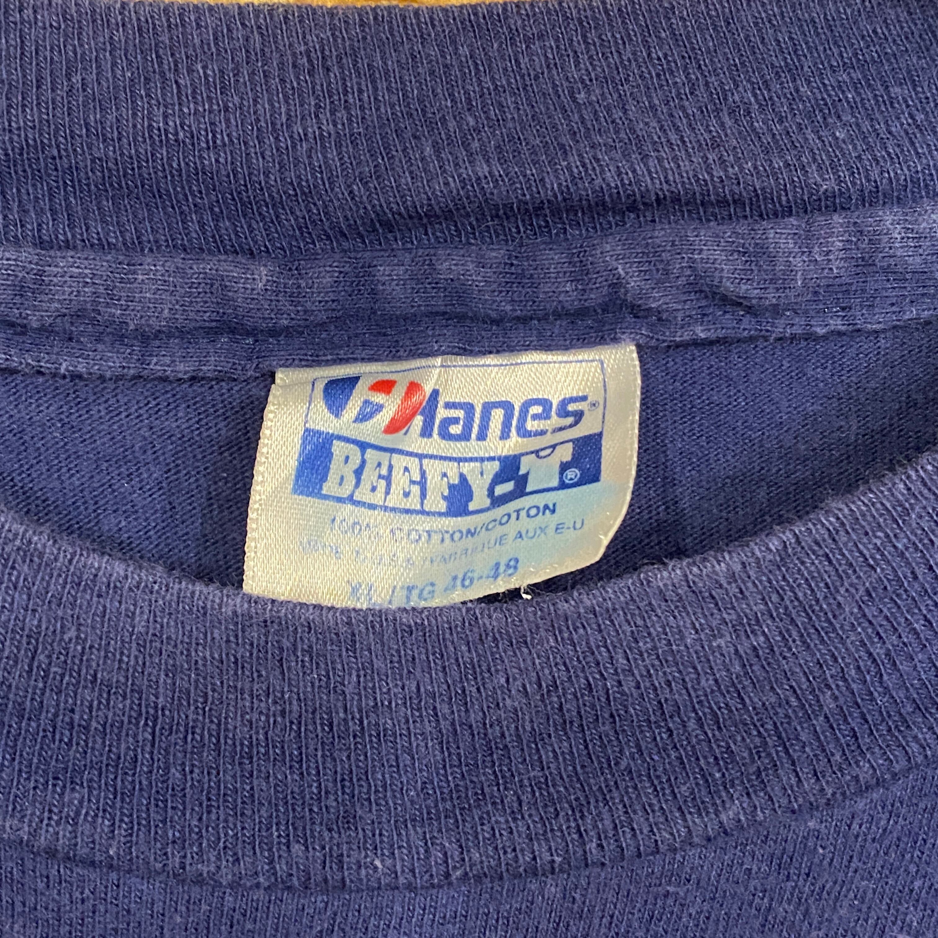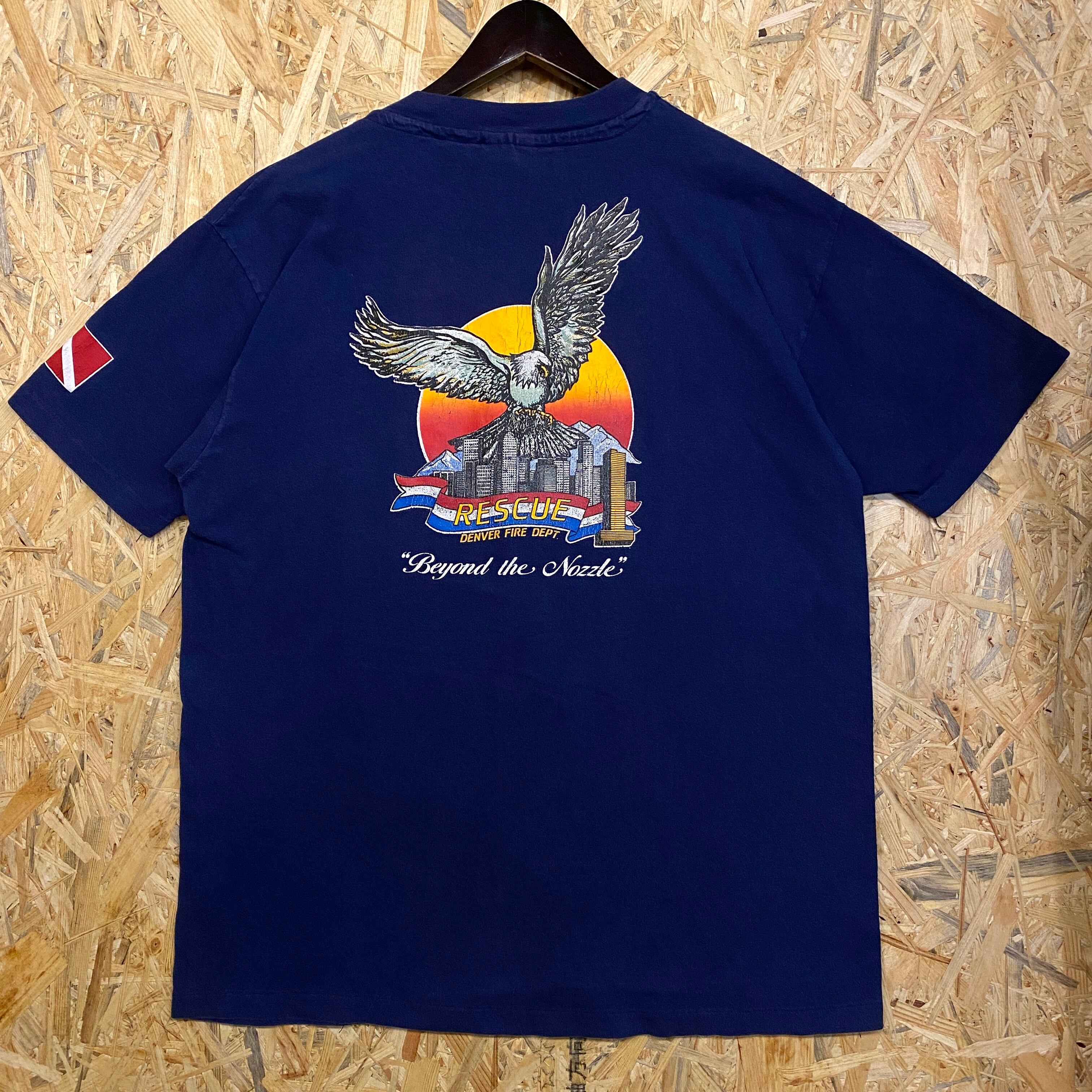 2056 90s 90年代 USA製 鷹 イーグル アニマル Tシャツ 動物 ワンポイント 両面 プリント hanes beefy 青 ブルー 古着 メンズ vintage XL
