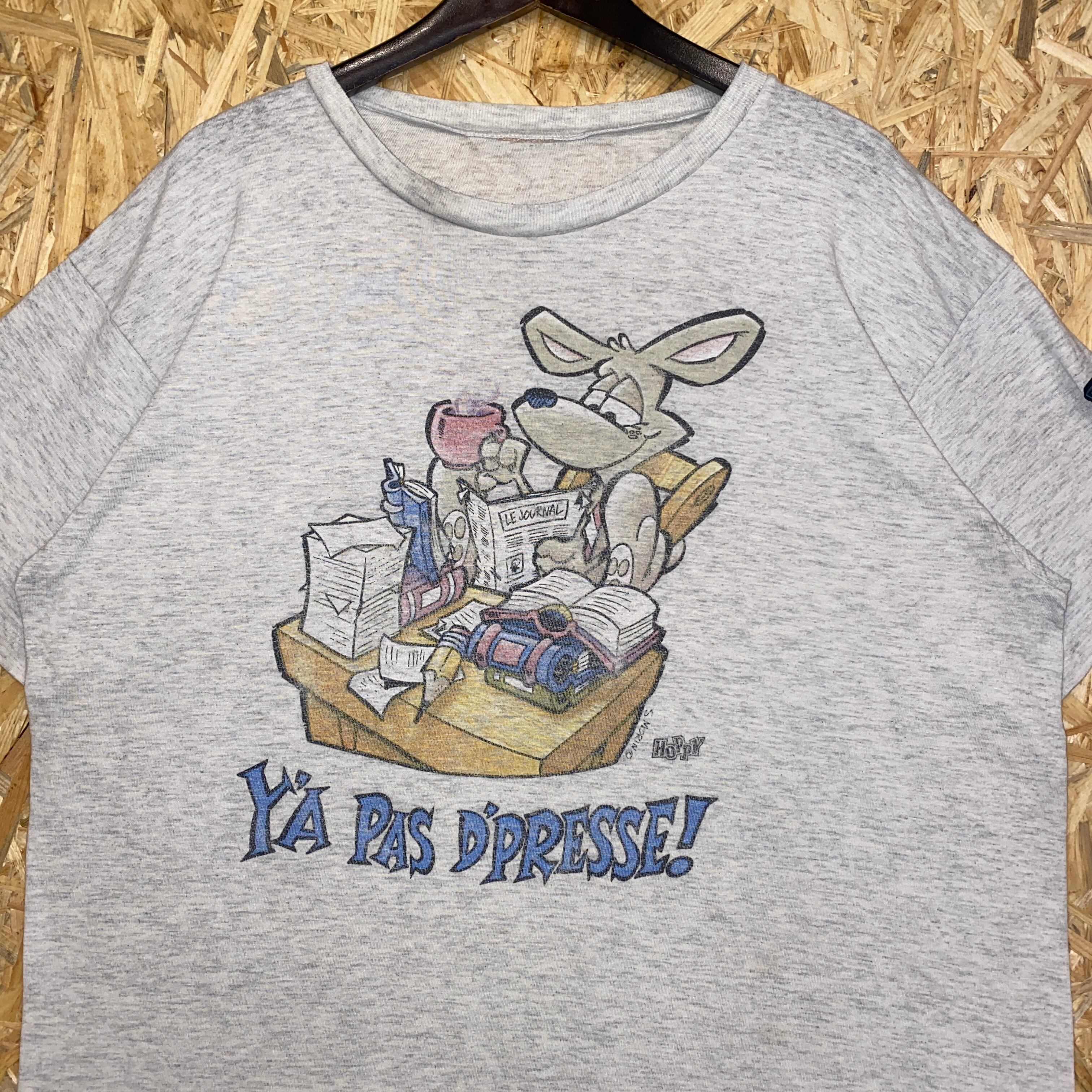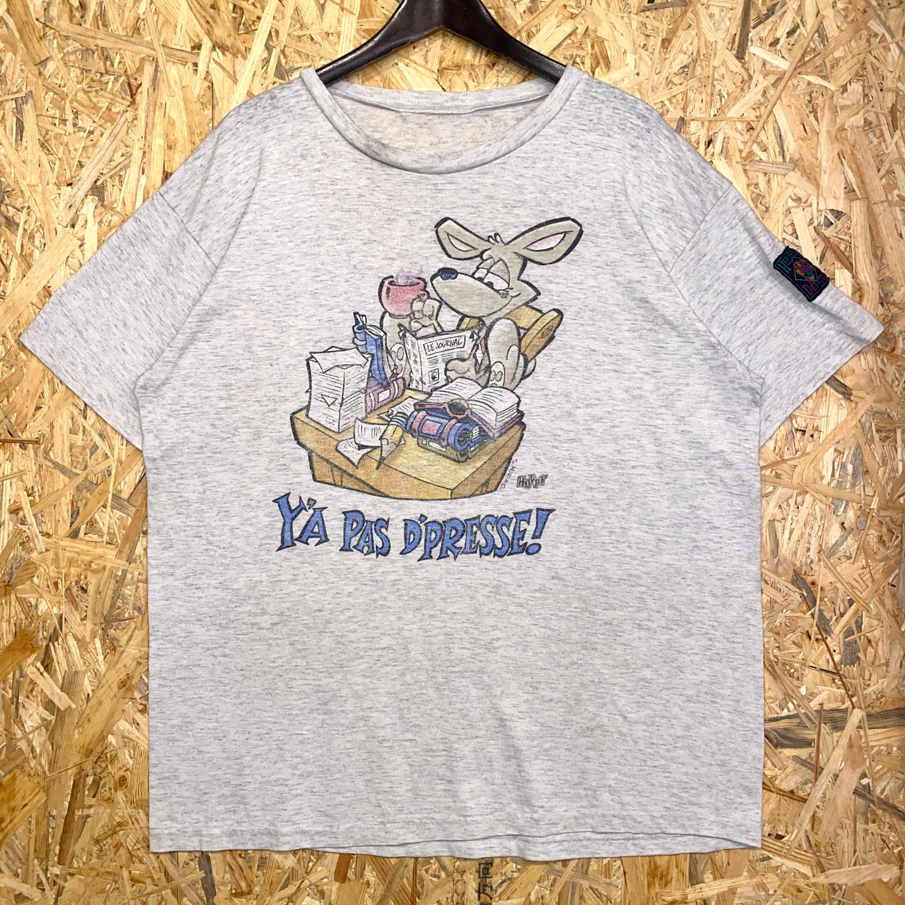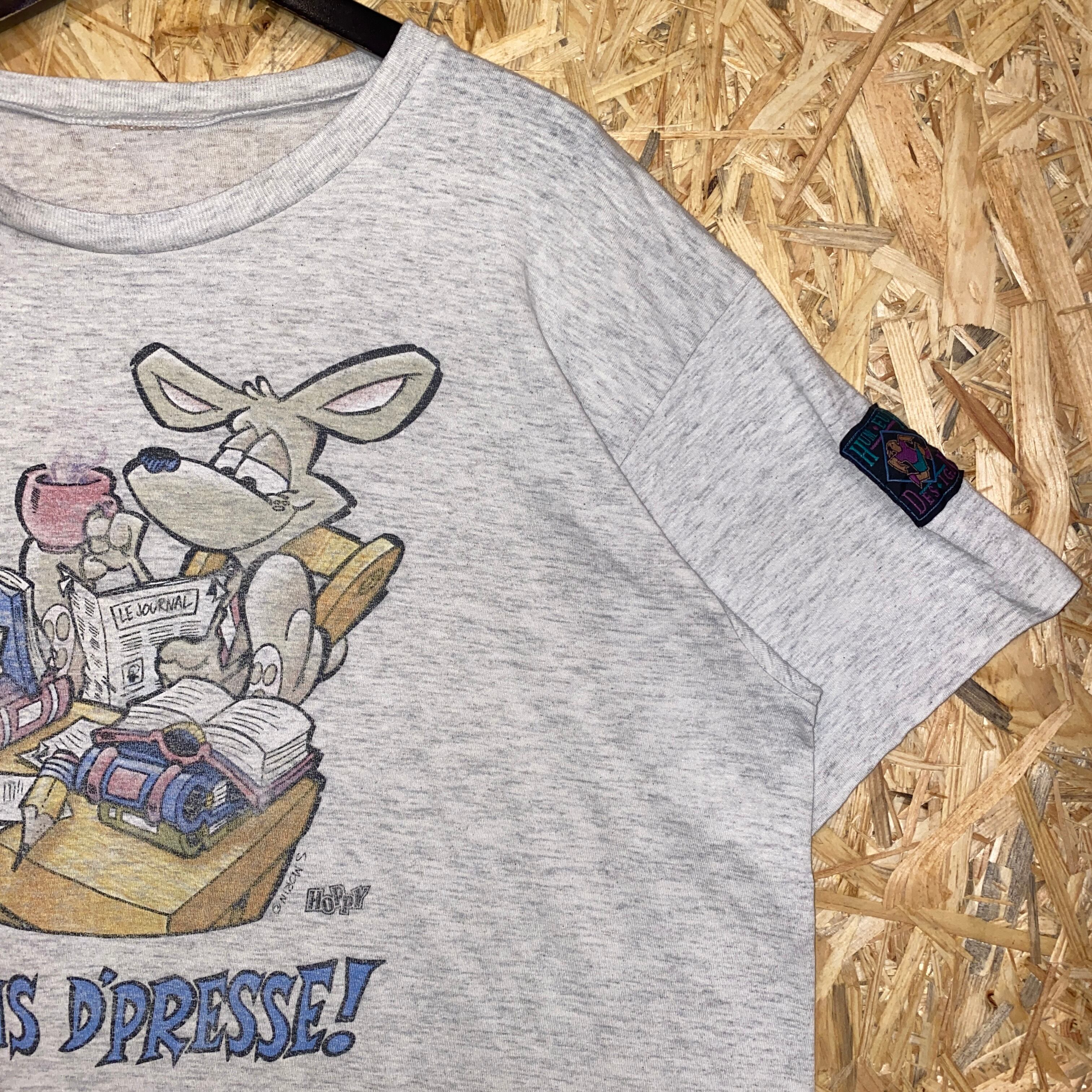 2071 90s 90年代 humeur design イラスト Tシャツ アニマル 新聞 プリント グレー グラフィック デザイン シングルステッチ 古着 メンズ vintage