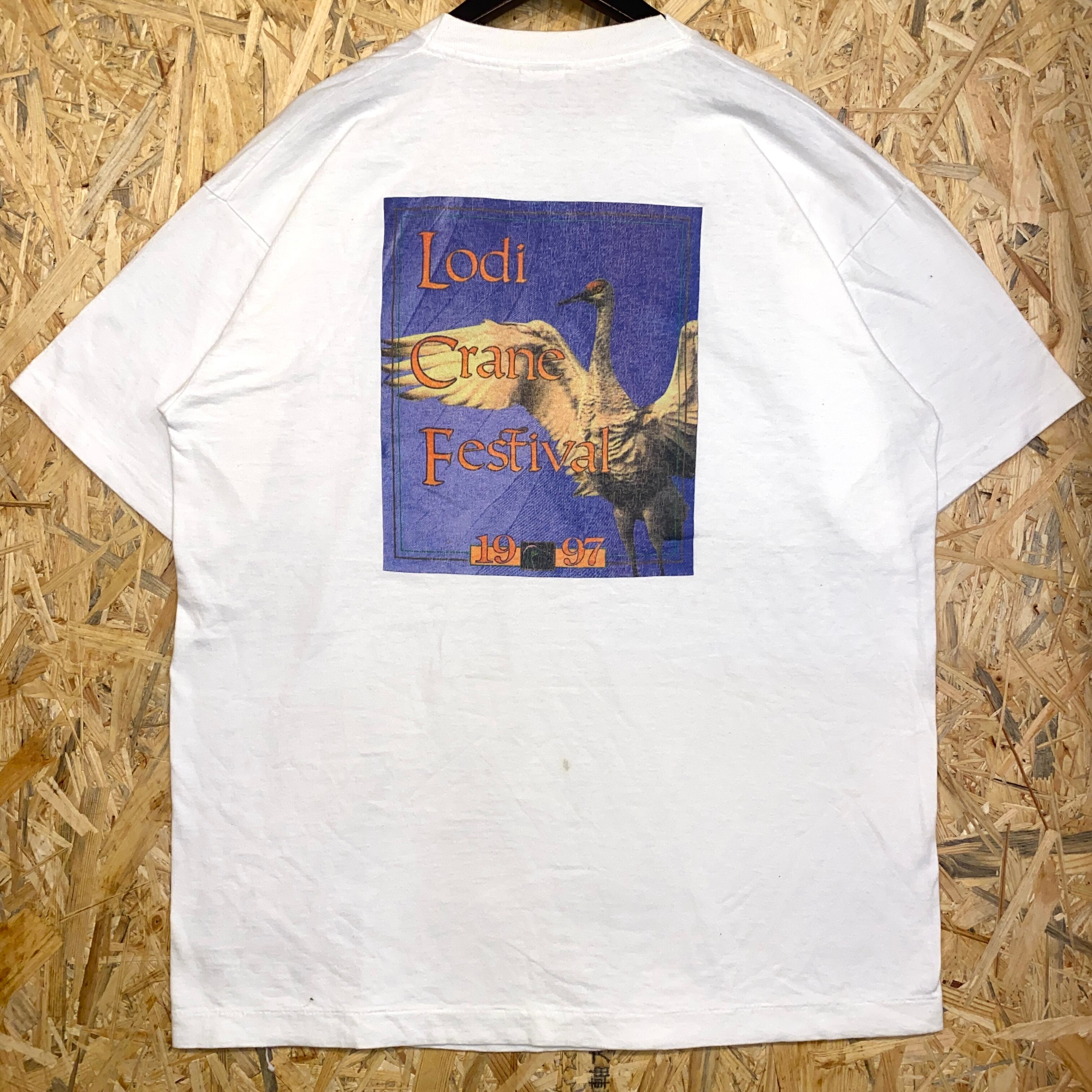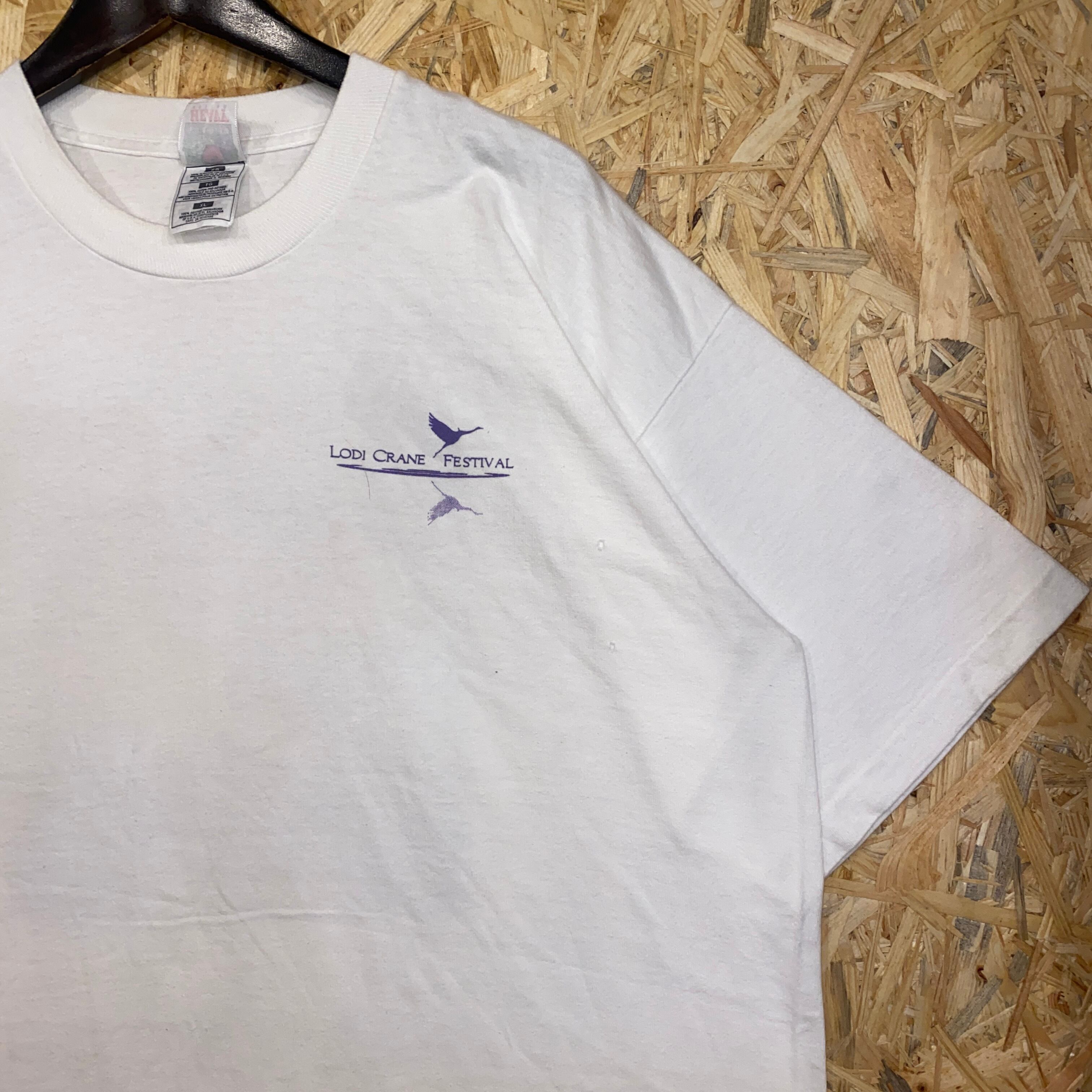 2075 90s〜 90年代〜 カナダヅル 教会 プリント Tシャツ 鳥 イラスト USA グラフィック シングルステッチ ホワイト 白 古着 メンズ vintage 1997