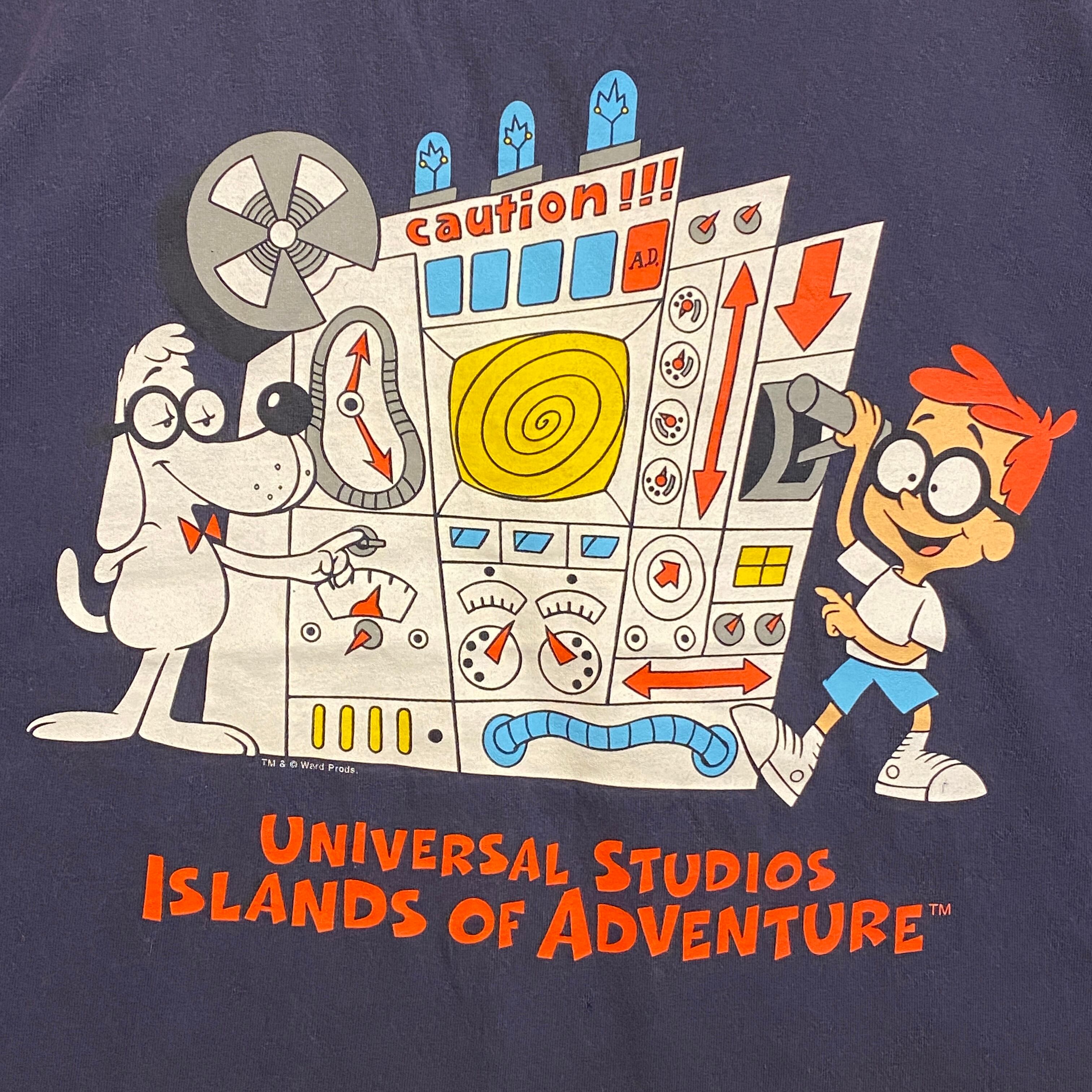 2082 90s 90年代 UNIVERSAL STUDIOS プリント Tシャツ アイランドオブアドベンチャー ピーボディ シャーマン キャラクター ネイビー 紺 古着 メンズ vintage