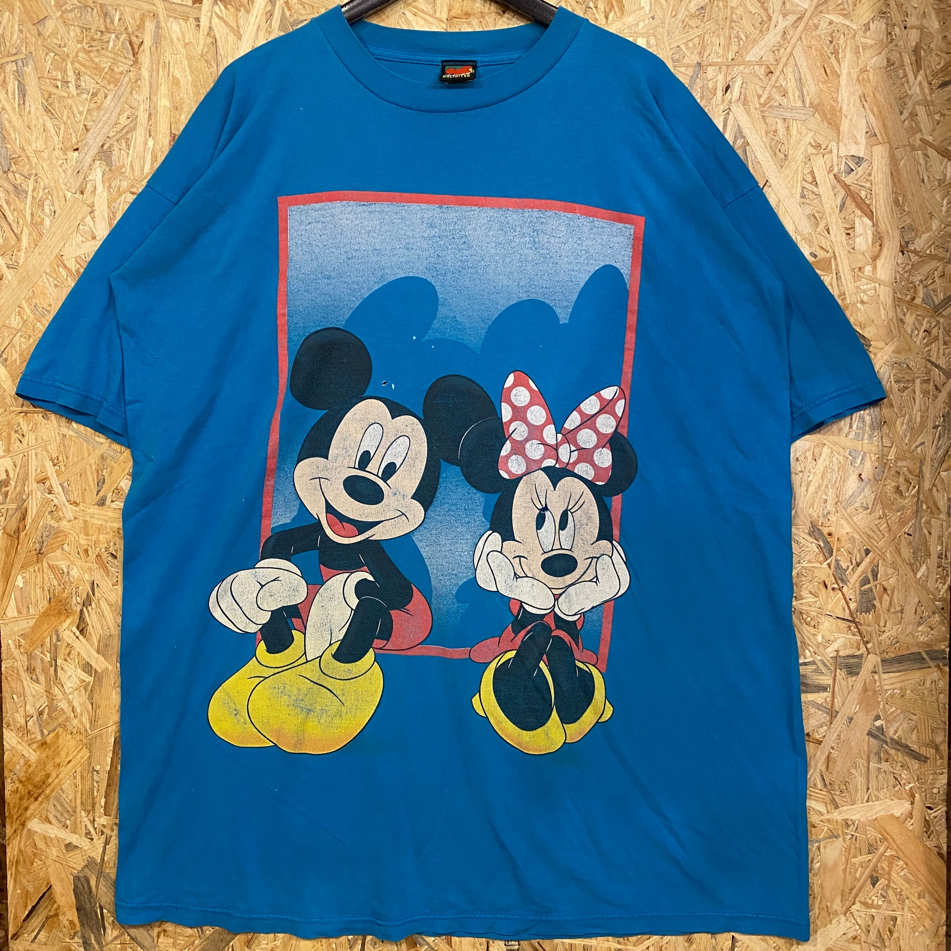2092 90s 90年代 ディズニー Disney "MICKEY" Tシャツ ミッキー マウス 大判 プリント キャラクター キャラT 青 ブルー 古着 メンズ vintage