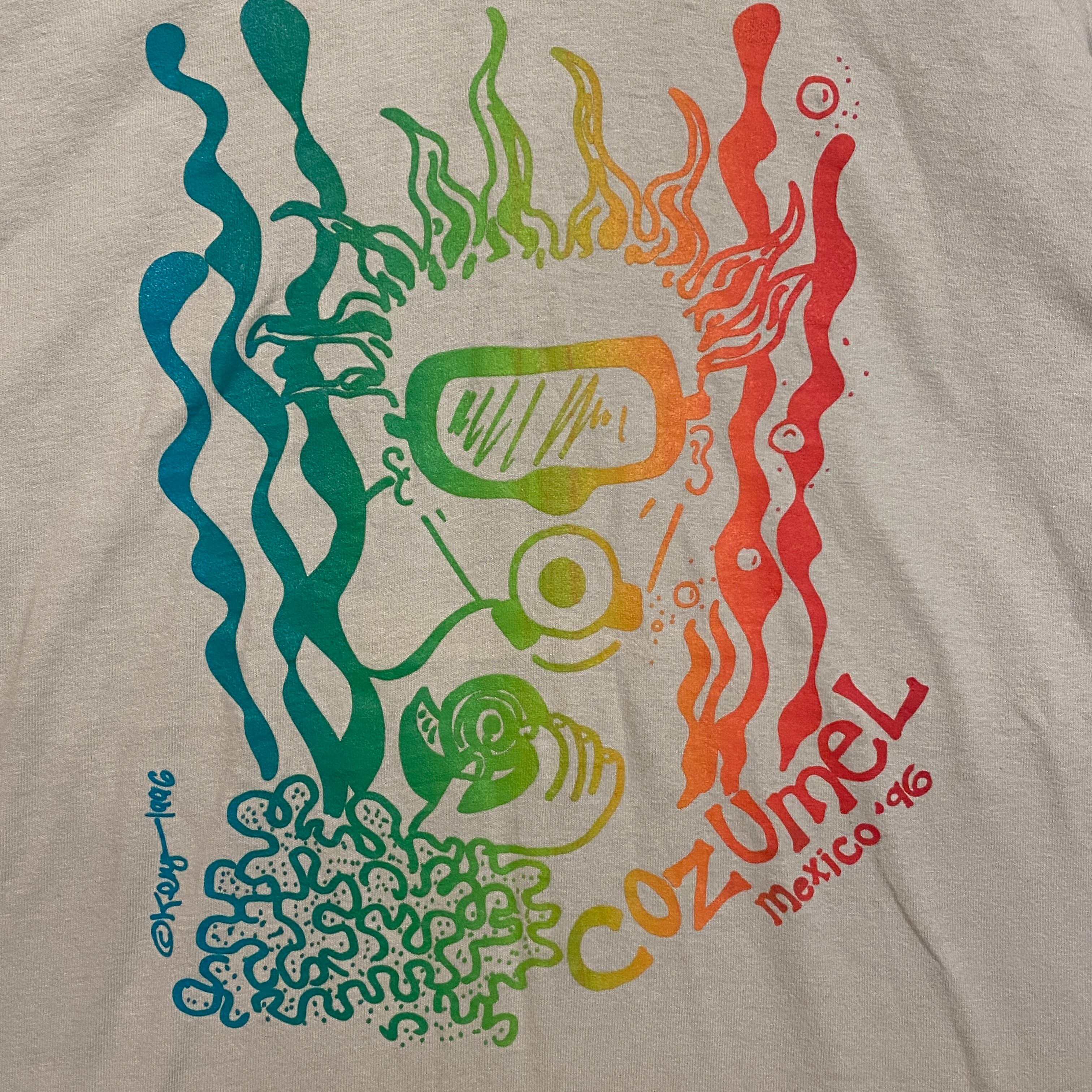 2095 1996s 90年代 USA製 コズメル スキューバ ダイビング Tシャツ フルーツオブザルーム シングルステッチ グレー 古着 メンズ vintage XL
