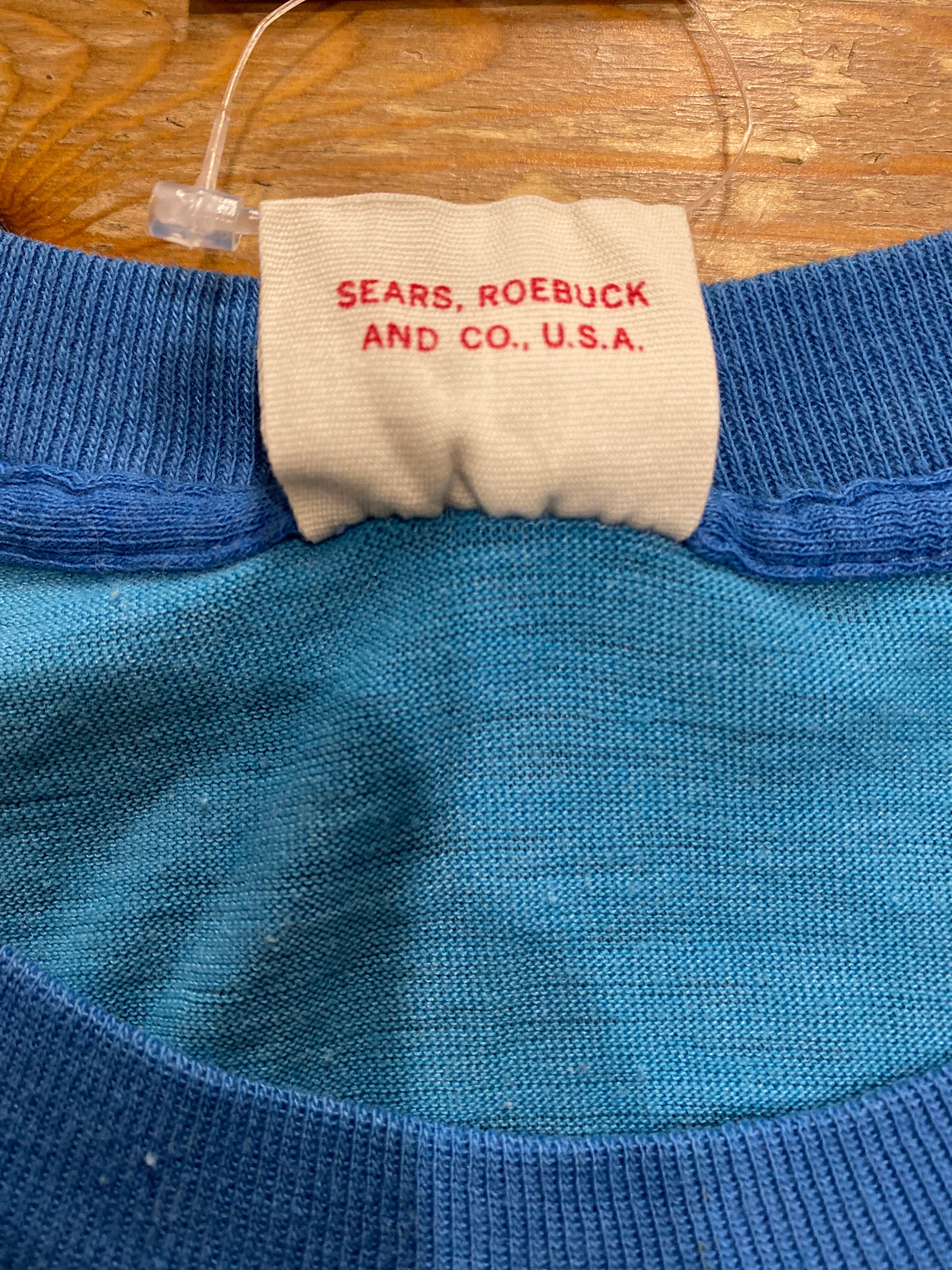 2106 70s〜 70年代 USA製 Sears Men's Store イラスト Tシャツ グラフィック ブルー 水色 シングルステッチ 古着 メンズ vintage 80s 80年代 M